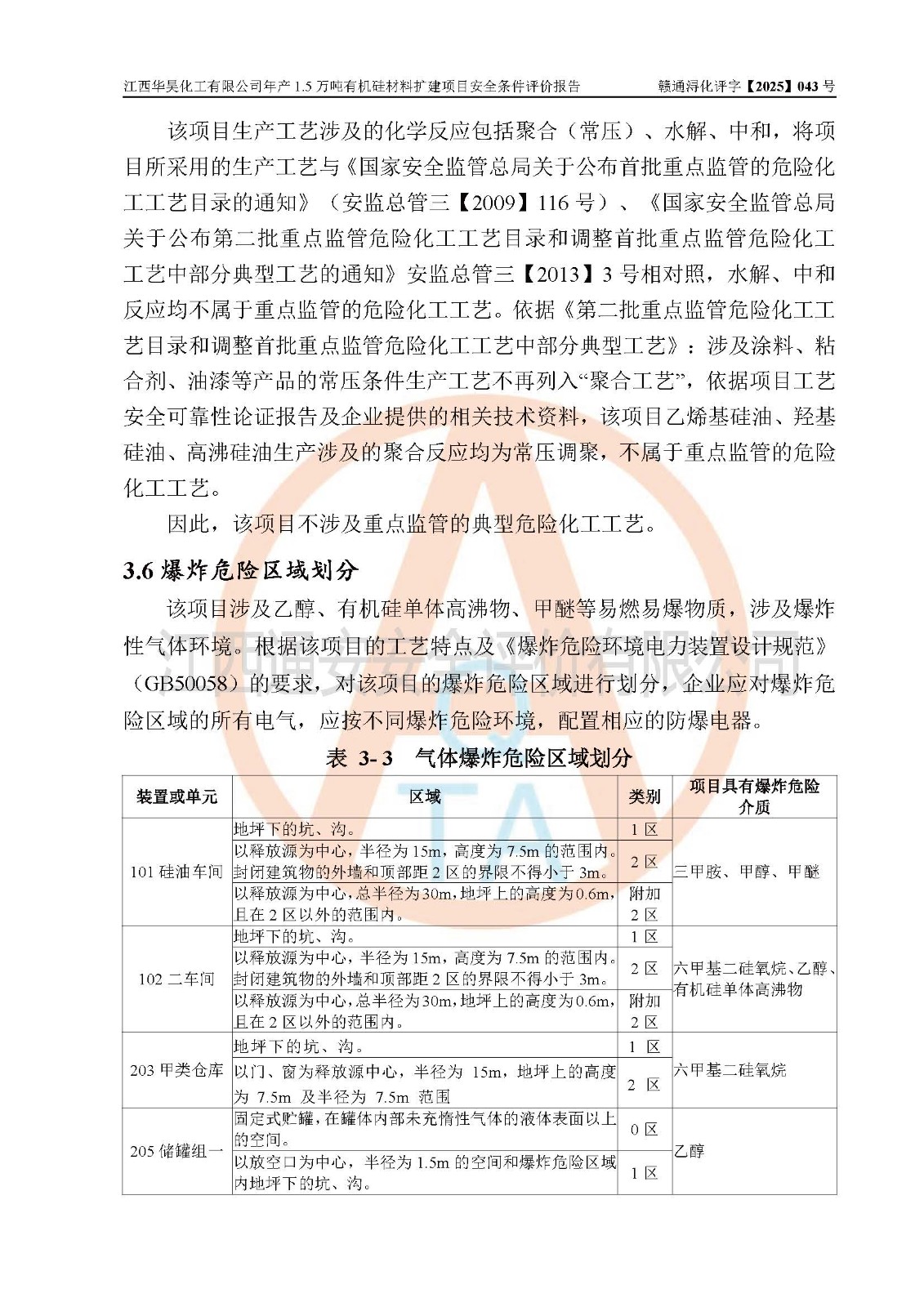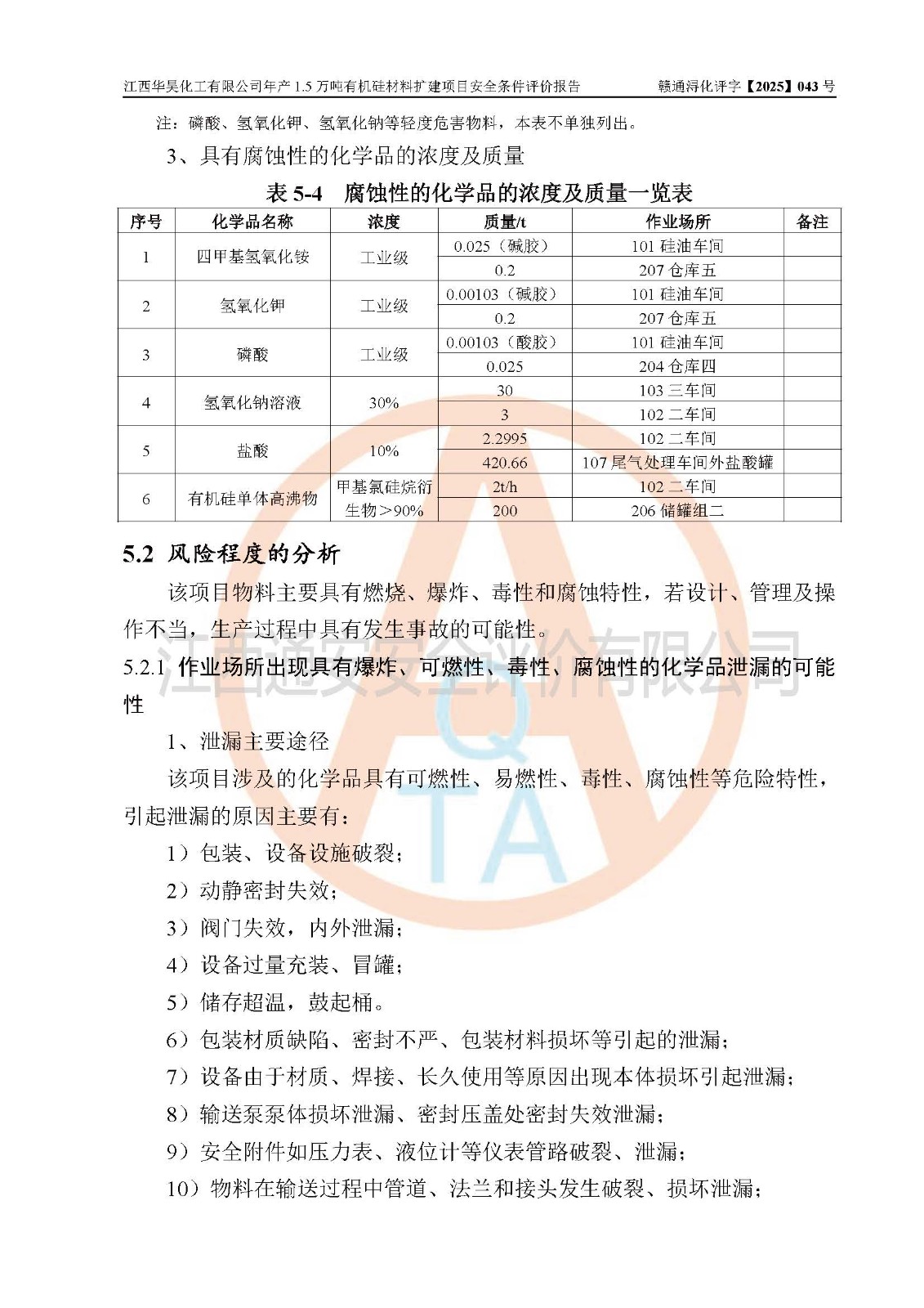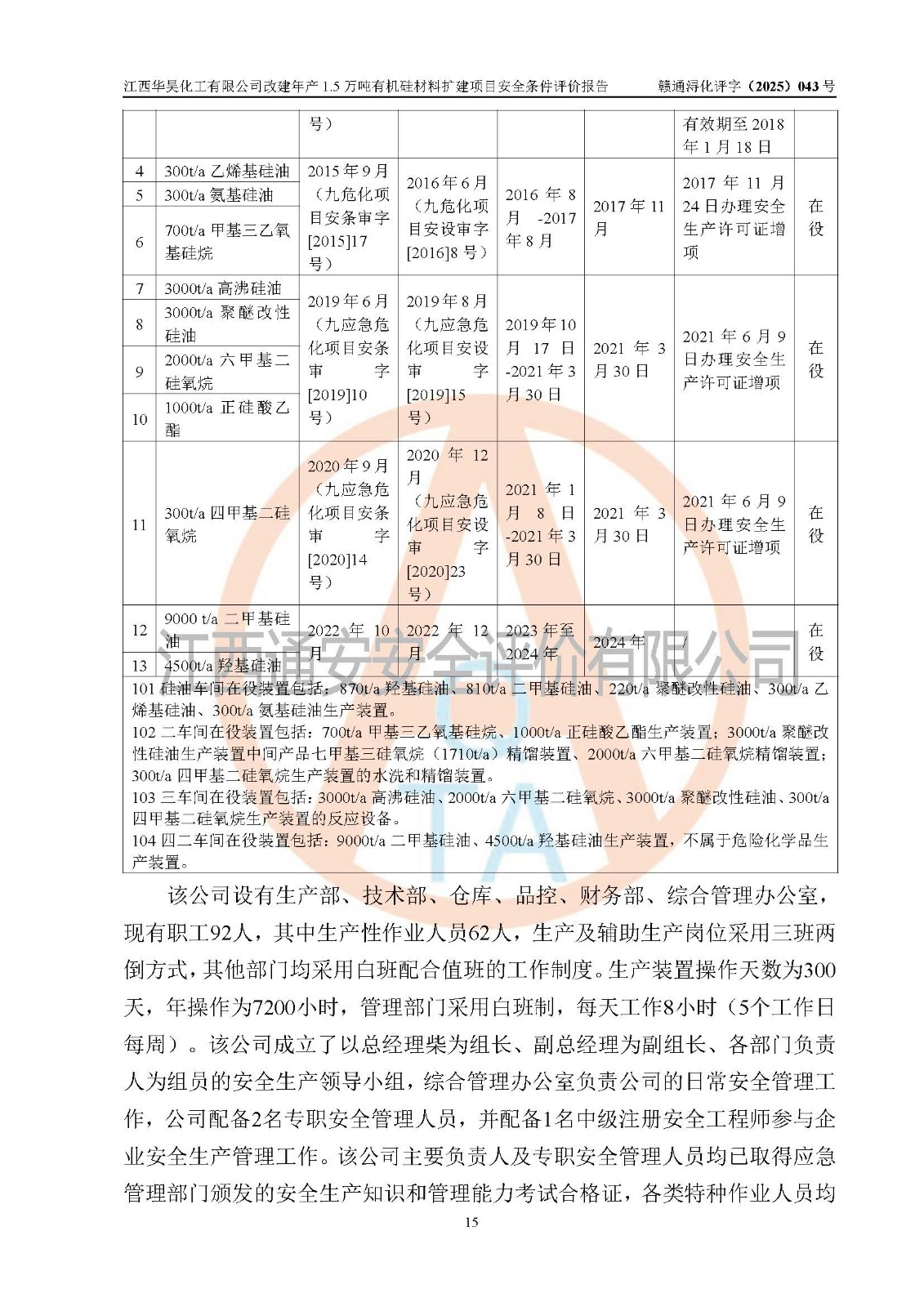 江西華昊化工有限公司是一家于2011年11月注冊成立的有限責任公司(自然人投資或控股),注冊地址位于永修縣云山經(jīng)濟開發(fā)區(qū)星火工業(yè)園星云大道旁,法定**人柴利兵,注冊資本1542萬元,經(jīng)營范圍包括許可項目和一般項目,許可項目為危險化學品生產(chǎn)、危險化學品經(jīng)營、貨物進出口、第二類醫(yī)療器械生產(chǎn),一般項目為合成材料制造(不含危險化學品)、合成材料銷售、第二類醫(yī)療器械銷售。 為滿足更大市場需求,同時解決企業(yè)原料及配套生產(chǎn)的需求,江西華昊化工有限公司擬投資5000萬元將廠區(qū)101硅油車間、102二車間原有項目改建為年產(chǎn)1.5萬噸有機硅材料擴建項目(以下簡稱“該項目”)。 該項目生產(chǎn)過程涉及的化學反應包括聚合(常壓)、水解、中和,涉及蒸餾、壓濾、流體輸送、熱交換、產(chǎn)品包裝等化工單元操作過程。該項目涉及的危險化學品包括四甲基氫氧化銨、氫氧化鉀、磷酸、30%氫氧化鈉溶液、六甲基二硅氧烷、乙醇、氯化氫、鹽酸、氮氣、DMC(二甲基環(huán)硅氧烷的混合物)、有機硅單體高沸物、**胺(廢氣組分)、甲醇(廢氣組分)、甲醚(廢氣組分),其中甲醇、甲醚屬于重點監(jiān)管的危險化學品,鹽酸屬于第三類易制毒化學品,乙醇、甲醇、甲醚屬于特別管控危險化學品,四甲基氫氧化銨、乙醇、**胺、甲醇、甲醚屬于第四類監(jiān)控化學品。該項目不涉及劇毒品、易制爆化學品、高毒物品,不涉及**、二、三類監(jiān)控化學品。 該項目不涉及重點監(jiān)管的典型危險化工工藝,生產(chǎn)單元、儲存單元不構成危險化學品重大危險源。 該項目副產(chǎn)品鹽酸、中間產(chǎn)品低粘度封頭劑(六甲基二硅氧烷)屬于危險化學品,該項目屬于危險化學品生產(chǎn)項目,依據(jù)《危險化學品生產(chǎn)企業(yè)安全生產(chǎn)許可證實施辦法》(**安全生產(chǎn)監(jiān)督管理總局令第41號,第79號、89號修改),項目需要辦理危險化學品安全生產(chǎn)許可證。 |