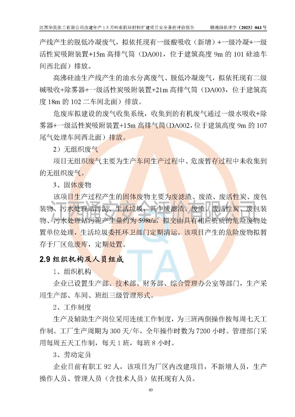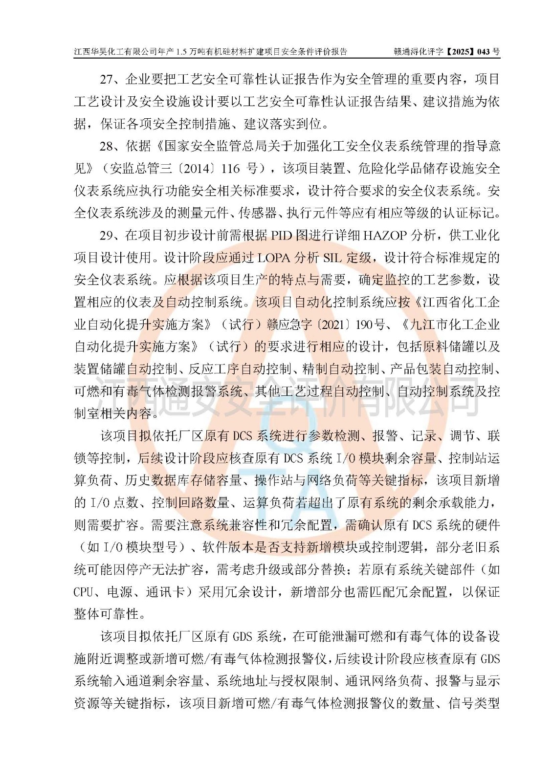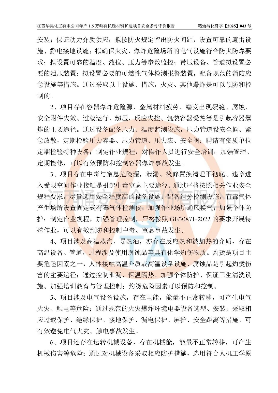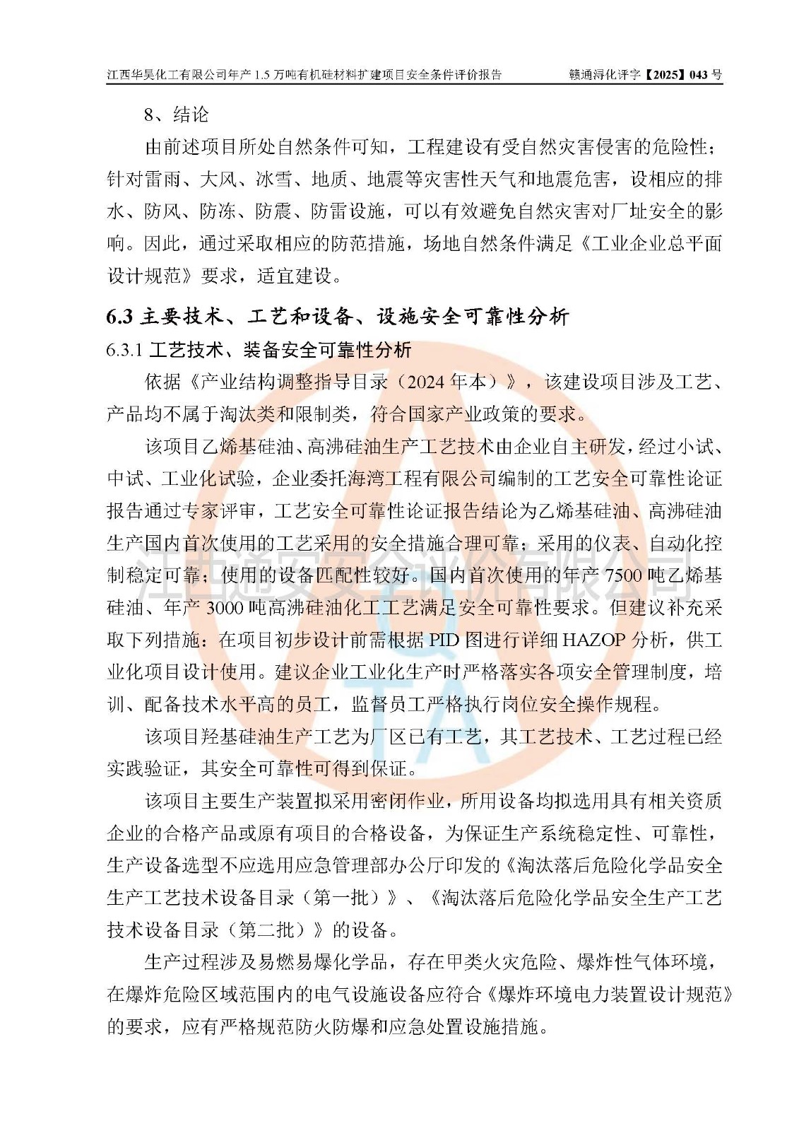 江西華昊化工有限公司是一家于2011年11月注冊成立的有限責任公司(自然人投資或控股),注冊地址位于永修縣云山經(jīng)濟開發(fā)區(qū)星火工業(yè)園星云大道旁,法定**人柴利兵,注冊資本1542萬元,經(jīng)營范圍包括許可項目和一般項目,許可項目為危險化學品生產(chǎn)、危險化學品經(jīng)營、貨物進出口、第二類醫(yī)療器械生產(chǎn),一般項目為合成材料制造(不含危險化學品)、合成材料銷售、第二類醫(yī)療器械銷售。 為滿足更大市場需求,同時解決企業(yè)原料及配套生產(chǎn)的需求,江西華昊化工有限公司擬投資5000萬元將廠區(qū)101硅油車間、102二車間原有項目改建為年產(chǎn)1.5萬噸有機硅材料擴建項目(以下簡稱“該項目”)。 該項目生產(chǎn)過程涉及的化學反應包括聚合(常壓)、水解、中和,涉及蒸餾、壓濾、流體輸送、熱交換、產(chǎn)品包裝等化工單元操作過程。該項目涉及的危險化學品包括四甲基氫氧化銨、氫氧化鉀、磷酸、30%氫氧化鈉溶液、六甲基二硅氧烷、乙醇、氯化氫、鹽酸、氮氣、DMC(二甲基環(huán)硅氧烷的混合物)、有機硅單體高沸物、**胺(廢氣組分)、甲醇(廢氣組分)、甲醚(廢氣組分),其中甲醇、甲醚屬于重點監(jiān)管的危險化學品,鹽酸屬于第三類易制毒化學品,乙醇、甲醇、甲醚屬于特別管控危險化學品,四甲基氫氧化銨、乙醇、**胺、甲醇、甲醚屬于第四類監(jiān)控化學品。該項目不涉及劇毒品、易制爆化學品、高毒物品,不涉及**、二、三類監(jiān)控化學品。 該項目不涉及重點監(jiān)管的典型危險化工工藝,生產(chǎn)單元、儲存單元不構成危險化學品重大危險源。 該項目副產(chǎn)品鹽酸、中間產(chǎn)品低粘度封頭劑(六甲基二硅氧烷)屬于危險化學品,該項目屬于危險化學品生產(chǎn)項目,依據(jù)《危險化學品生產(chǎn)企業(yè)安全生產(chǎn)許可證實施辦法》(**安全生產(chǎn)監(jiān)督管理總局令第41號,第79號、89號修改),項目需要辦理危險化學品安全生產(chǎn)許可證。 |