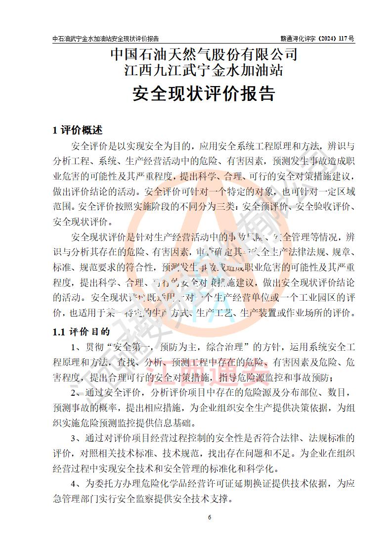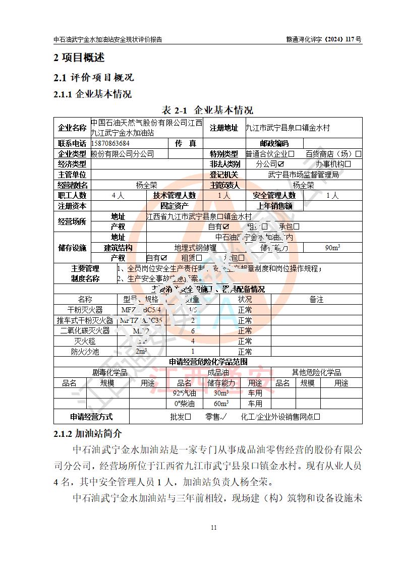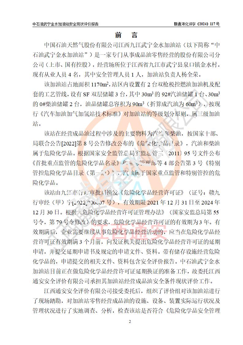評價報告名稱 | 中國石油天然氣股份有限公司江西九江武寧金水加油站安全現(xiàn)狀評價報告 | |||