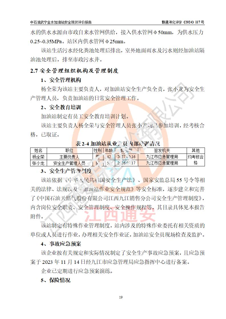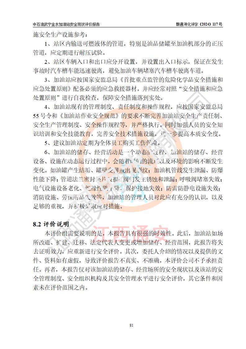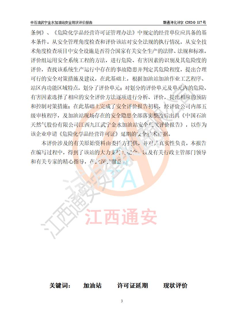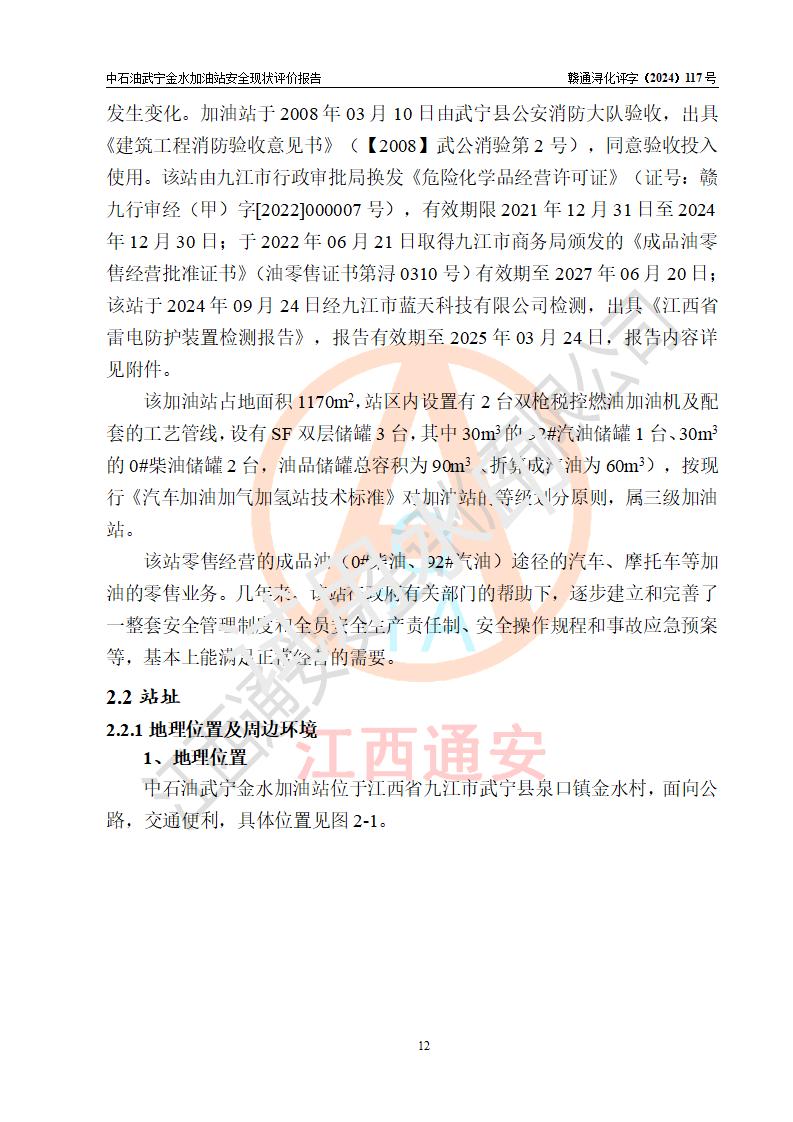 評價報告名稱 | 中國石油天然氣股份有限公司江西九江武寧金水加油站安全現(xiàn)狀評價報告 | |||
