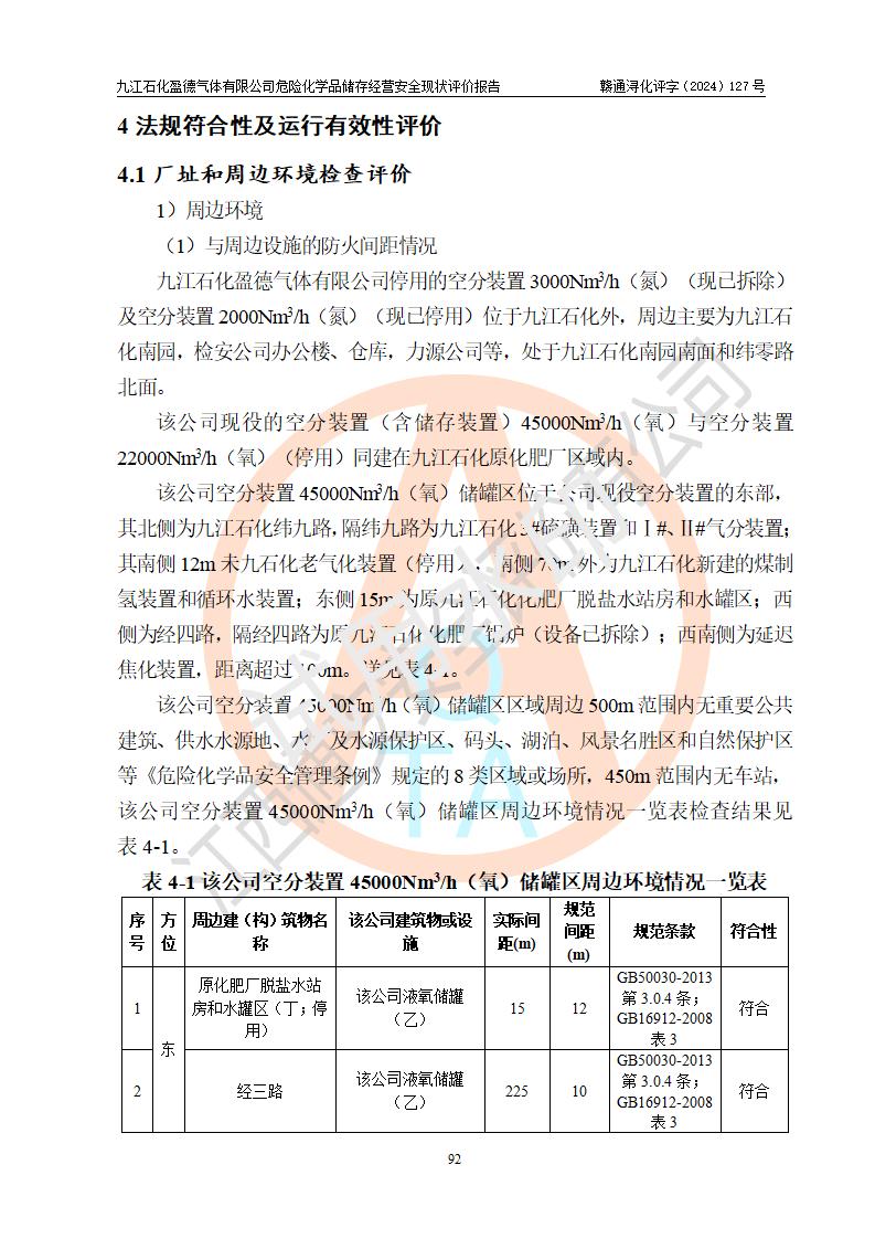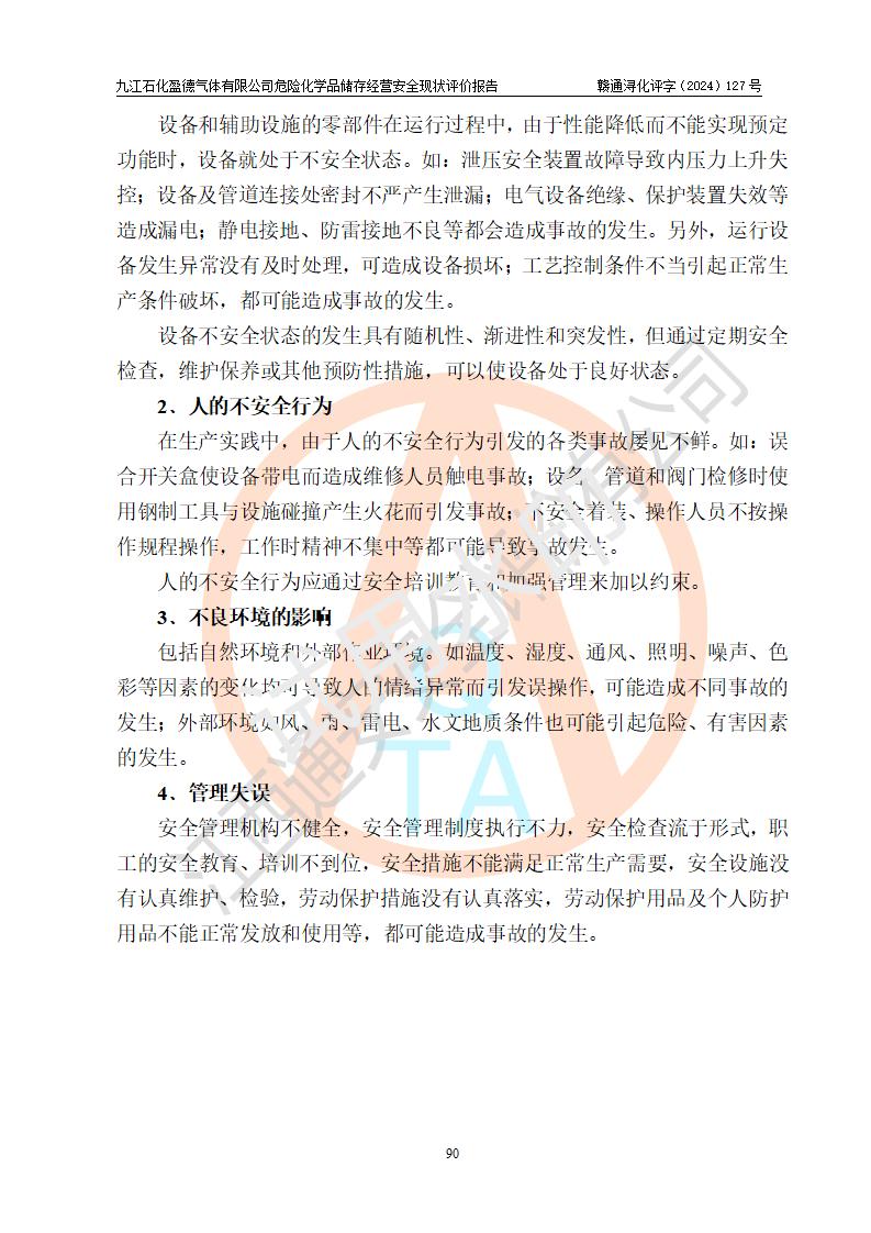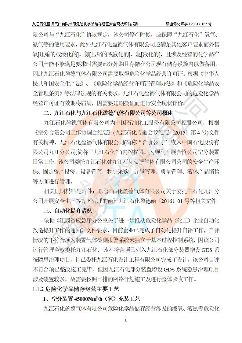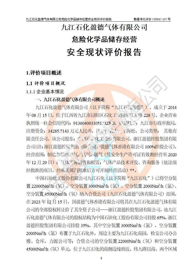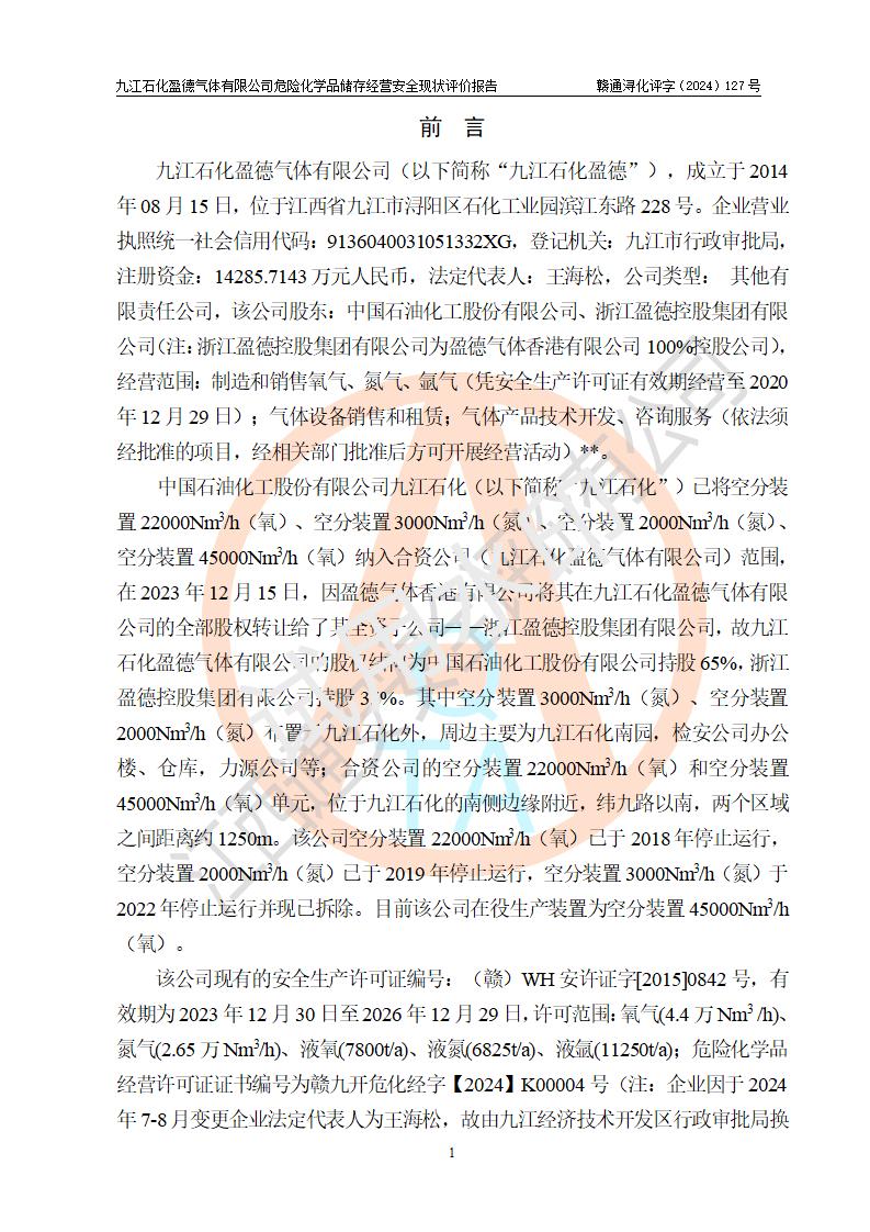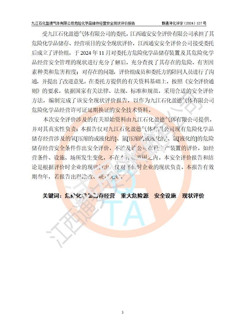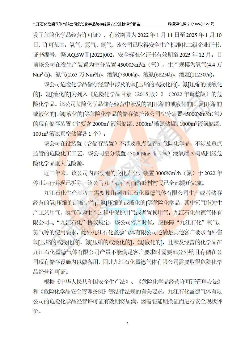 評價報告名稱 | 九江石化盈德氣體有限公司危險化學(xué)品儲存經(jīng)營安全現(xiàn)狀評價報告 | |||