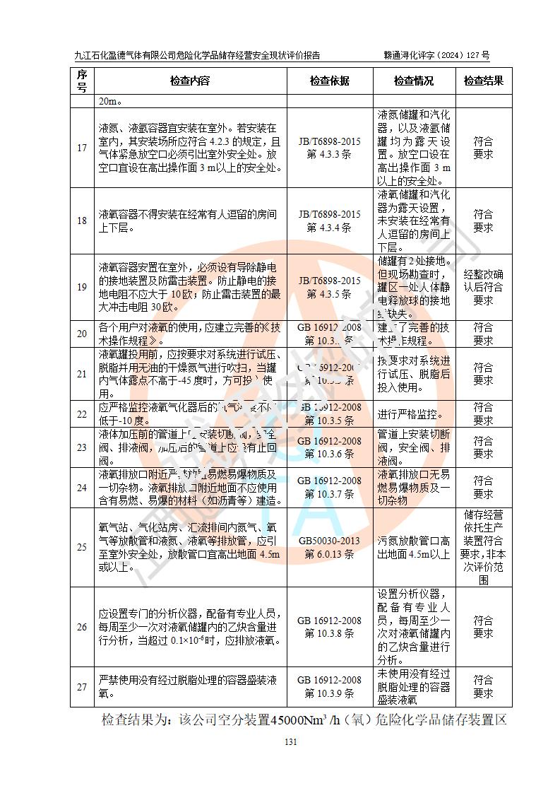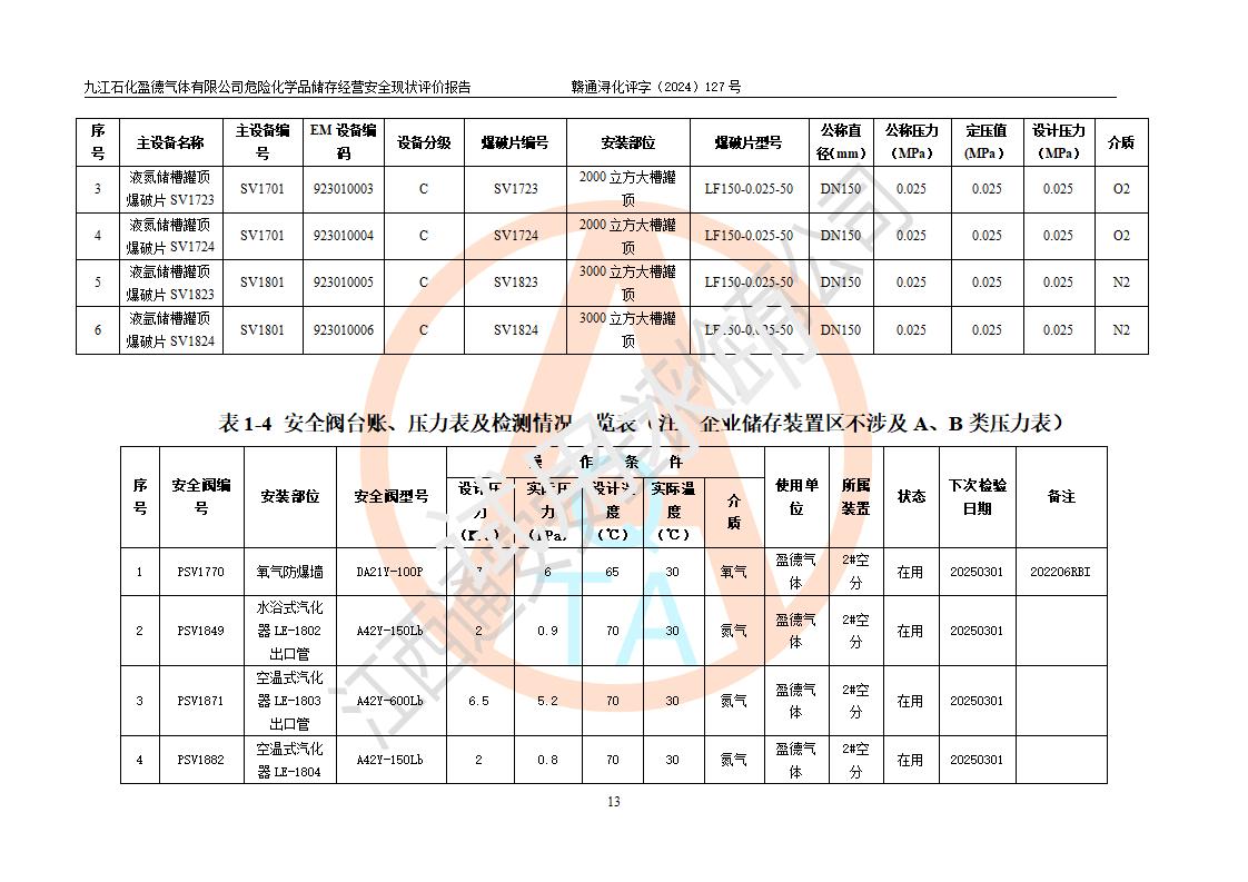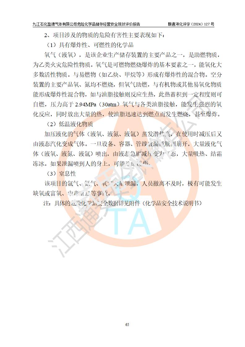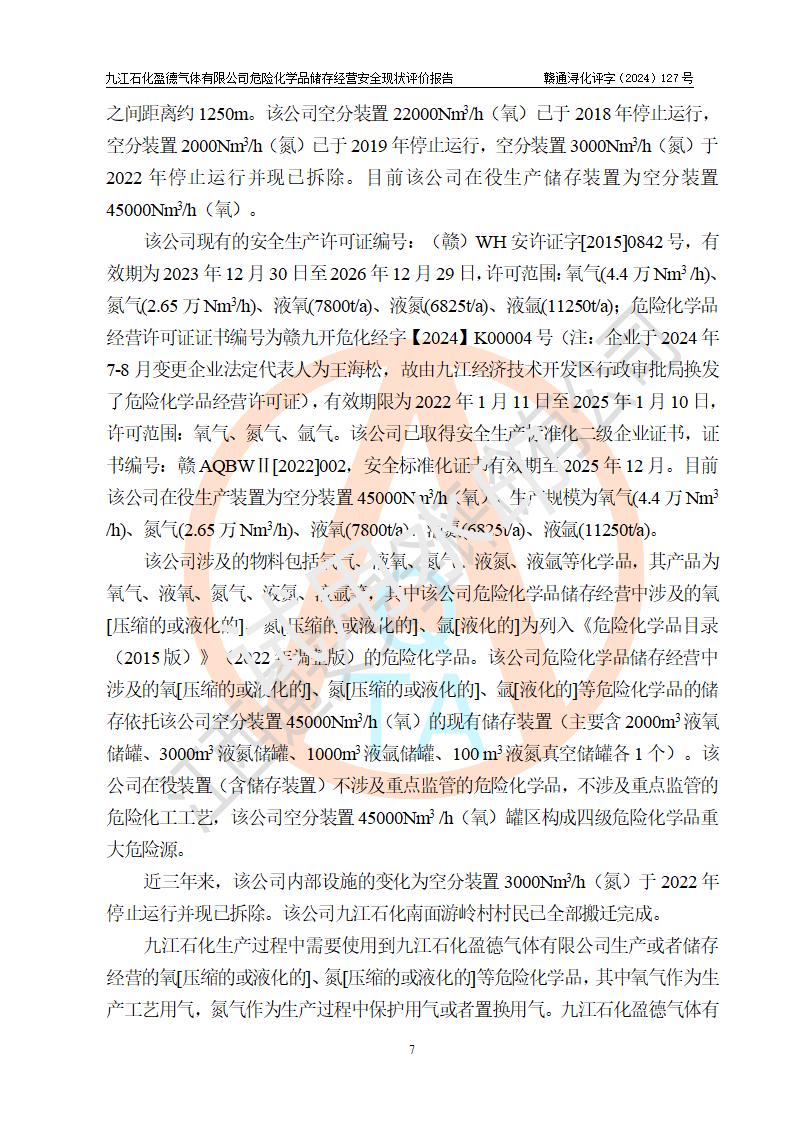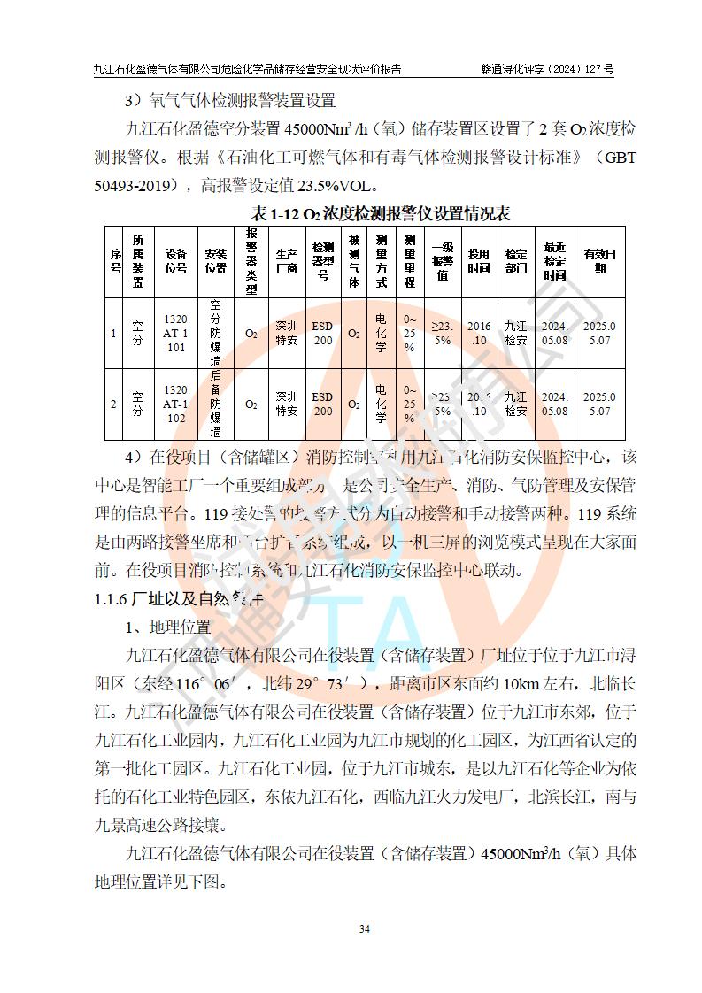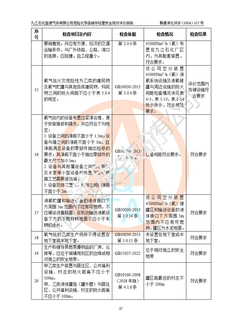 評價報告名稱 | 九江石化盈德氣體有限公司危險化學(xué)品儲存經(jīng)營安全現(xiàn)狀評價報告 | |||