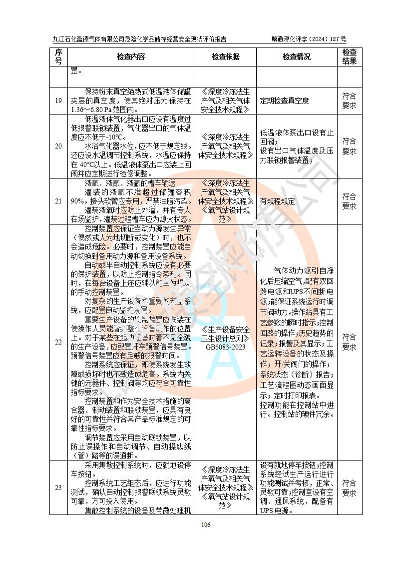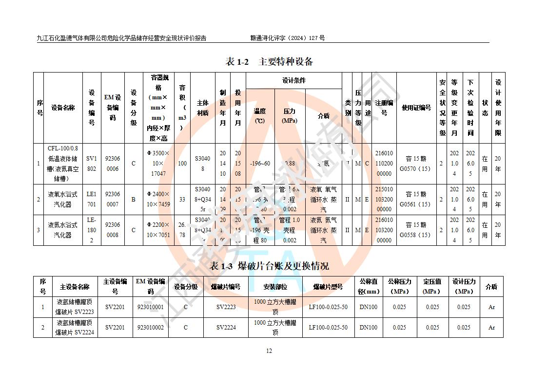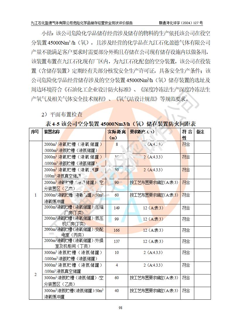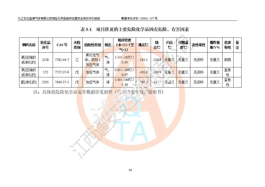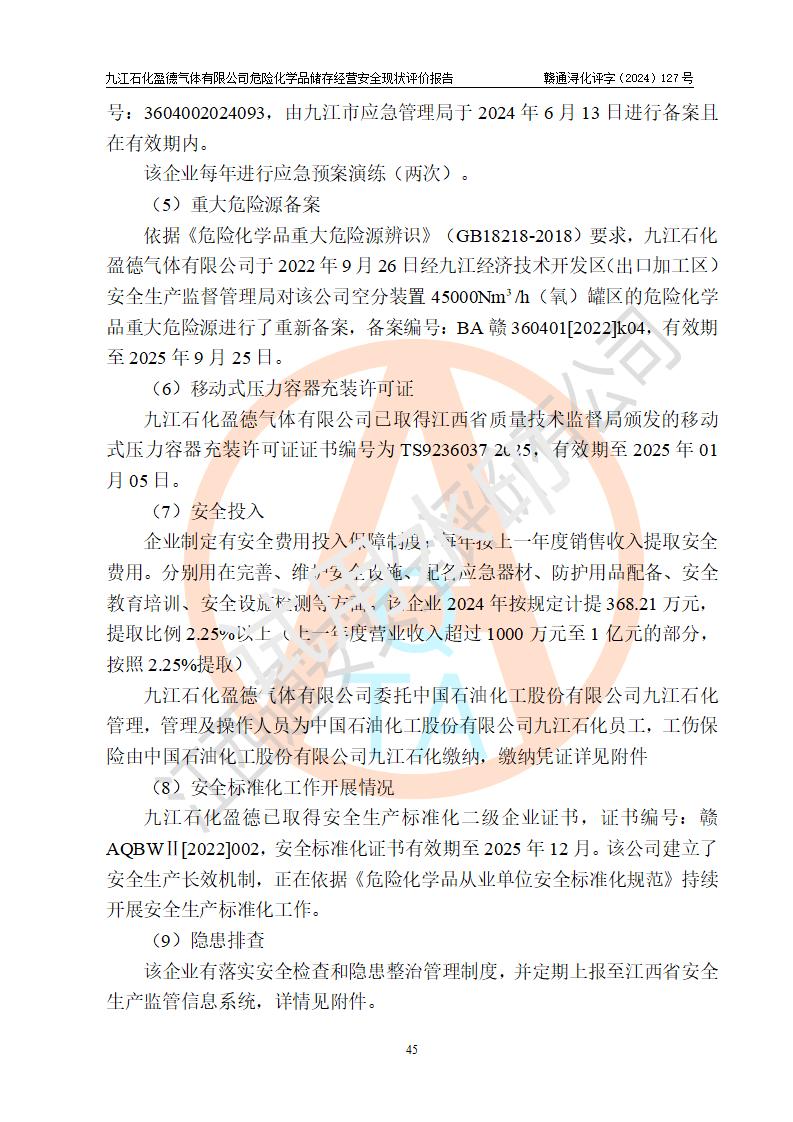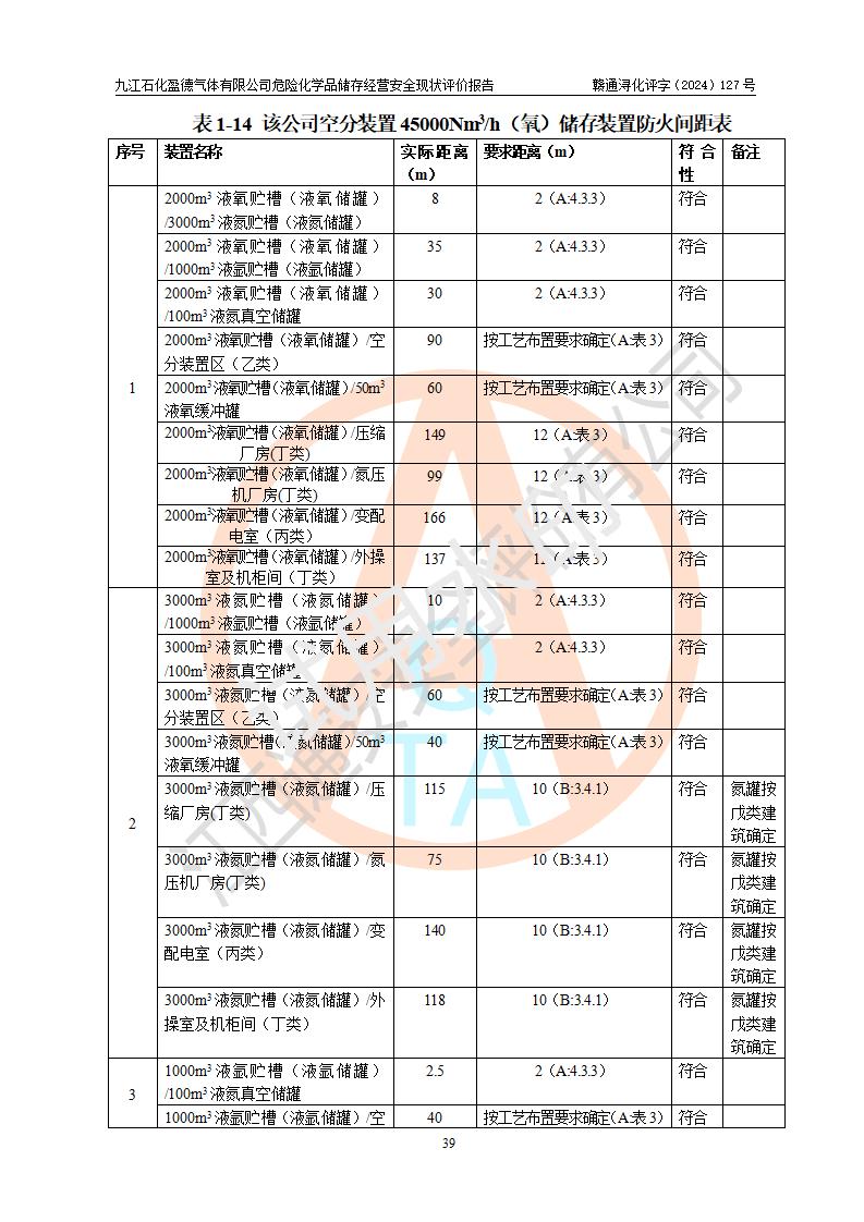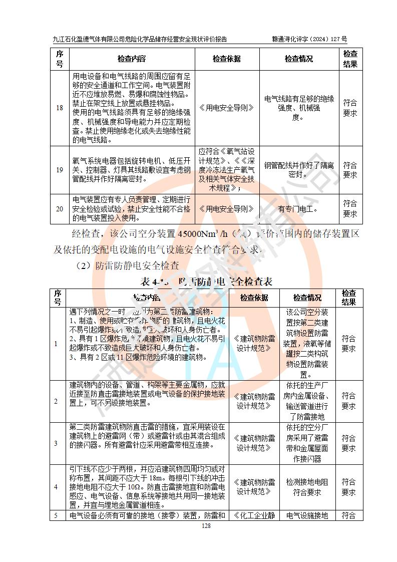 評價報告名稱 | 九江石化盈德氣體有限公司危險化學(xué)品儲存經(jīng)營安全現(xiàn)狀評價報告 | |||