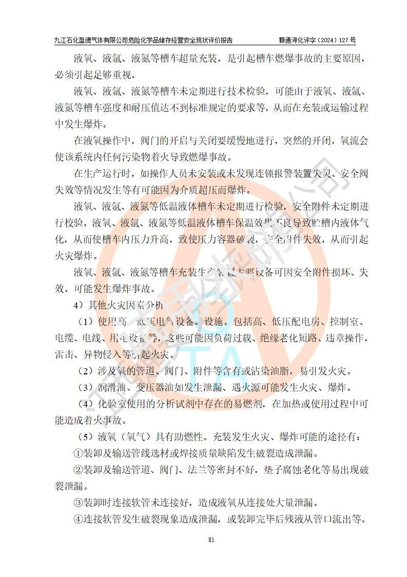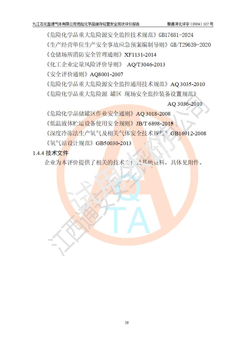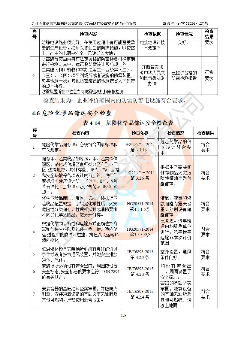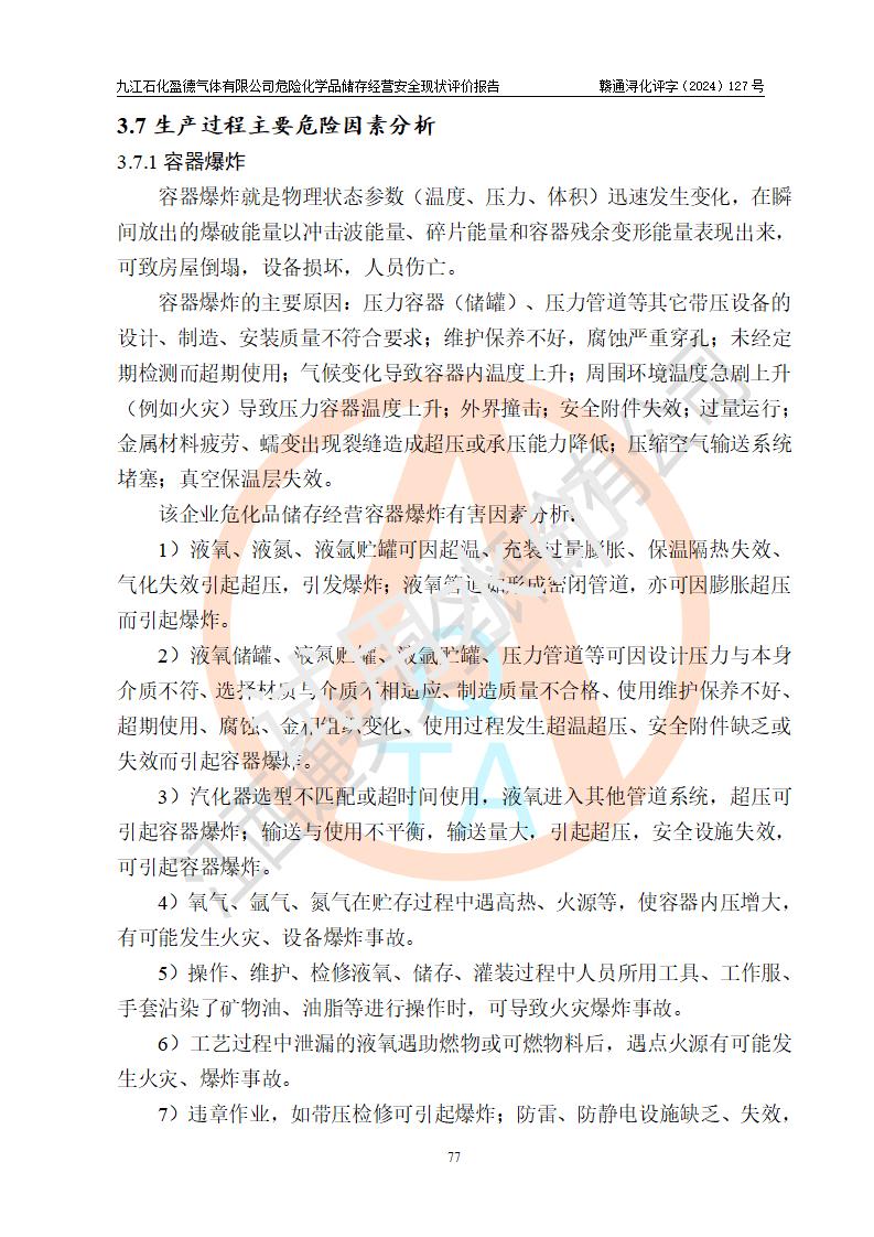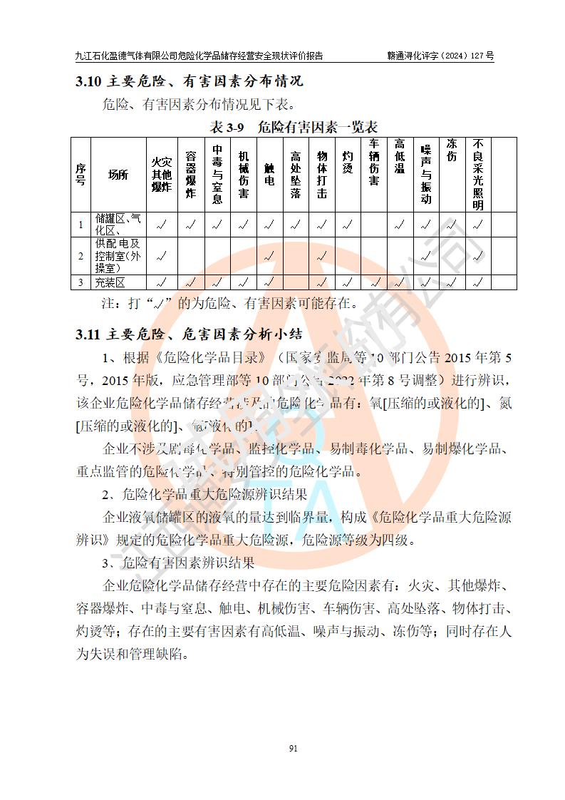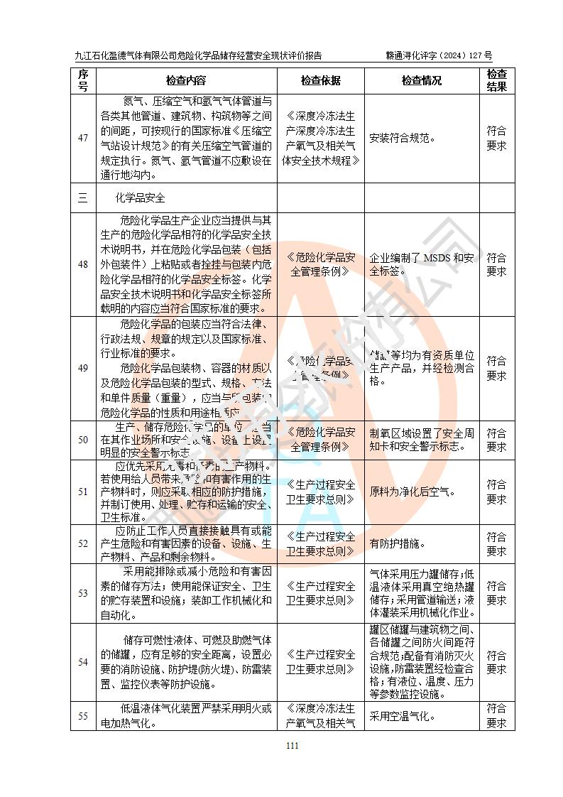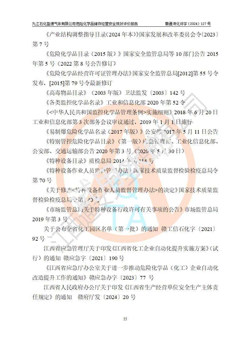 評價報告名稱 | 九江石化盈德氣體有限公司危險化學(xué)品儲存經(jīng)營安全現(xiàn)狀評價報告 | |||