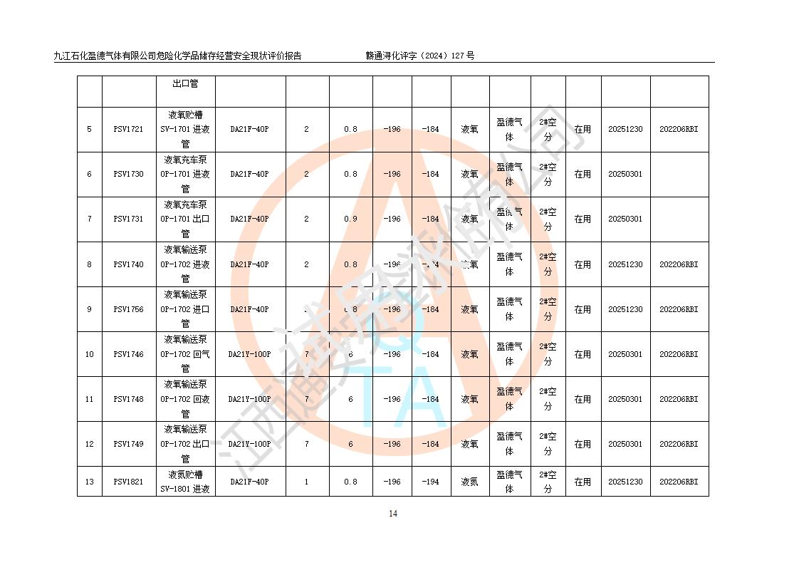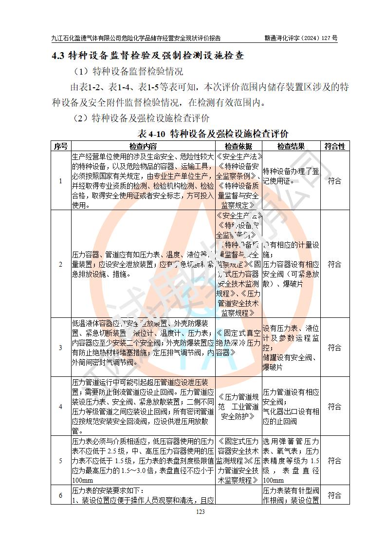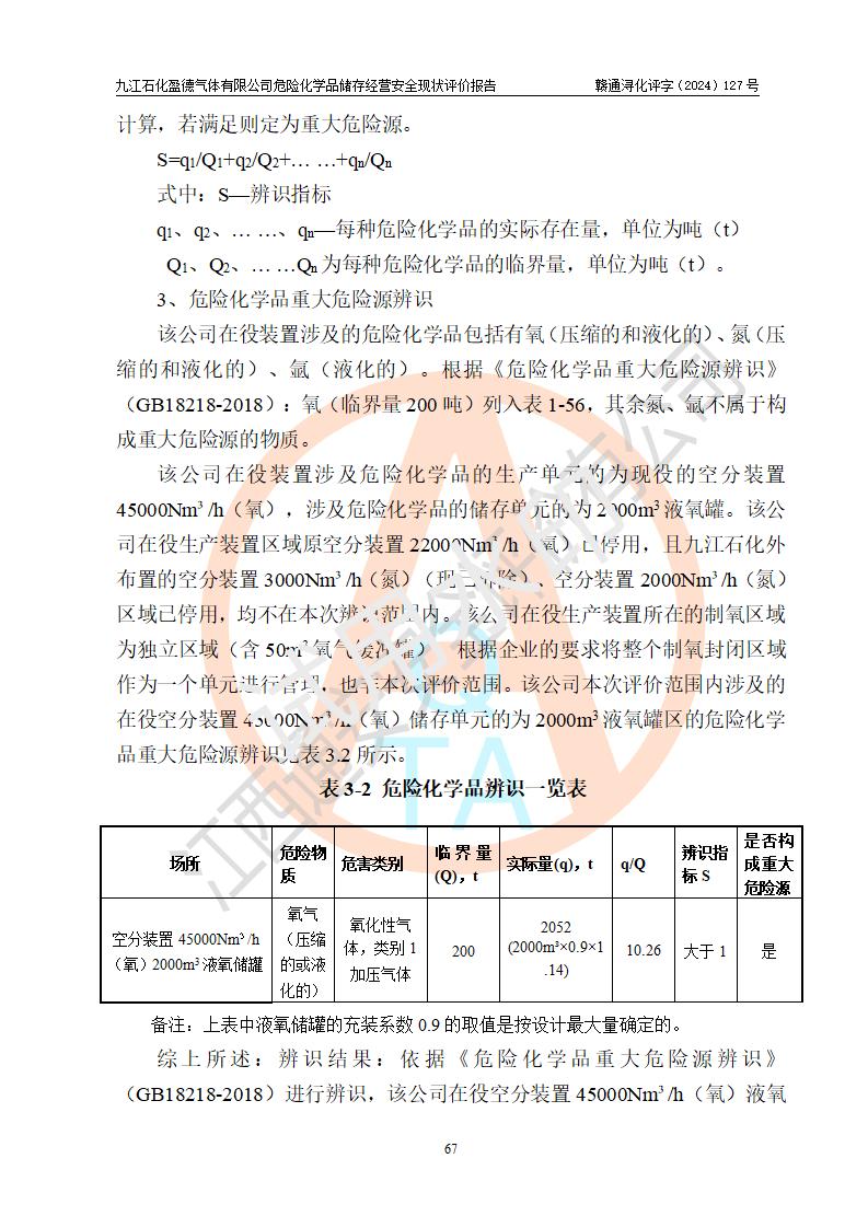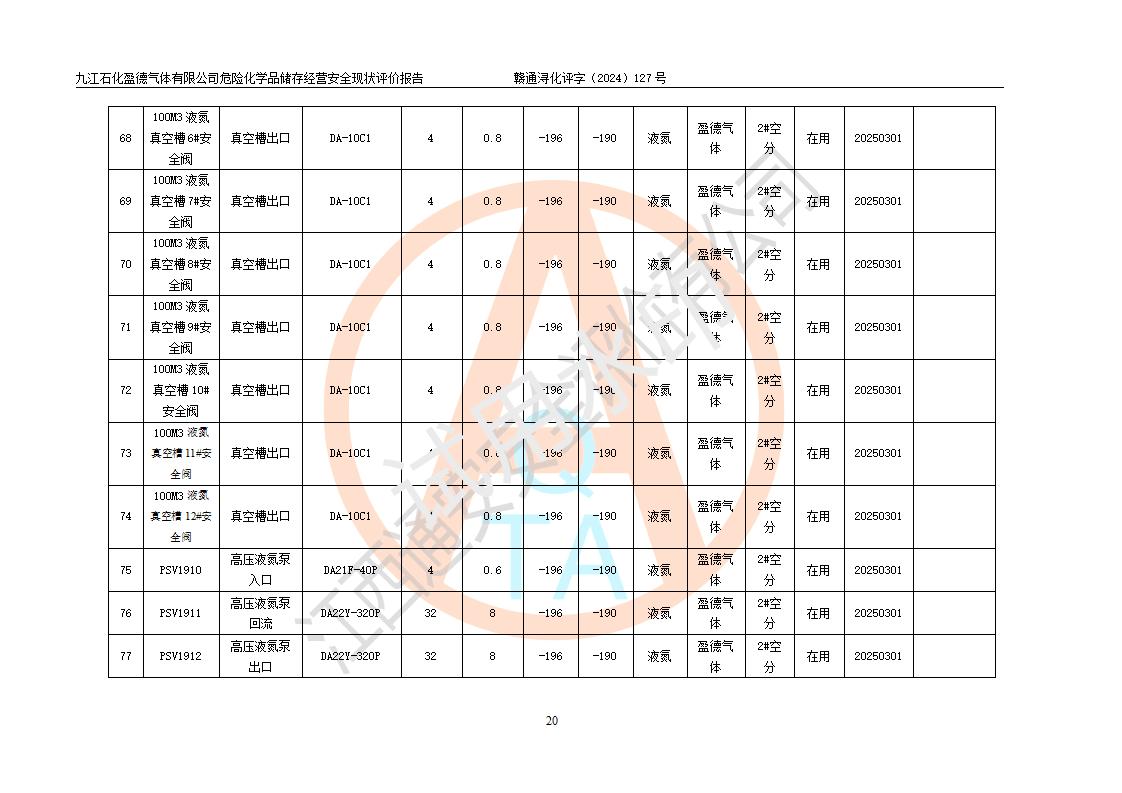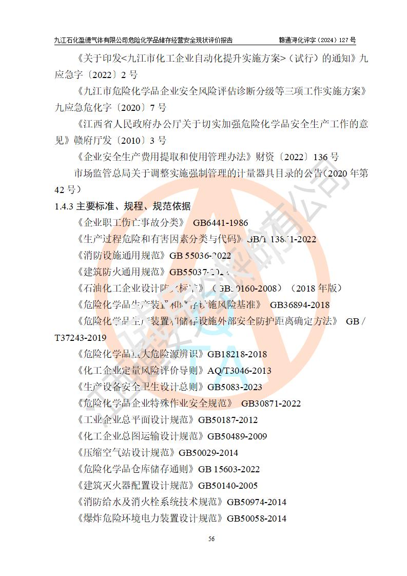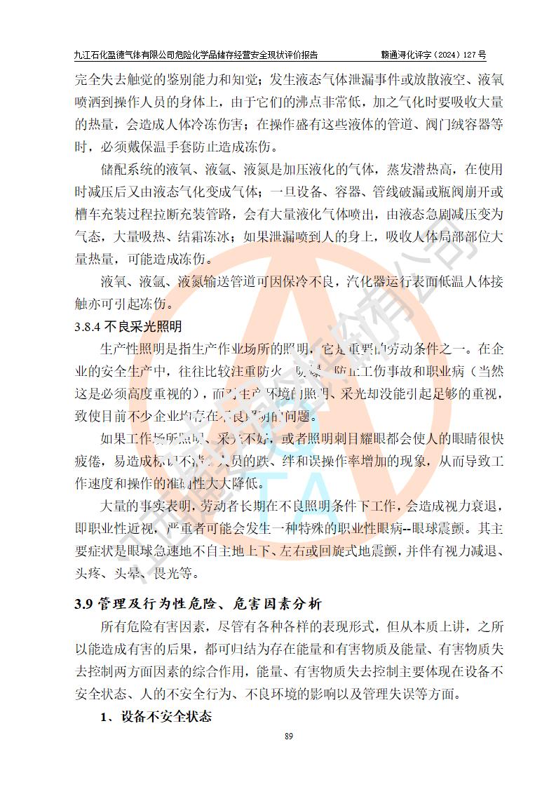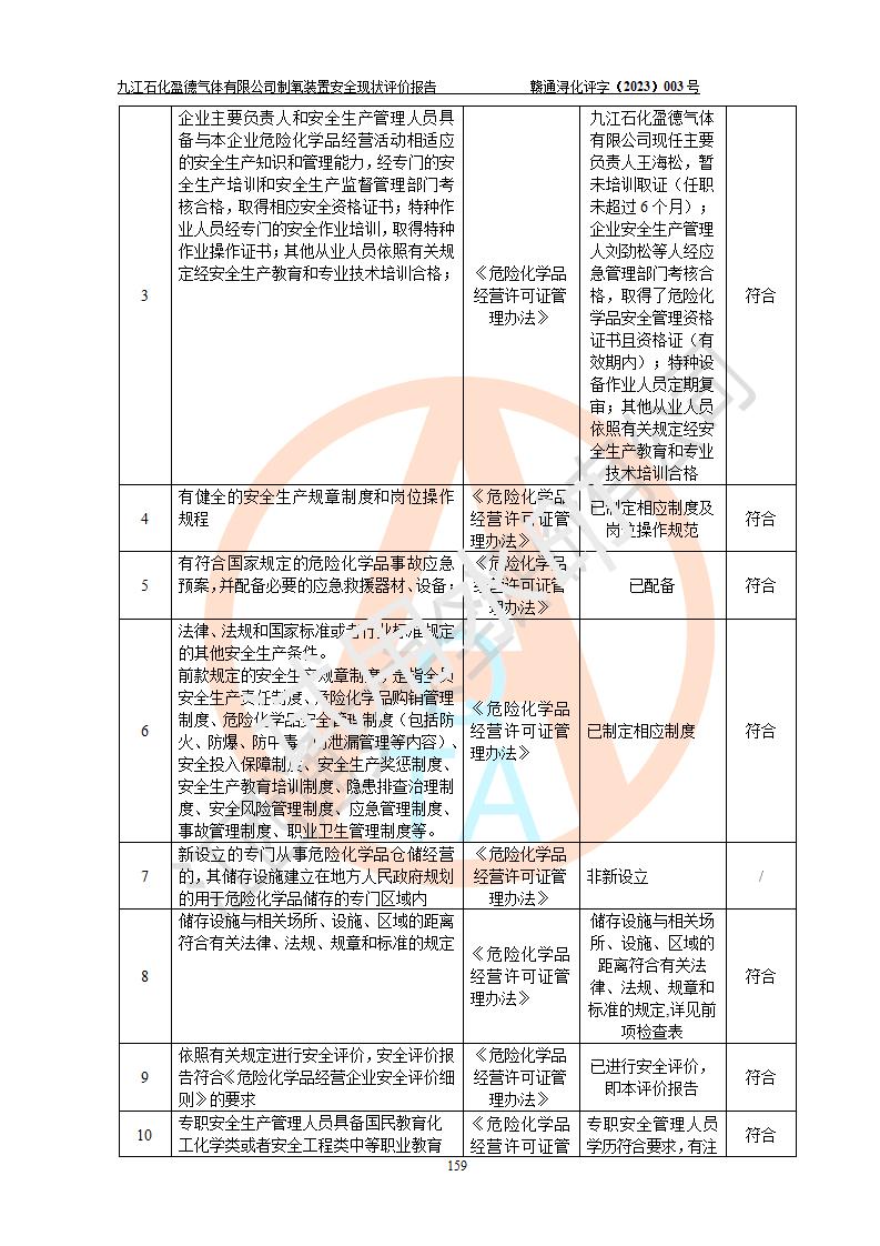 評價報告名稱 | 九江石化盈德氣體有限公司危險化學(xué)品儲存經(jīng)營安全現(xiàn)狀評價報告 | |||