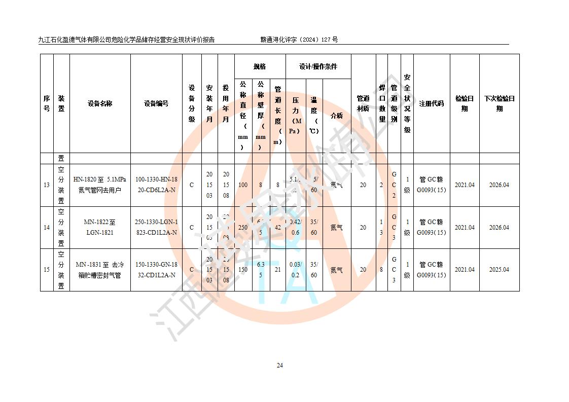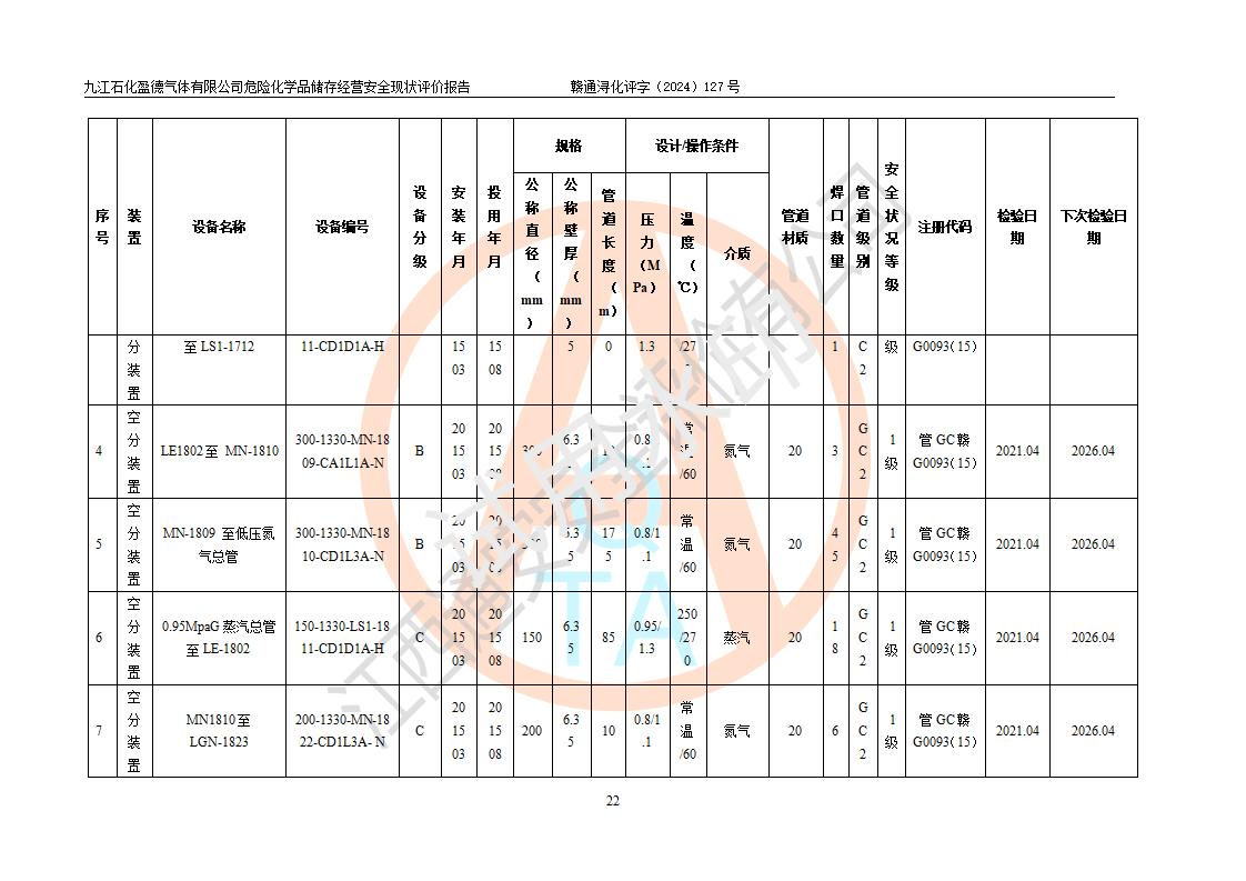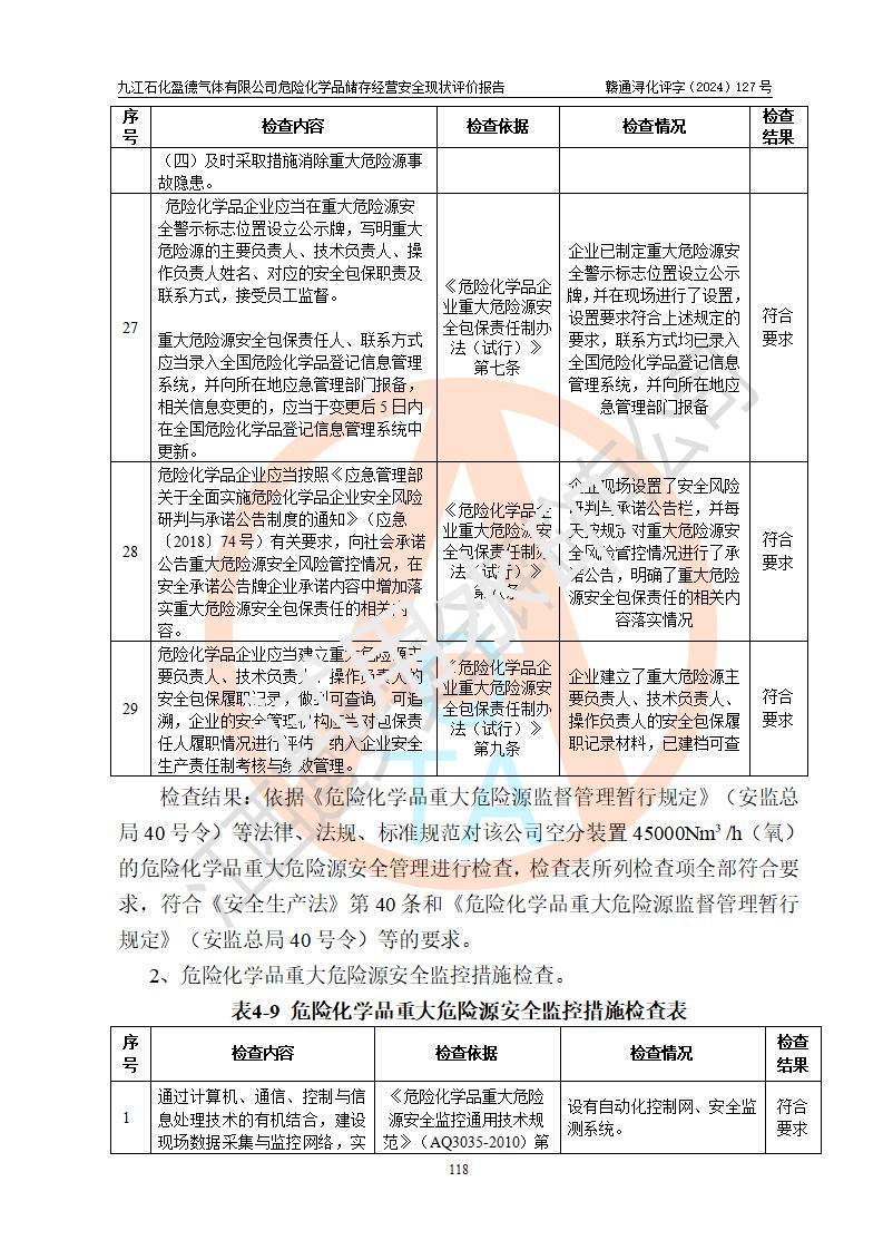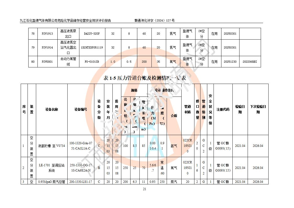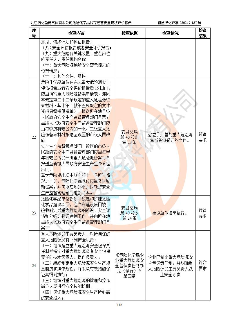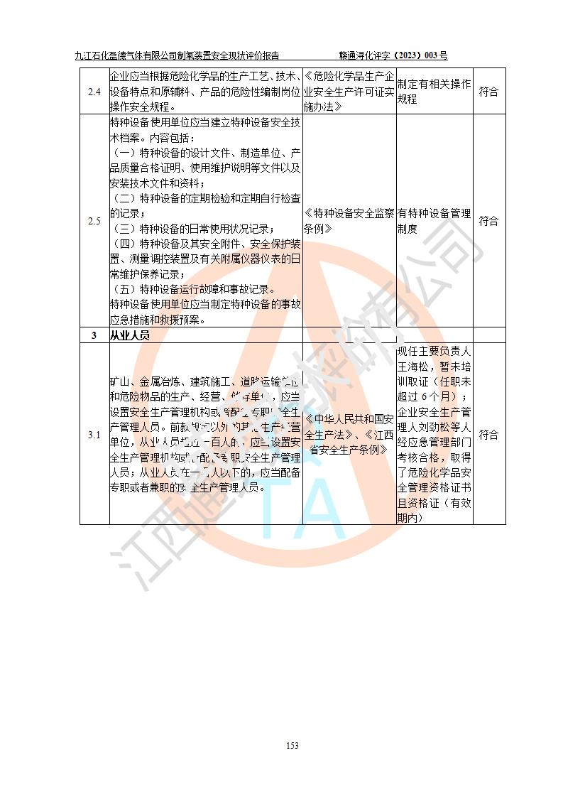 評價報告名稱 | 九江石化盈德氣體有限公司危險化學(xué)品儲存經(jīng)營安全現(xiàn)狀評價報告 | |||