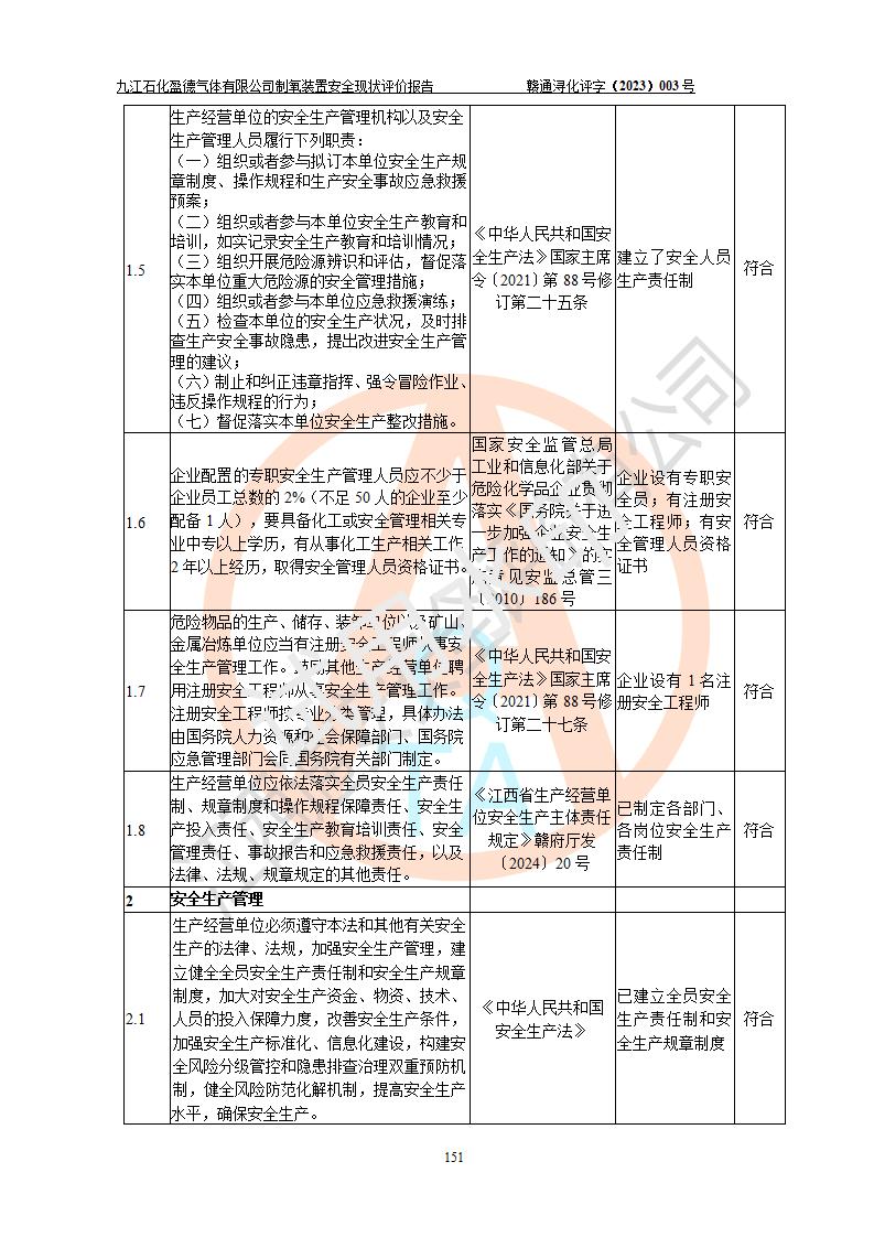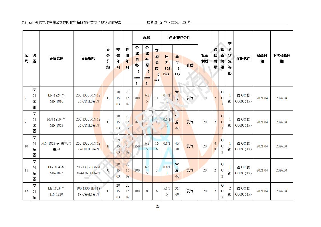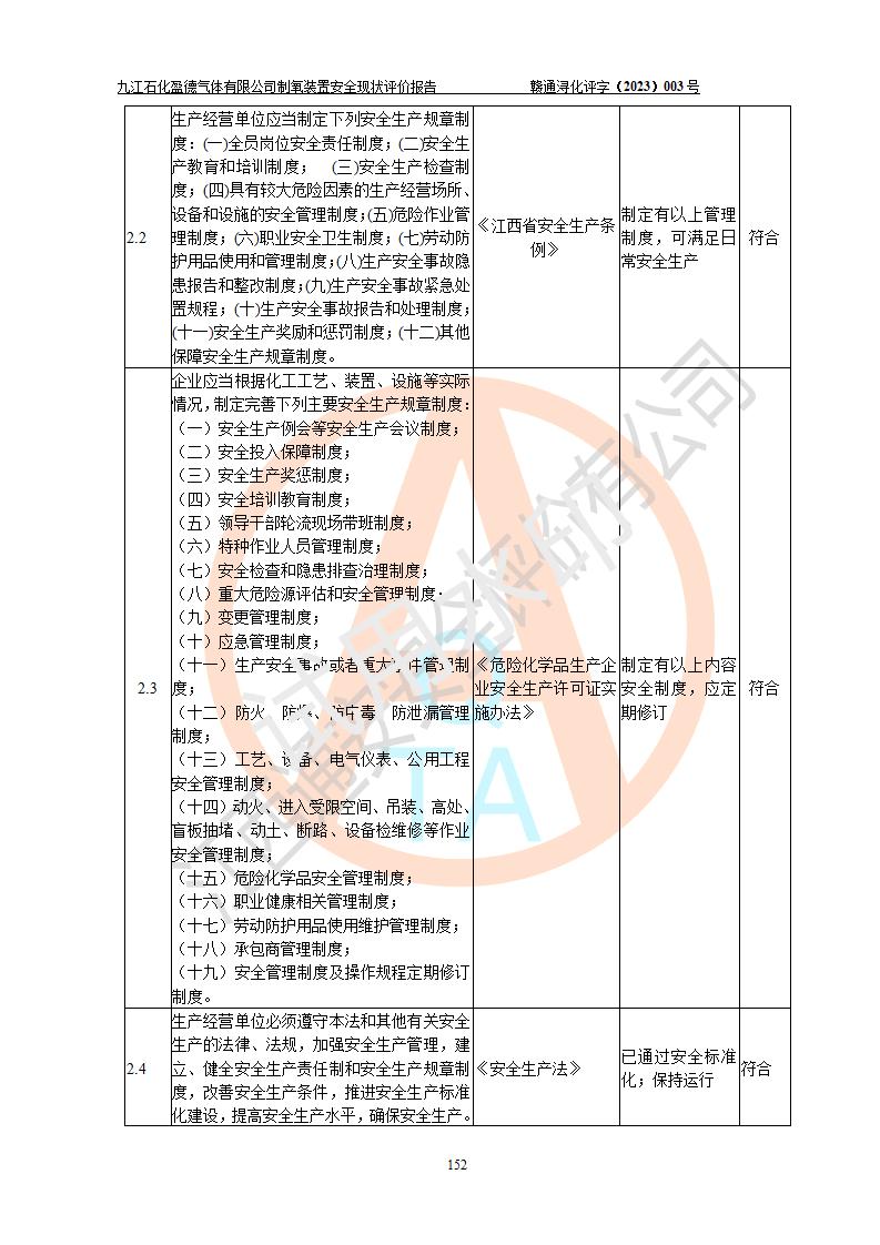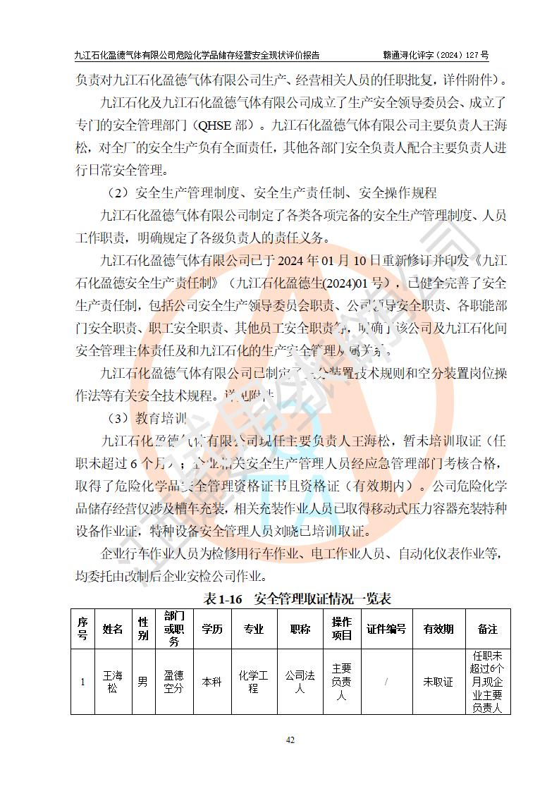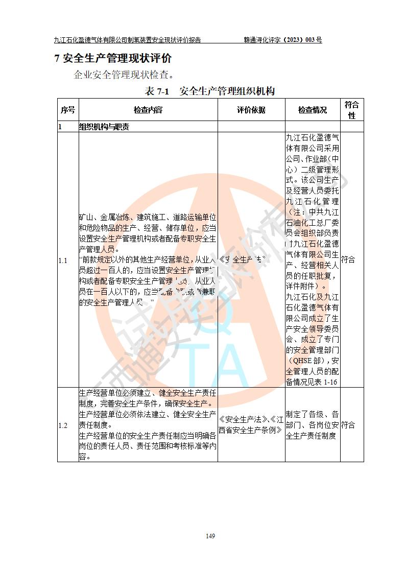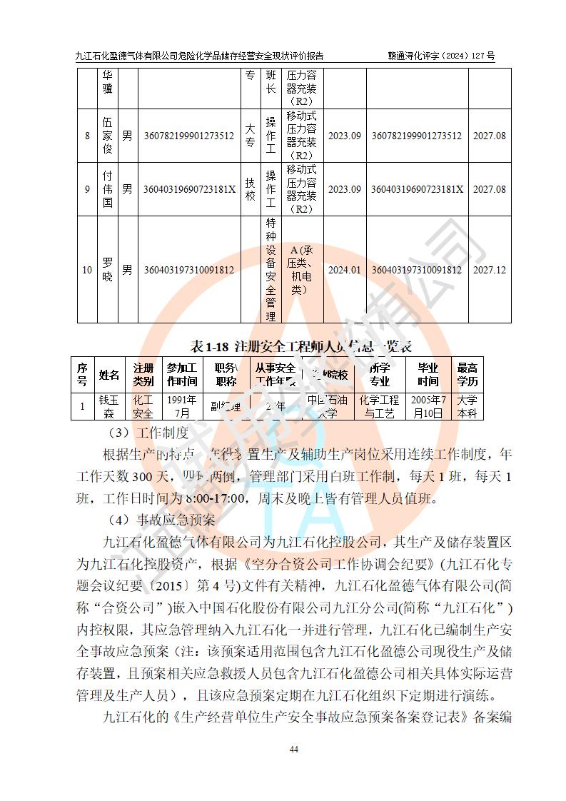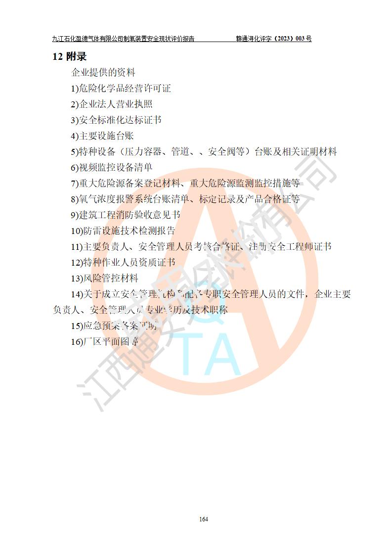 評價報告名稱 | 九江石化盈德氣體有限公司危險化學(xué)品儲存經(jīng)營安全現(xiàn)狀評價報告 | |||