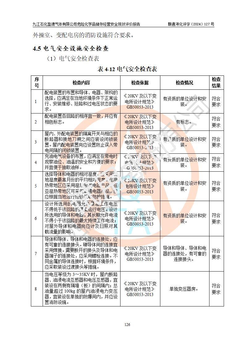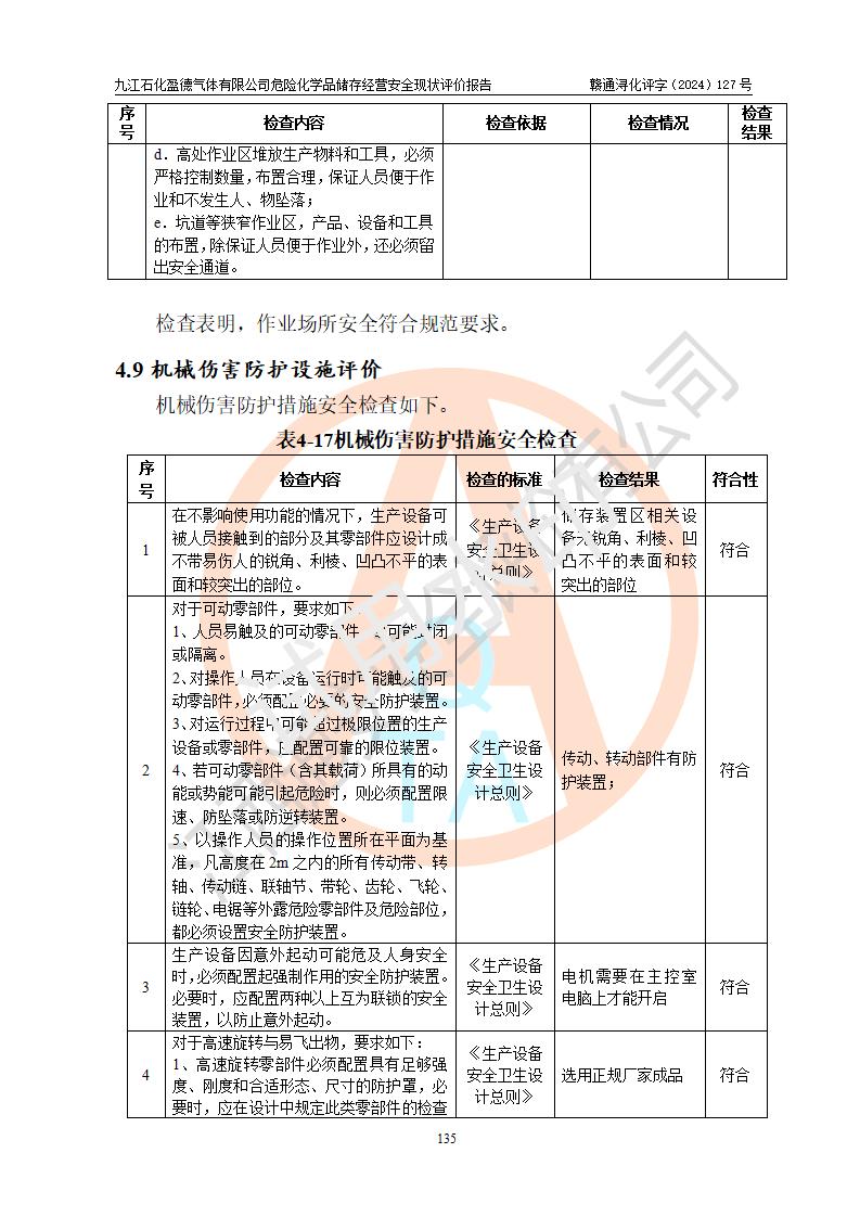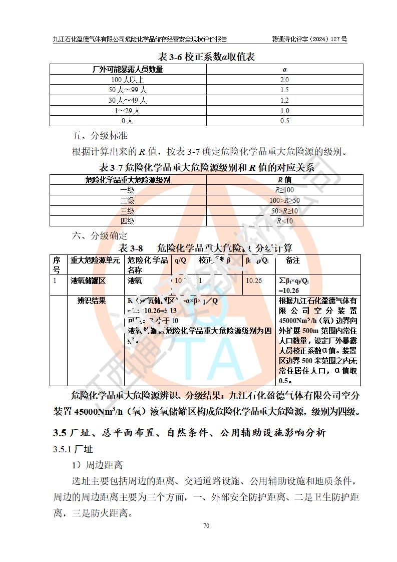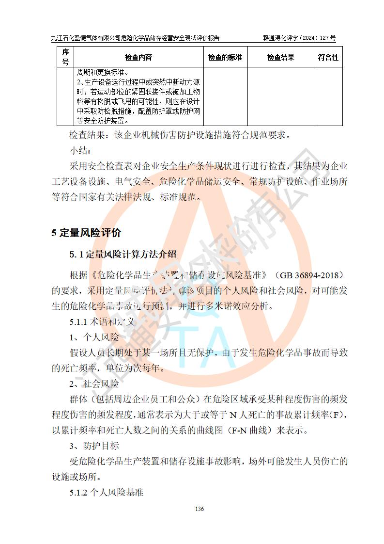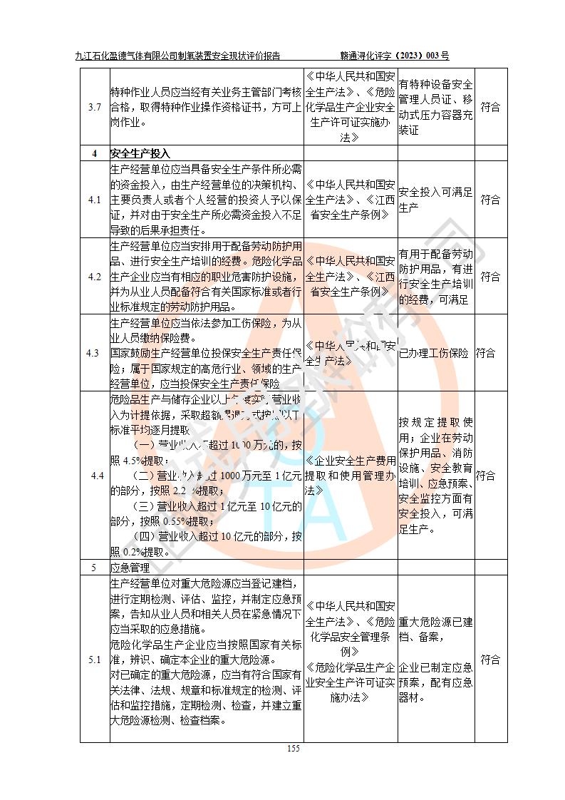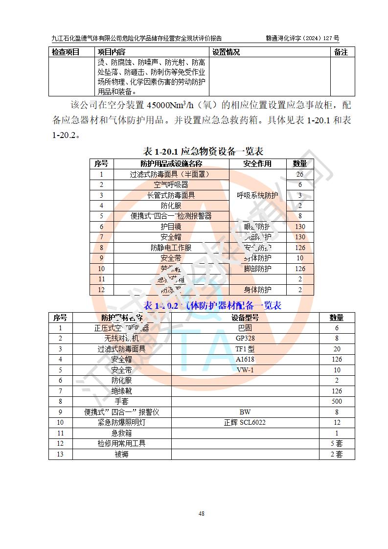 評價結(jié)論 | 九江石化盈德氣體有限公司危險化學(xué)品儲存經(jīng)營涉及的儲存裝置符合**產(chǎn)業(yè)政策,主要安全生產(chǎn)經(jīng)營相關(guān)證照齊全。該公司的安全設(shè)施符合**現(xiàn)行法律、法規(guī)和技術(shù)標(biāo)準(zhǔn)、規(guī)范要求。企業(yè)有健全的安全生產(chǎn)管理組織機(jī)構(gòu),建立了較為完善的安全生產(chǎn)管理規(guī)章制度,安全管理基本有章可循。評價時儲存裝置和現(xiàn)有安全設(shè)施運(yùn)行正常、**。現(xiàn)場儲存裝置與設(shè)計圖紙一致。DCS、TICC等自動化控制系統(tǒng)符合設(shè)計要求并**運(yùn)行;公司主要負(fù)責(zé)人、安全管理人員、特殊作業(yè)人員等符合《江西省危險化學(xué)品安全專項整治三年行動實施方案》專業(yè)、學(xué)歷要求。 綜上所述,該公司危險化學(xué)品儲存經(jīng)營涉及的相關(guān)裝置及配套設(shè)施現(xiàn)狀具備了符合**標(biāo)準(zhǔn)規(guī)范要求的安全基本條件,該企業(yè)針對現(xiàn)場提出的安全隱患部分整改到位、企業(yè)采取了相應(yīng)的安全防范措施和加強(qiáng)了安全管理,該公司危險化學(xué)品儲存經(jīng)營風(fēng)險屬可接受范圍,此次評價范圍內(nèi)的安全現(xiàn)狀符合《危險化學(xué)品經(jīng)營許可證管理辦法》規(guī)定的危險化學(xué)品儲存經(jīng)營條件,在役儲存裝置風(fēng)險可控,可滿足危險化學(xué)品儲存經(jīng)營條件。 | |||