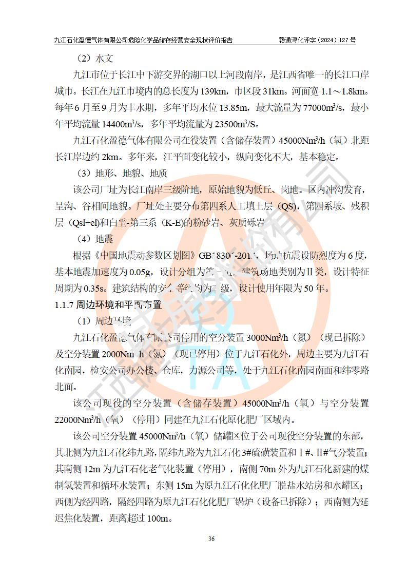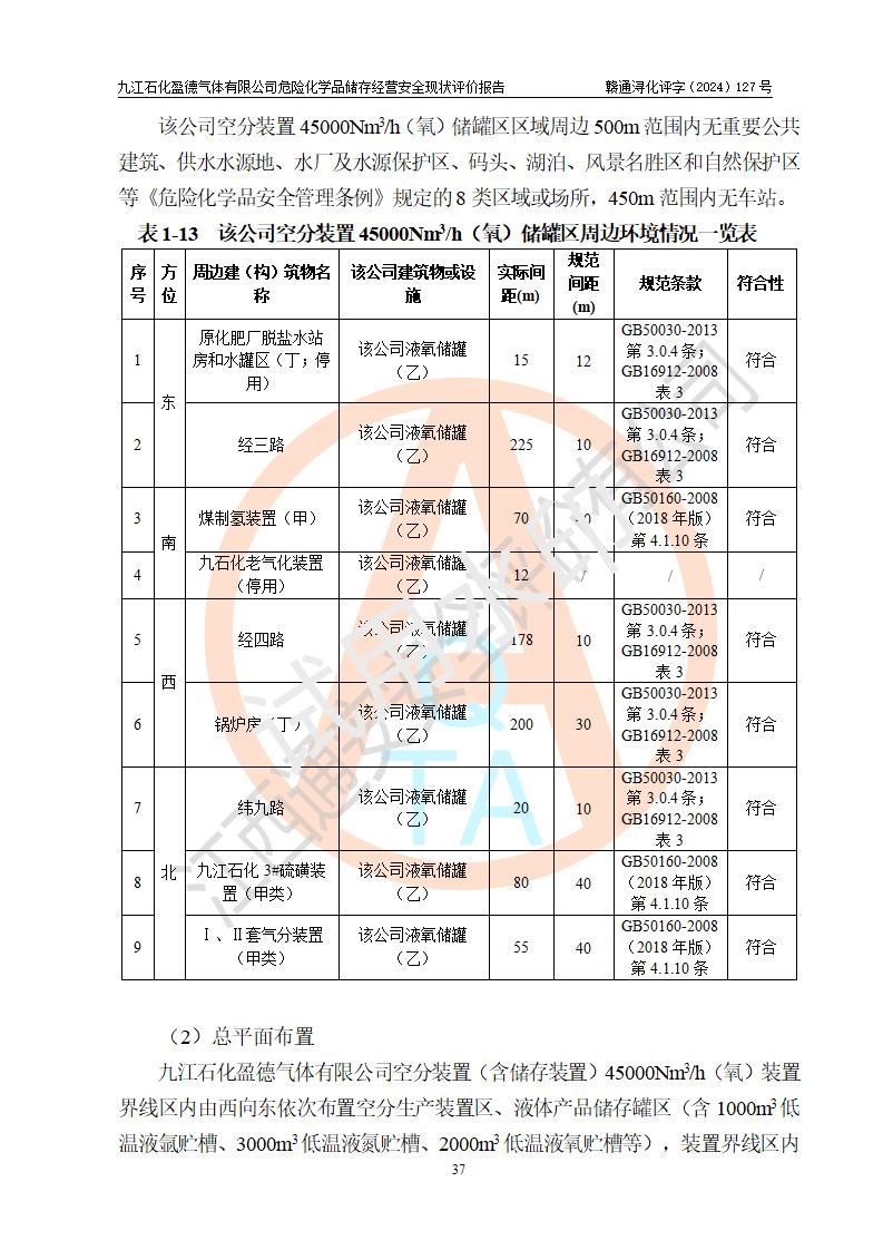 項目簡介 | 九江石化盈德氣體有限公司(以下簡稱“九江石化盈德”),成立于2014年08月15日,位于江西省九江市潯陽區(qū)石化工業(yè)園濱江東路228號。公司類型: 其他有限責(zé)任公司,經(jīng)營范圍:制造和銷售氧氣、氮?dú)?、氬氣等;氣體設(shè)備銷售和租賃;氣體產(chǎn)品技術(shù)開發(fā)、咨詢服務(wù)(依法須經(jīng)批準(zhǔn)的項目,經(jīng)相關(guān)部門批準(zhǔn)后方可開展經(jīng)營活動)**。該公司涉及的物料包括氧氣、液氧、氮?dú)?、液氮、液氬等化學(xué)品,其產(chǎn)品為氧氣、液氧、氮?dú)?、液氮、液氬等,其中該公司危險化學(xué)品儲存經(jīng)營中涉及的氧[壓縮的或液化的]、氮[壓縮的或液化的]、氬[液化的]為列入《危險化學(xué)品目錄(2015版)》(2022年調(diào)整版)的危險化學(xué)品。該公司危險化學(xué)品儲存經(jīng)營中涉及的氧[壓縮的或液化的]、氮[壓縮的或液化的]、氬[液化的]等危險化學(xué)品的儲存依托該公司空分裝置45000Nm3/h(氧)的現(xiàn)有儲存裝置(主要含2000m3液氧儲罐、3000m3液氮儲罐、1000m3液氬儲罐、100 m3液氮真空儲罐各1個)。根據(jù)《中華人民共和國安全生產(chǎn)法》、《危險化學(xué)品經(jīng)營許可證管理辦法》和《危險化學(xué)品安全管理條例》等法律法規(guī)的有關(guān)要求,九江石化盈德氣體有限公司的危險化學(xué)品經(jīng)營許可證**期將屆滿,因需要延期換證而進(jìn)行安全現(xiàn)狀評價。 | |||