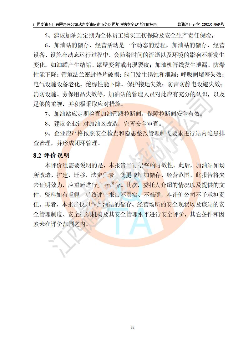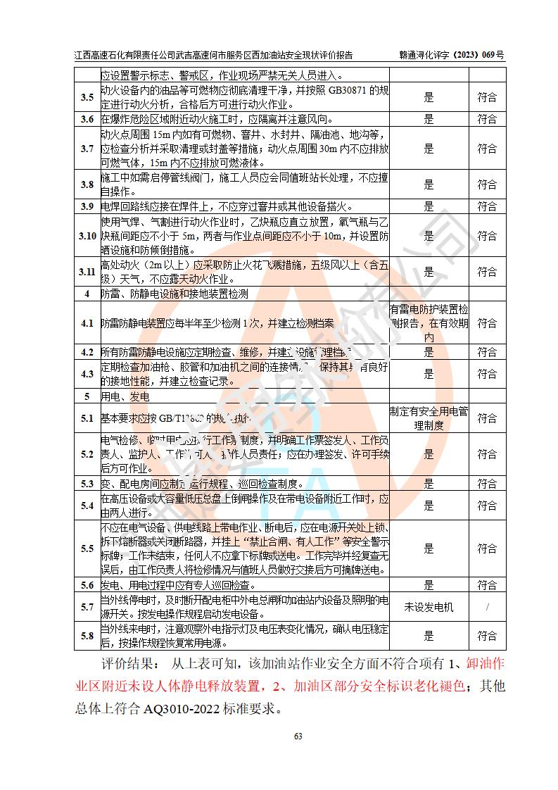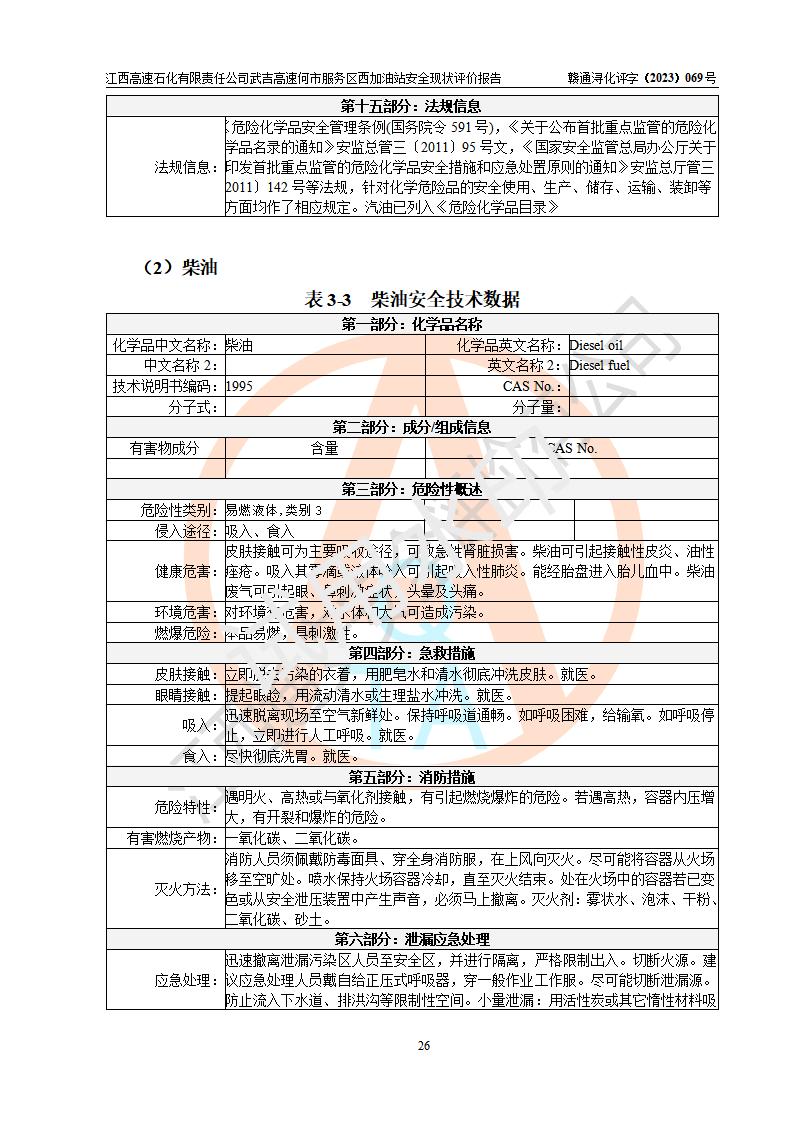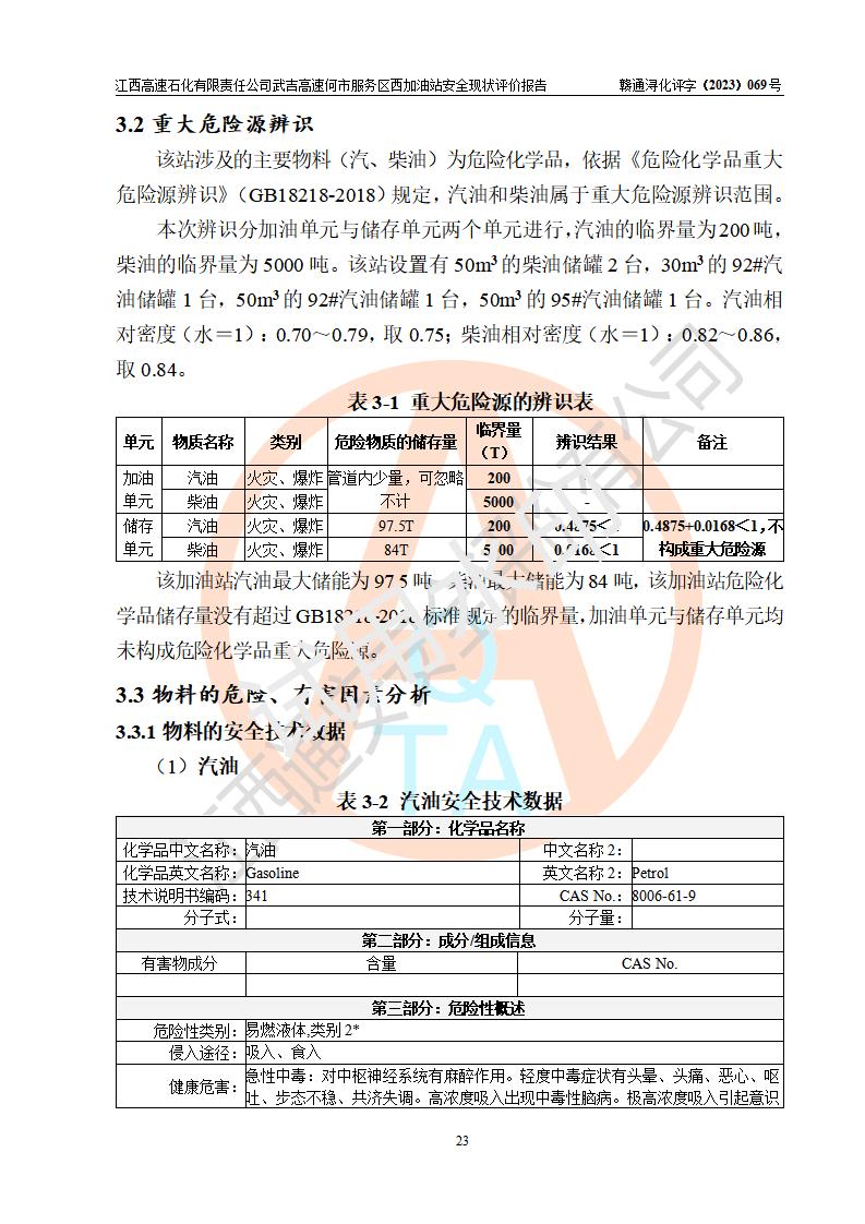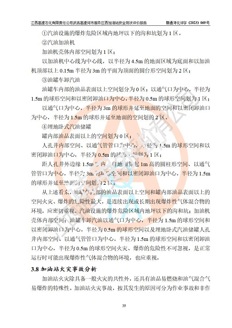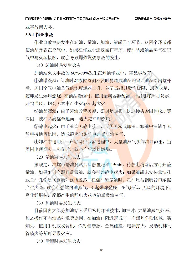 評(píng)價(jià)結(jié)論 | 江西高速石化有限責(zé)任公司武吉高速何市服務(wù)區(qū)西加油站涉及的安全條件、安全經(jīng)營(yíng)條件、安全生產(chǎn)管理符合《危險(xiǎn)化學(xué)品經(jīng)營(yíng)許可證管理辦法》、《汽車加油加氣加氫站技術(shù)標(biāo)準(zhǔn)》等**有關(guān)法規(guī)、標(biāo)準(zhǔn)、規(guī)范要求,能滿足危險(xiǎn)化學(xué)品經(jīng)營(yíng)安全條件。 | |||