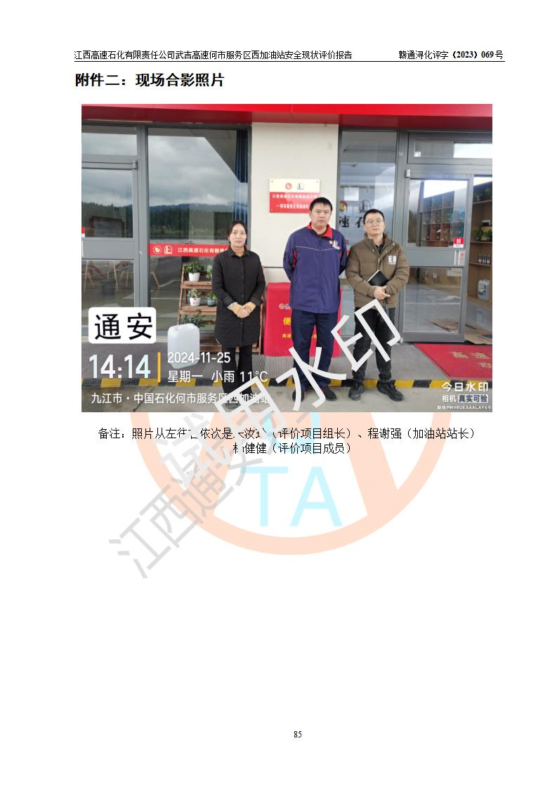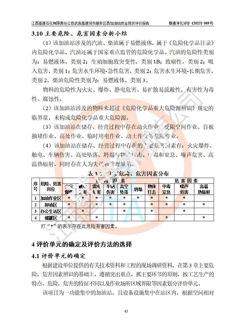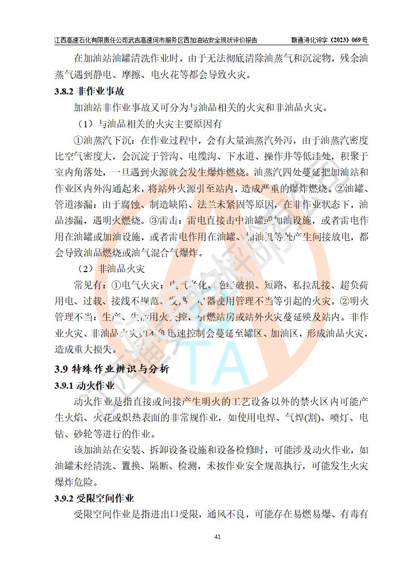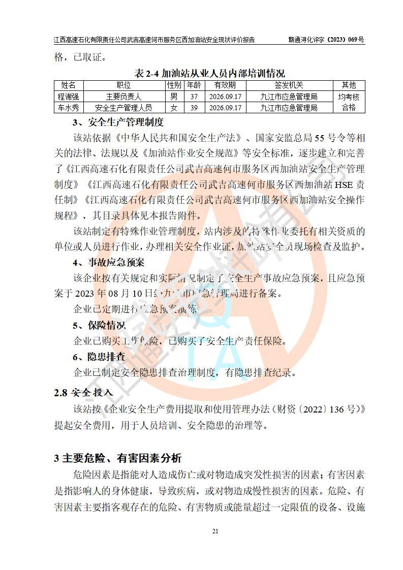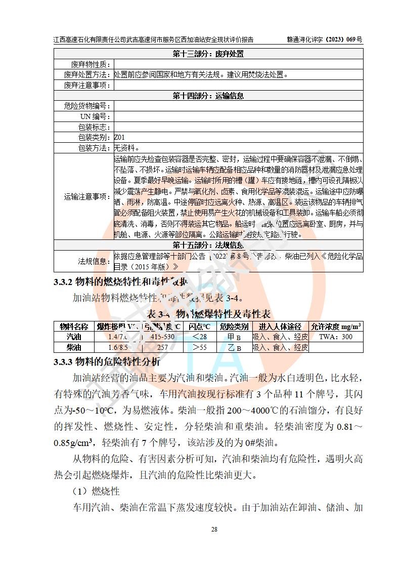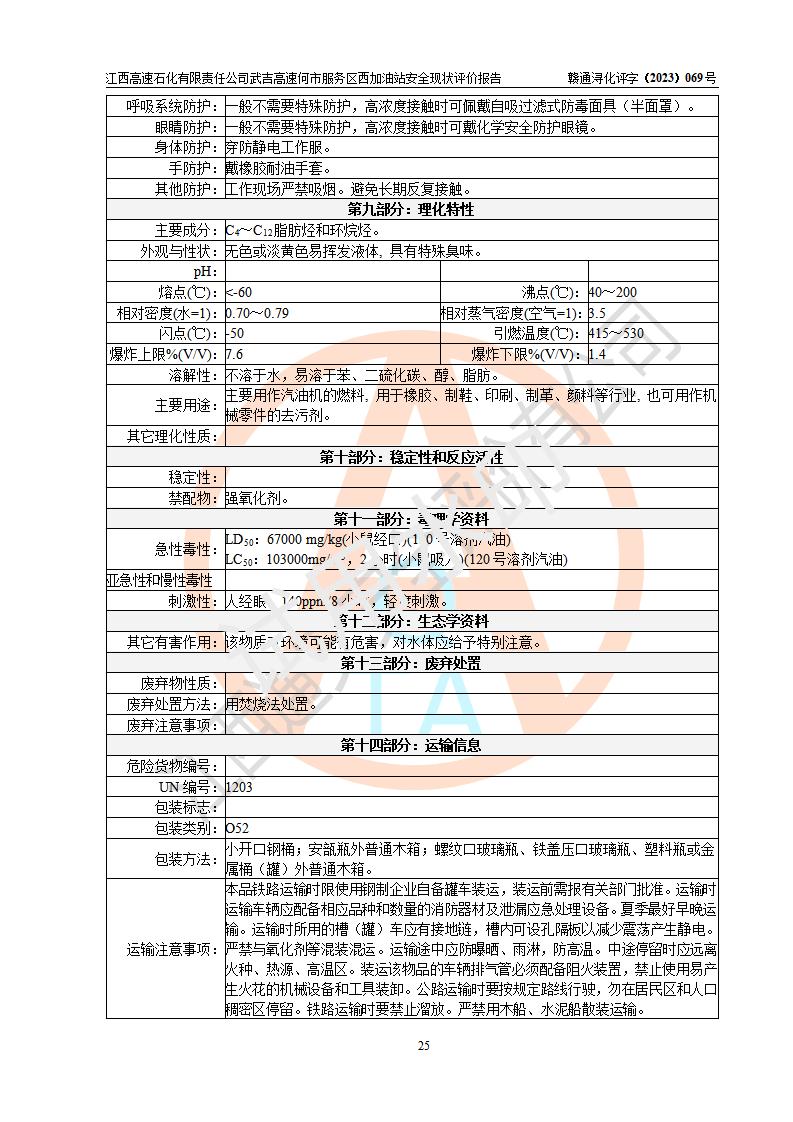 評(píng)價(jià)結(jié)論 | 江西高速石化有限責(zé)任公司武吉高速何市服務(wù)區(qū)西加油站涉及的安全條件、安全經(jīng)營(yíng)條件、安全生產(chǎn)管理符合《危險(xiǎn)化學(xué)品經(jīng)營(yíng)許可證管理辦法》、《汽車加油加氣加氫站技術(shù)標(biāo)準(zhǔn)》等**有關(guān)法規(guī)、標(biāo)準(zhǔn)、規(guī)范要求,能滿足危險(xiǎn)化學(xué)品經(jīng)營(yíng)安全條件。 | |||