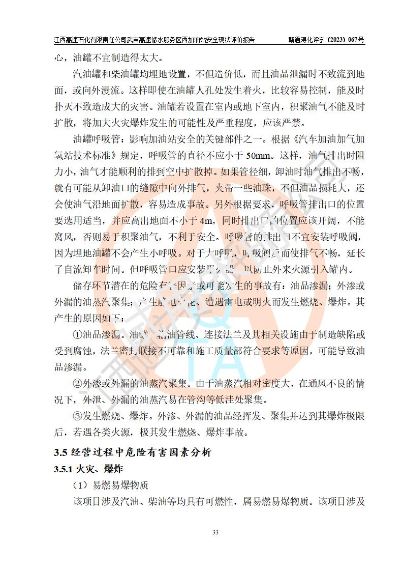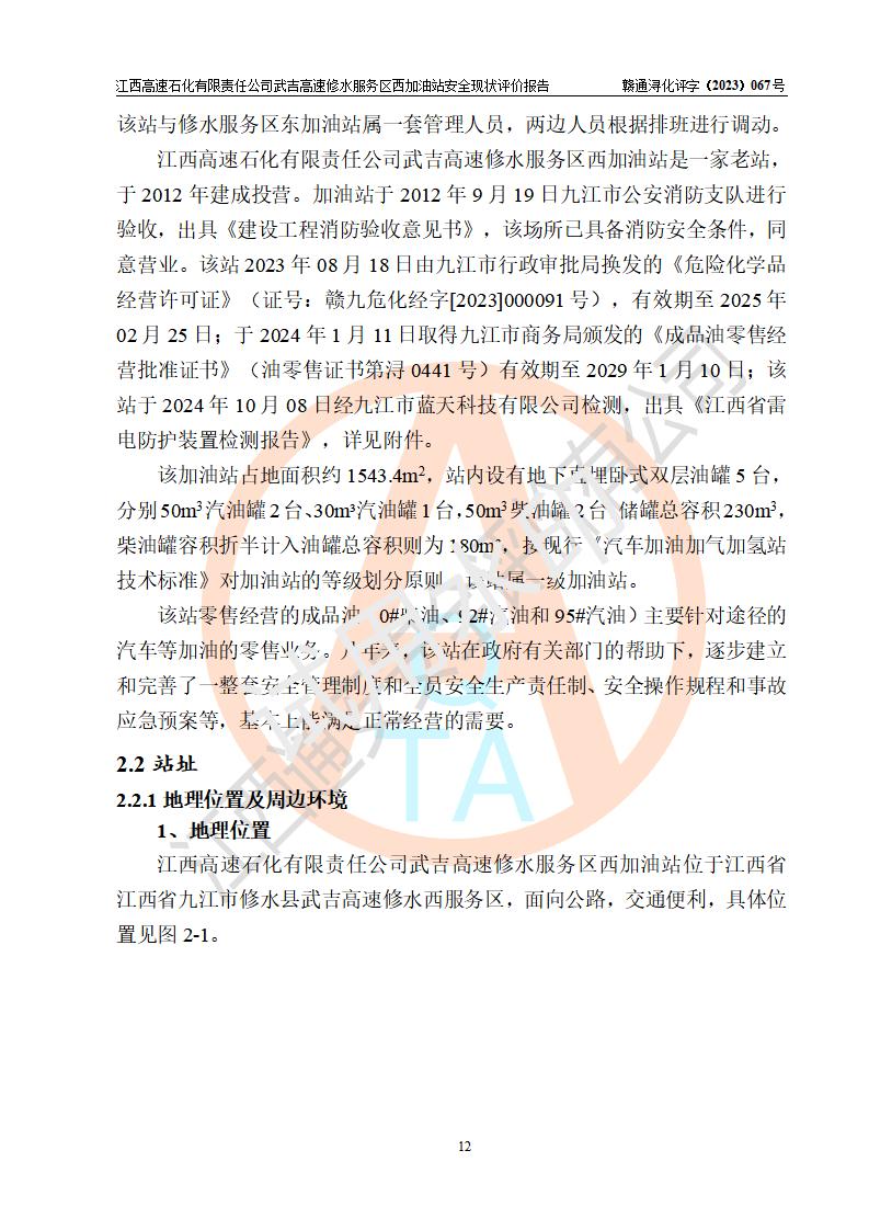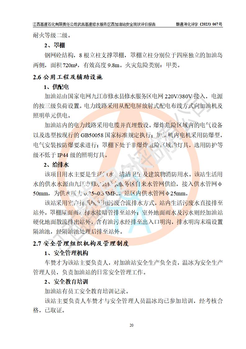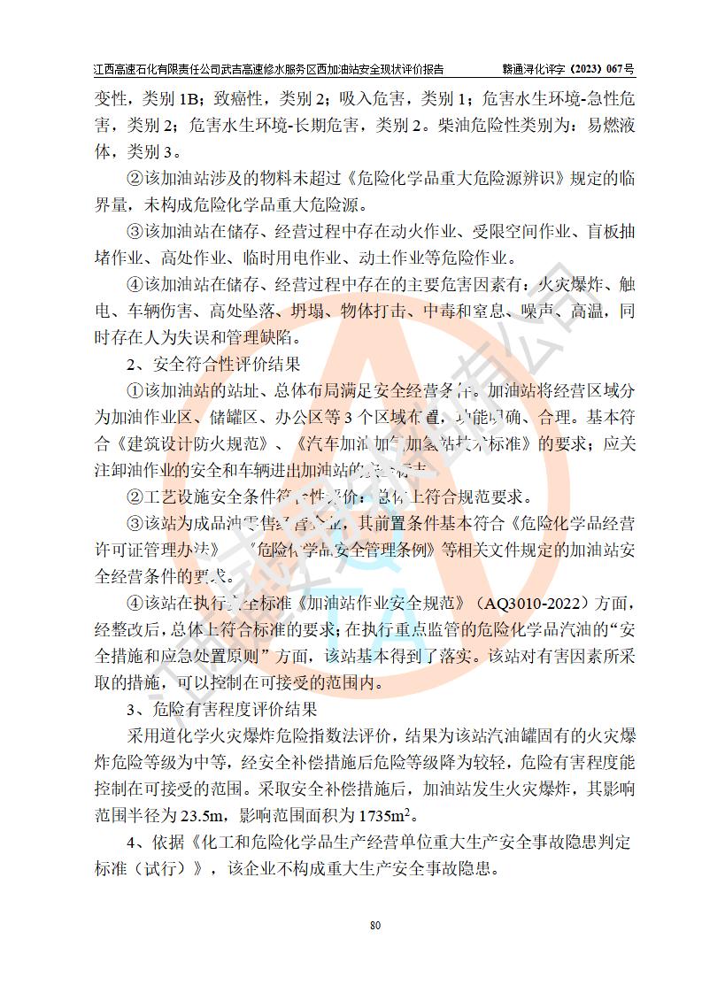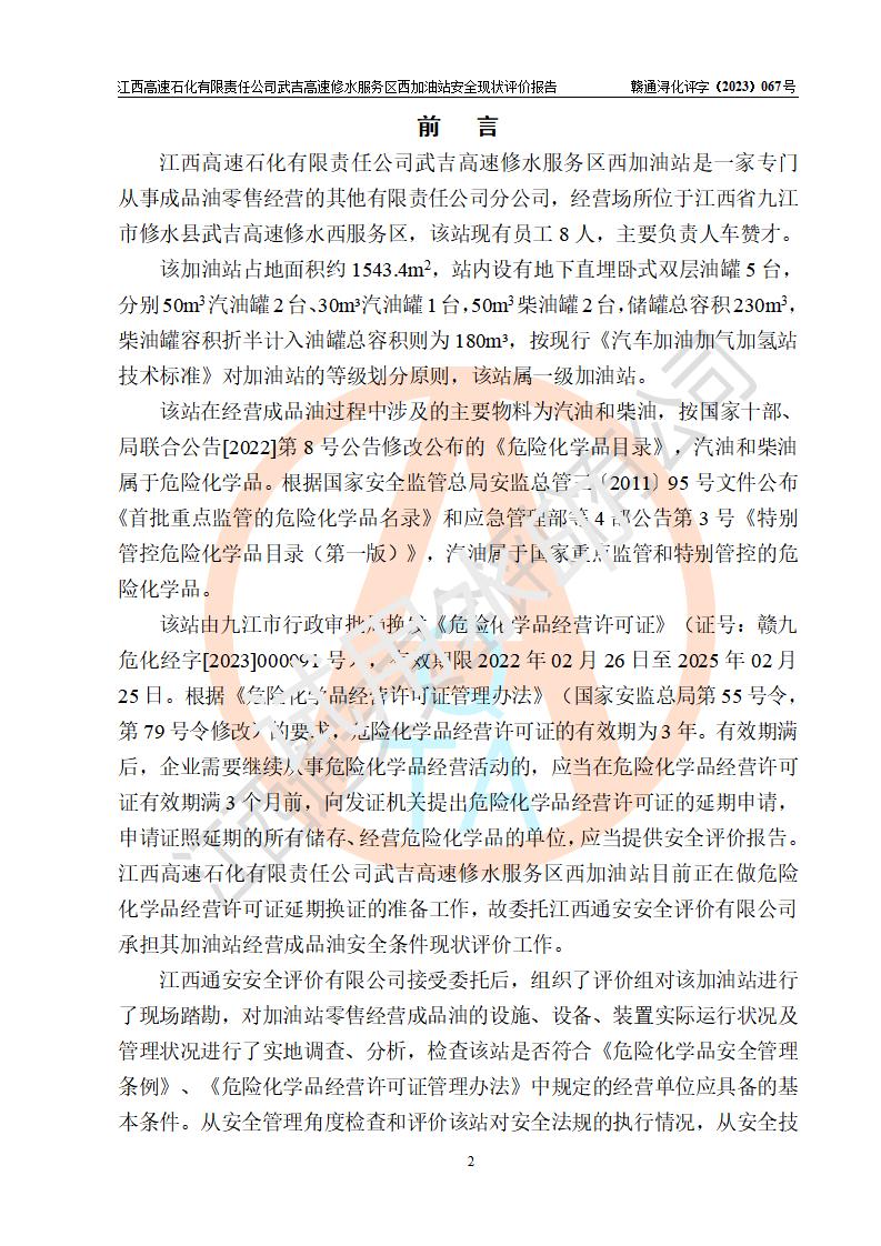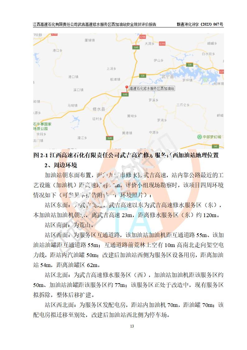 評價報告名稱 | 江西高速石化有限責任公司武吉高速修水服務區(qū)西加油站安全現(xiàn)狀評價報告 | |||