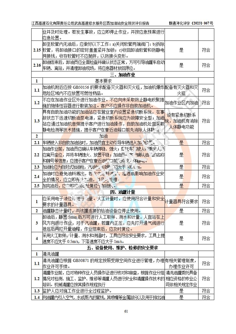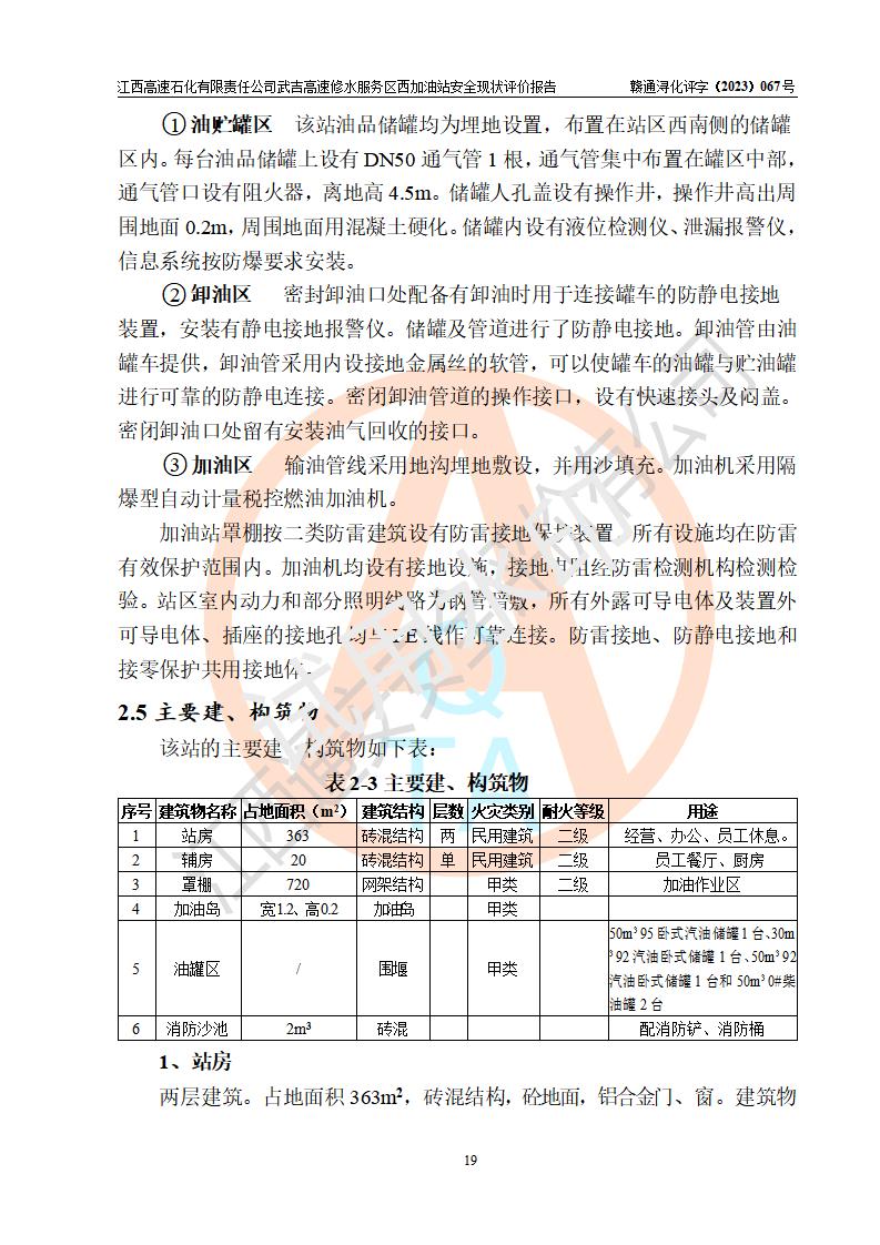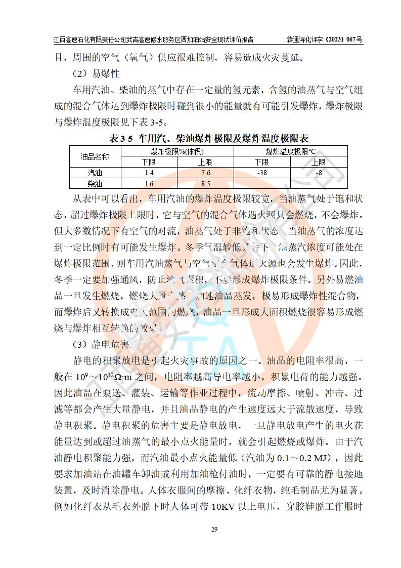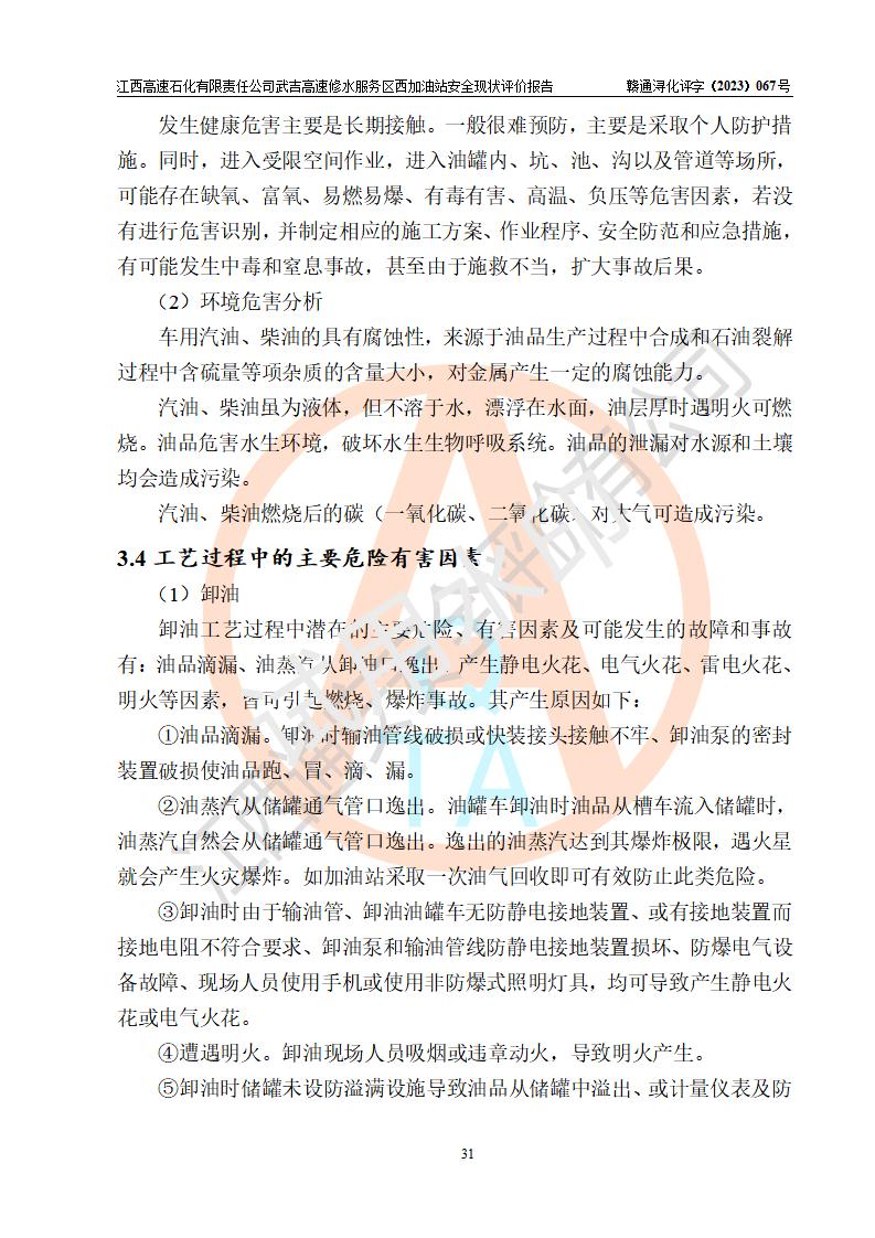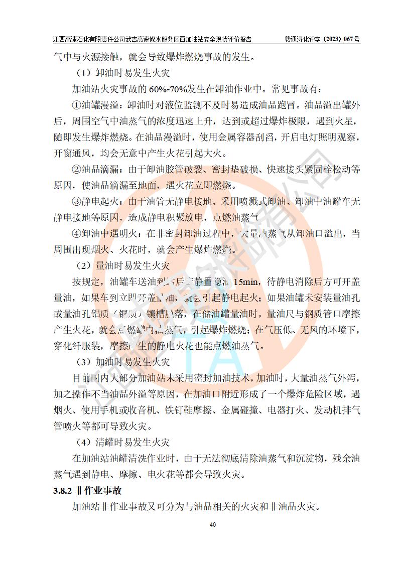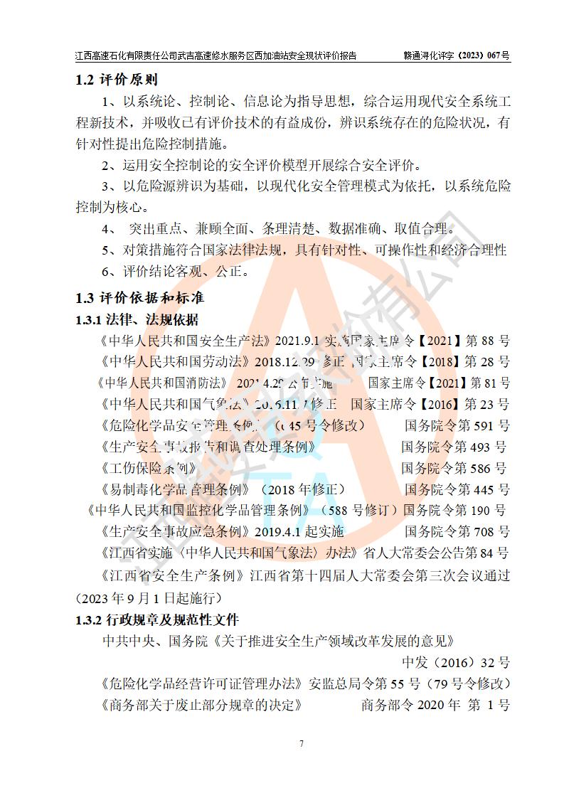 評價報告名稱 | 江西高速石化有限責任公司武吉高速修水服務區(qū)西加油站安全現(xiàn)狀評價報告 | |||