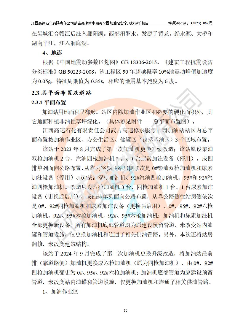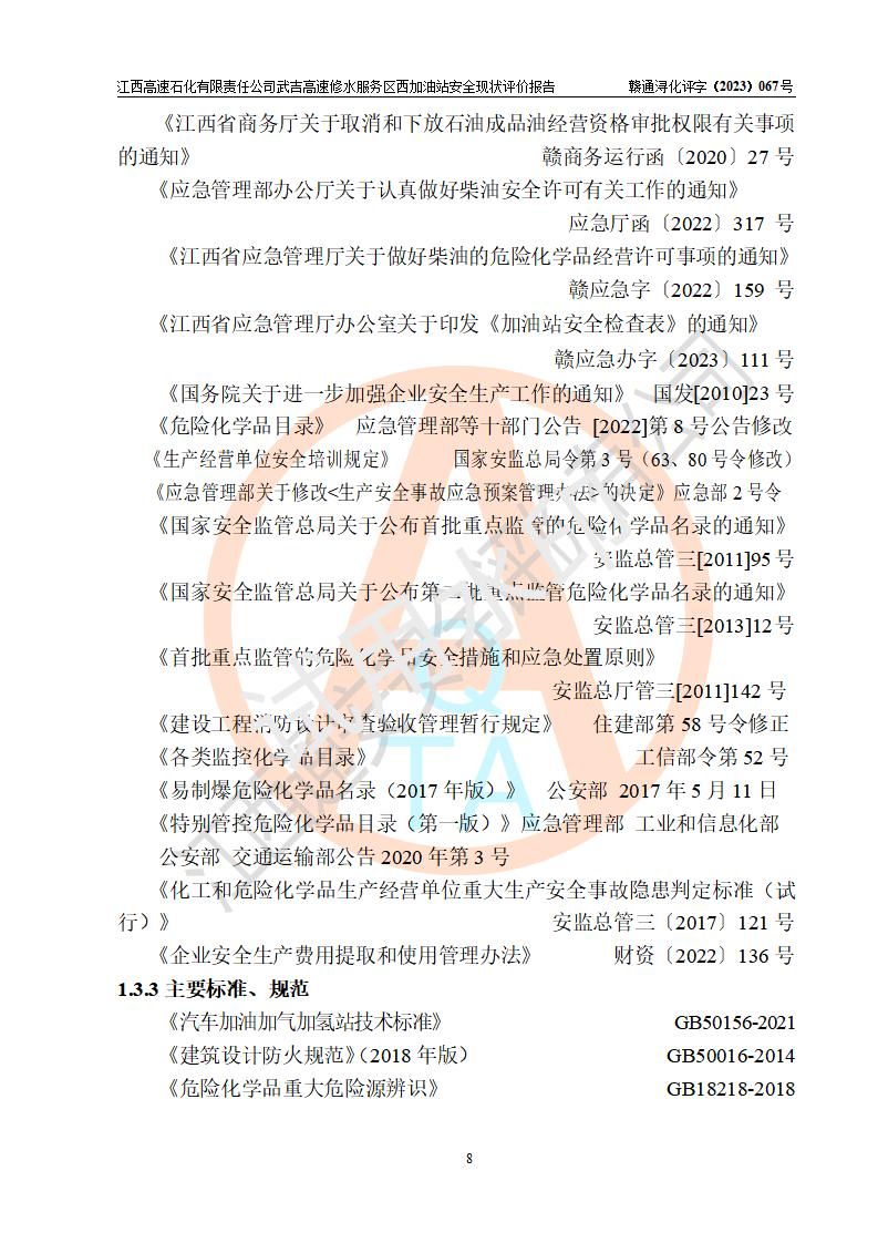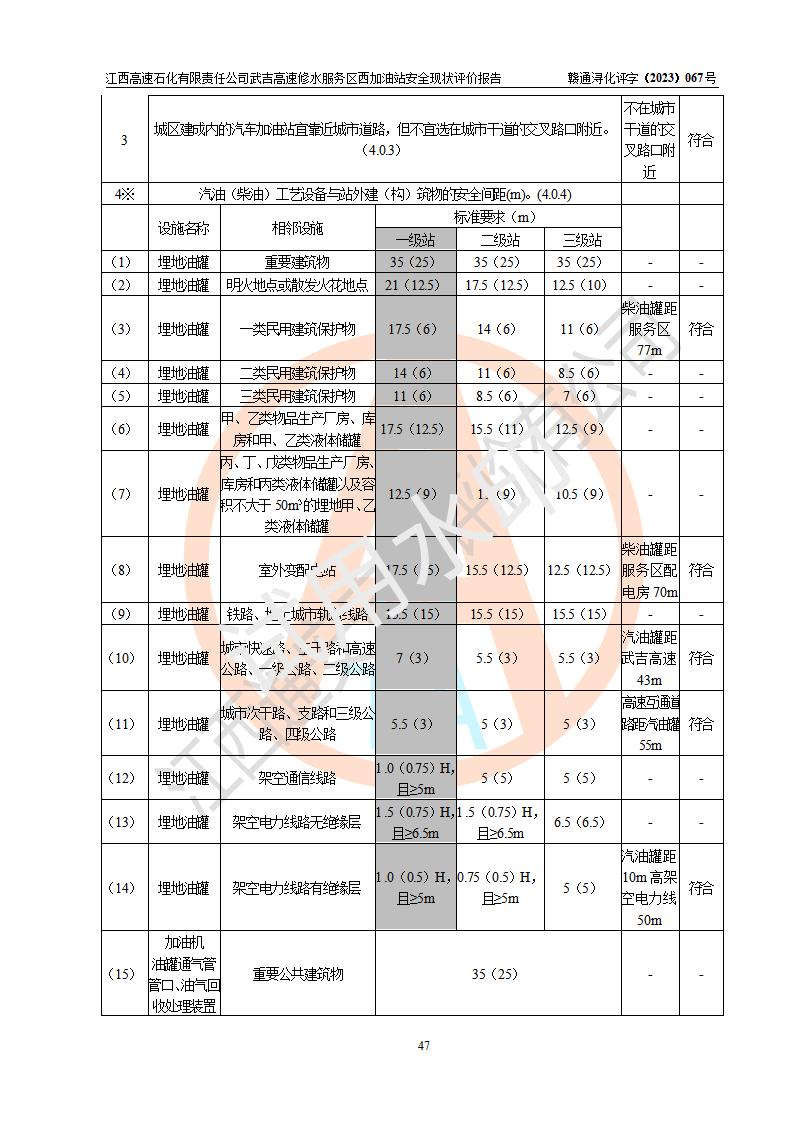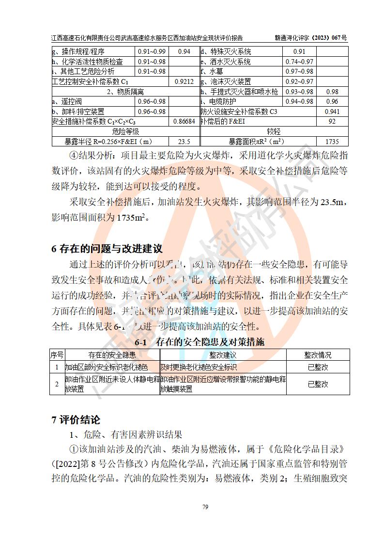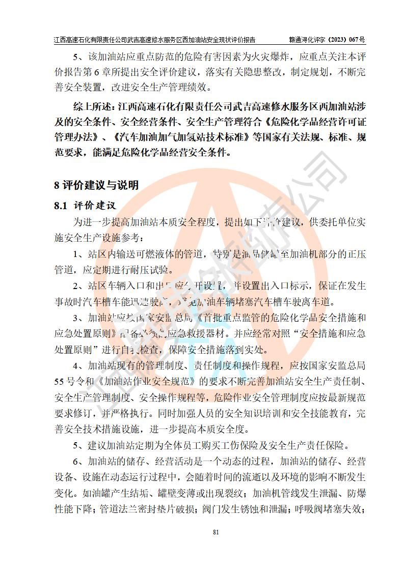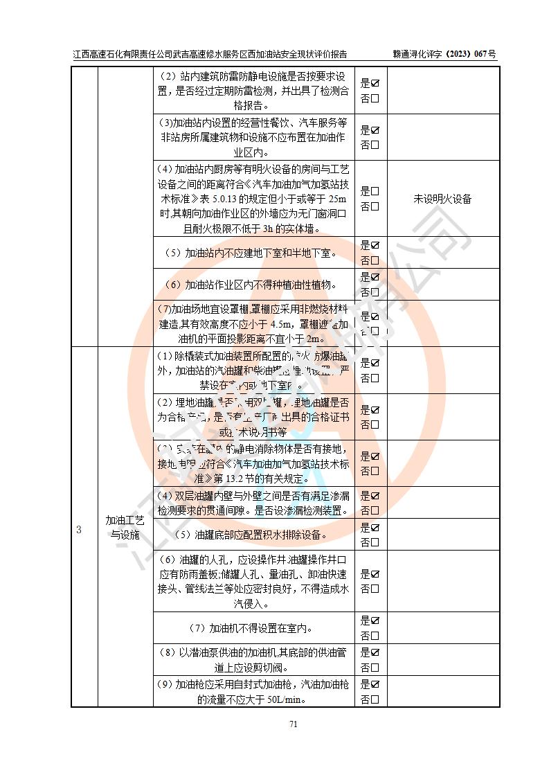 評價報告名稱 | 江西高速石化有限責任公司武吉高速修水服務區(qū)西加油站安全現(xiàn)狀評價報告 | |||