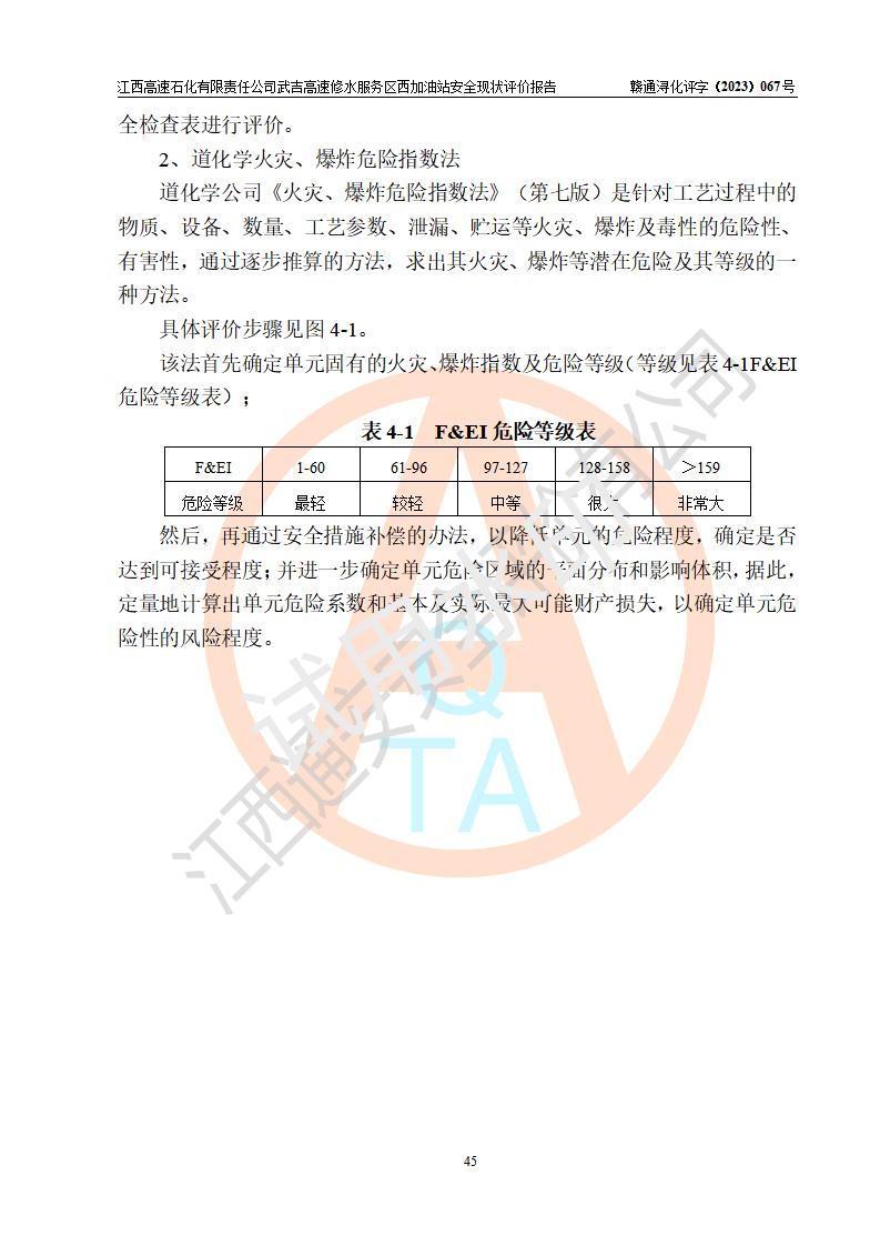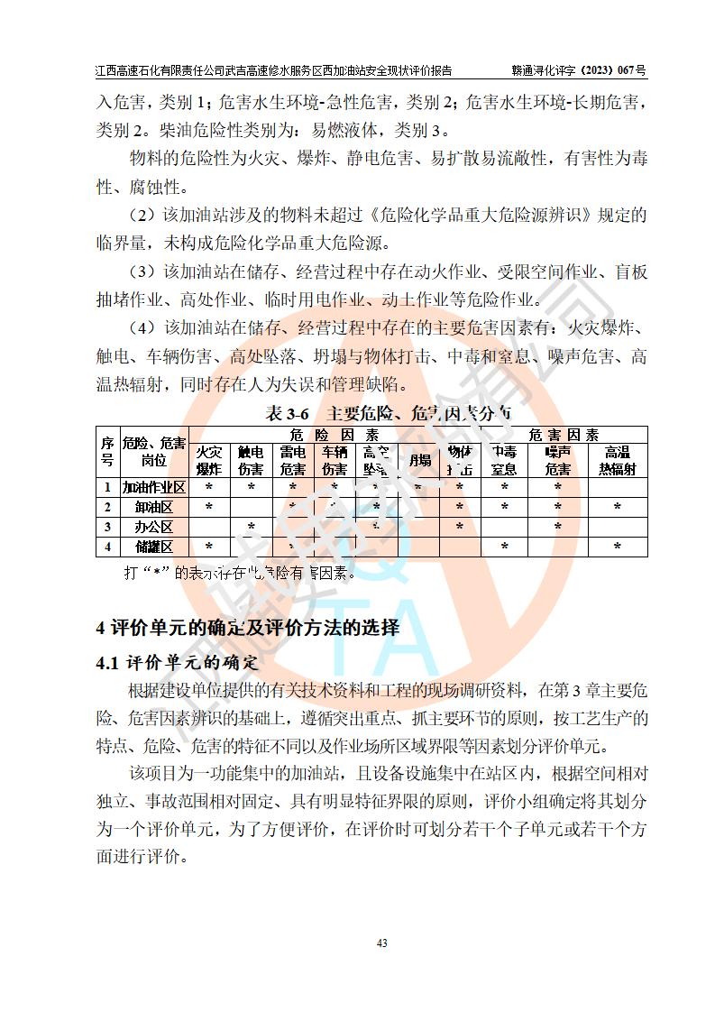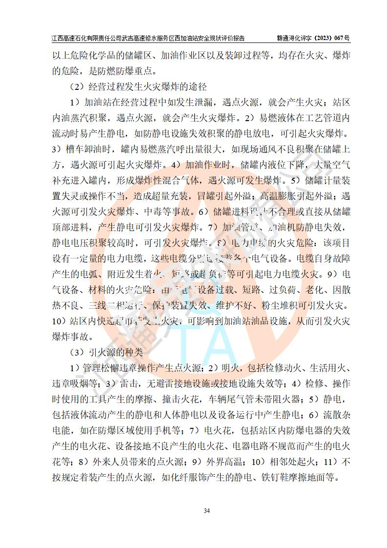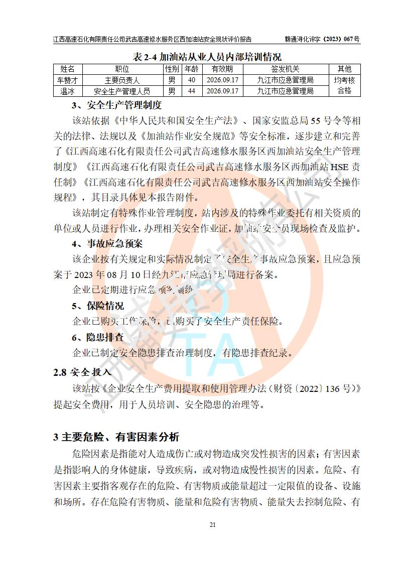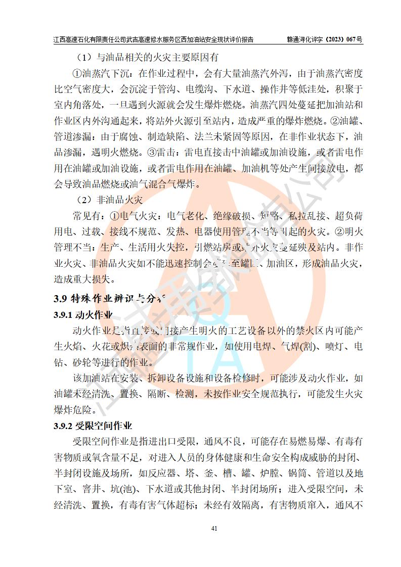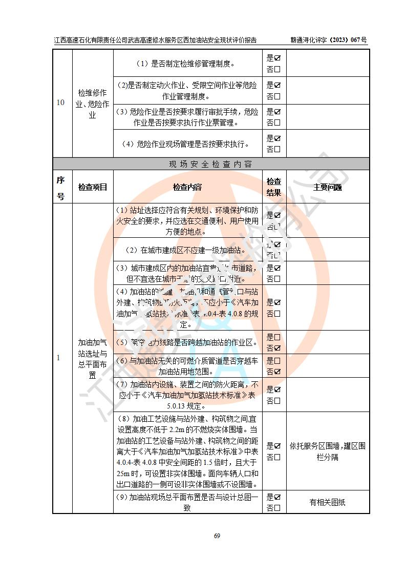 評價報告名稱 | 江西高速石化有限責任公司武吉高速修水服務區(qū)西加油站安全現(xiàn)狀評價報告 | |||
