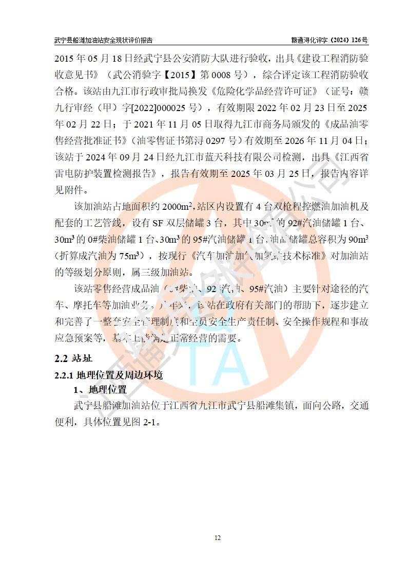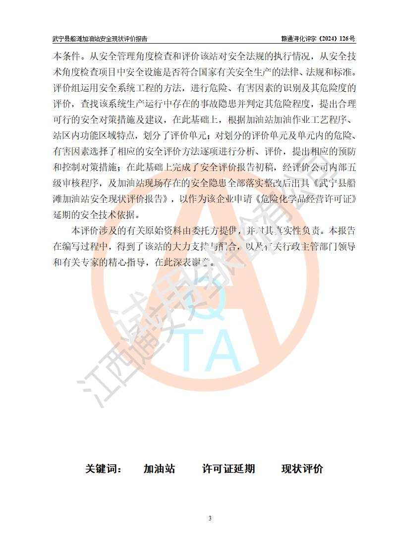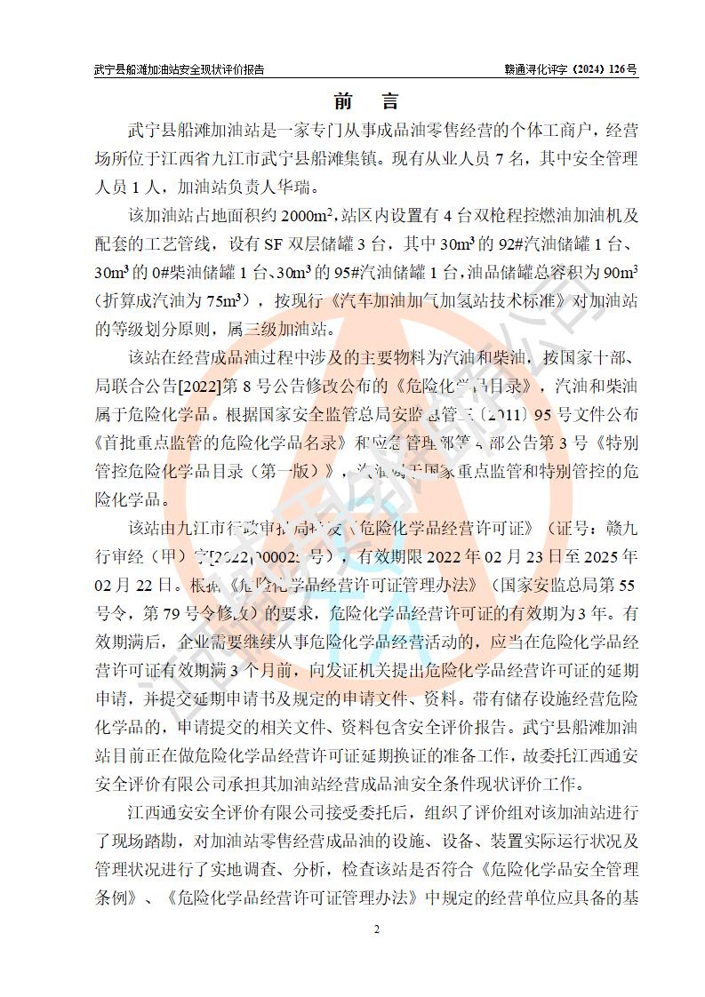 評價(jià)報(bào)告名稱 | 武寧縣船灘加油站安全現(xiàn)狀評價(jià)報(bào)告 | |||