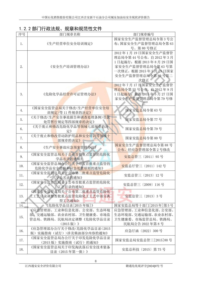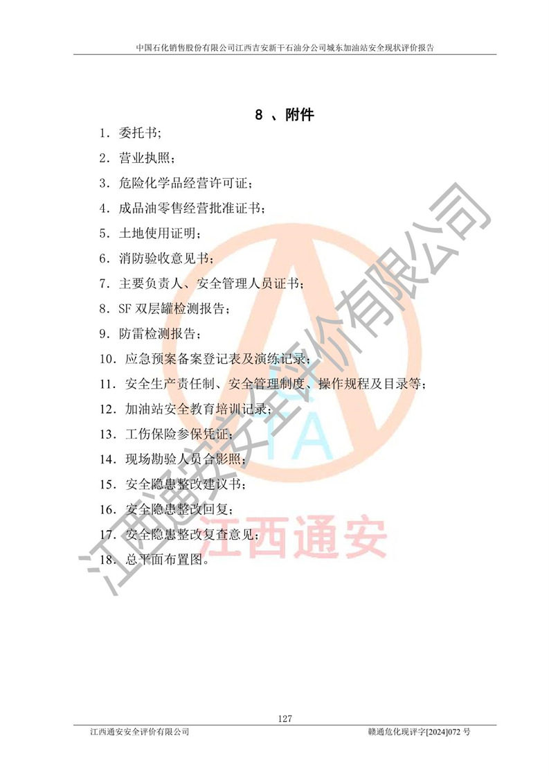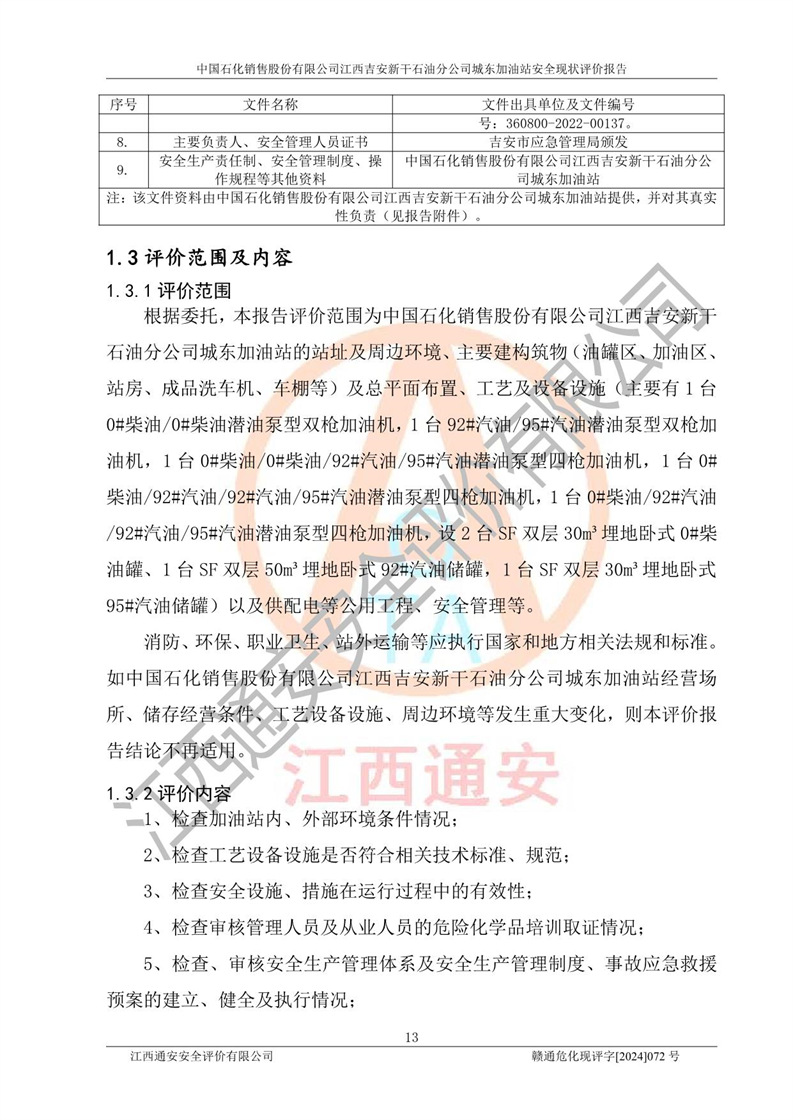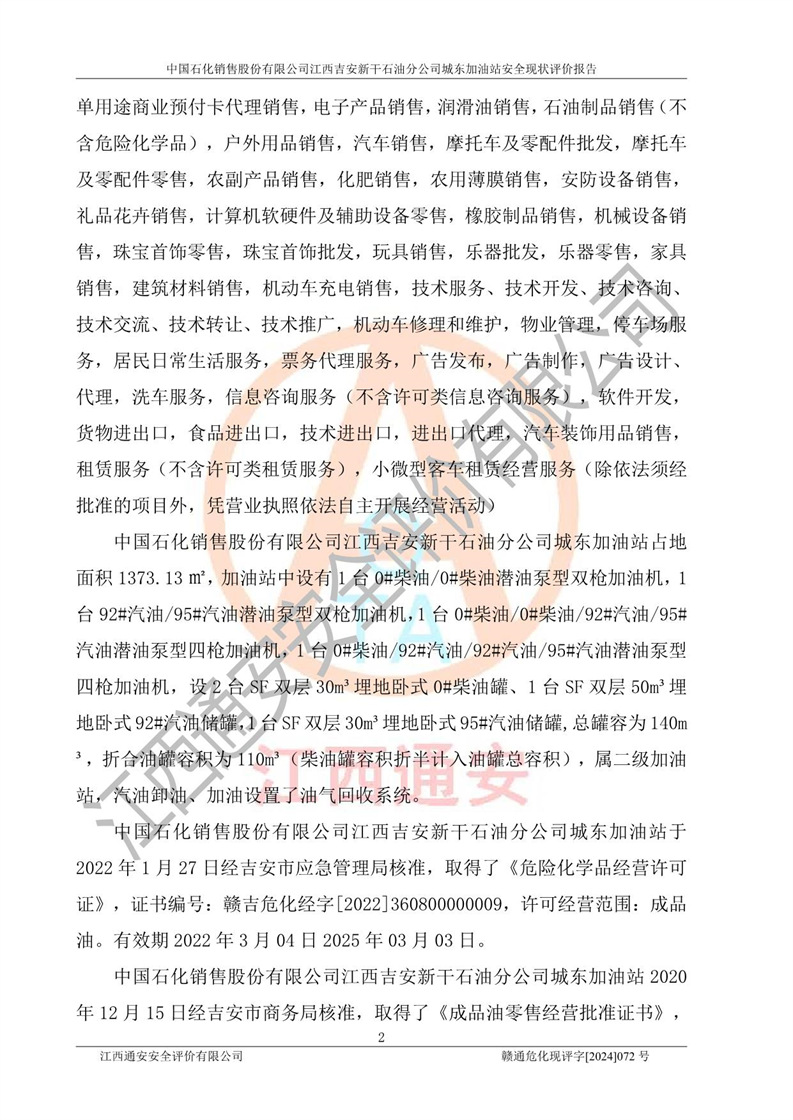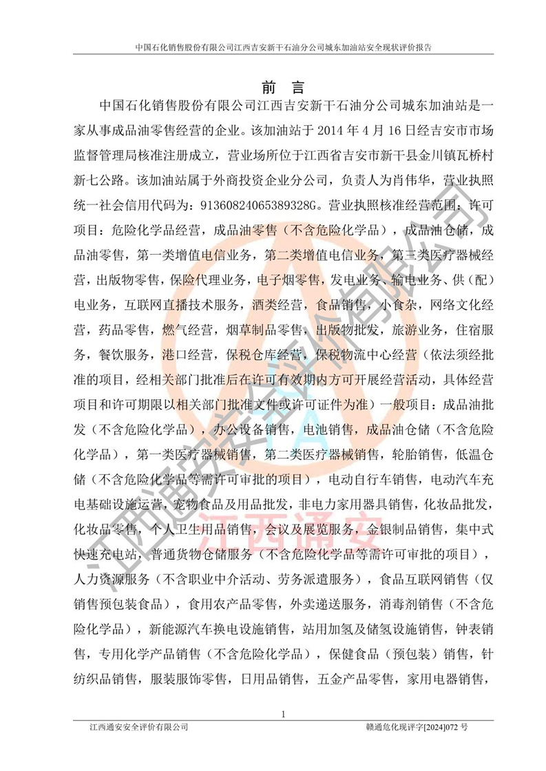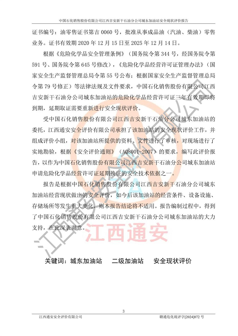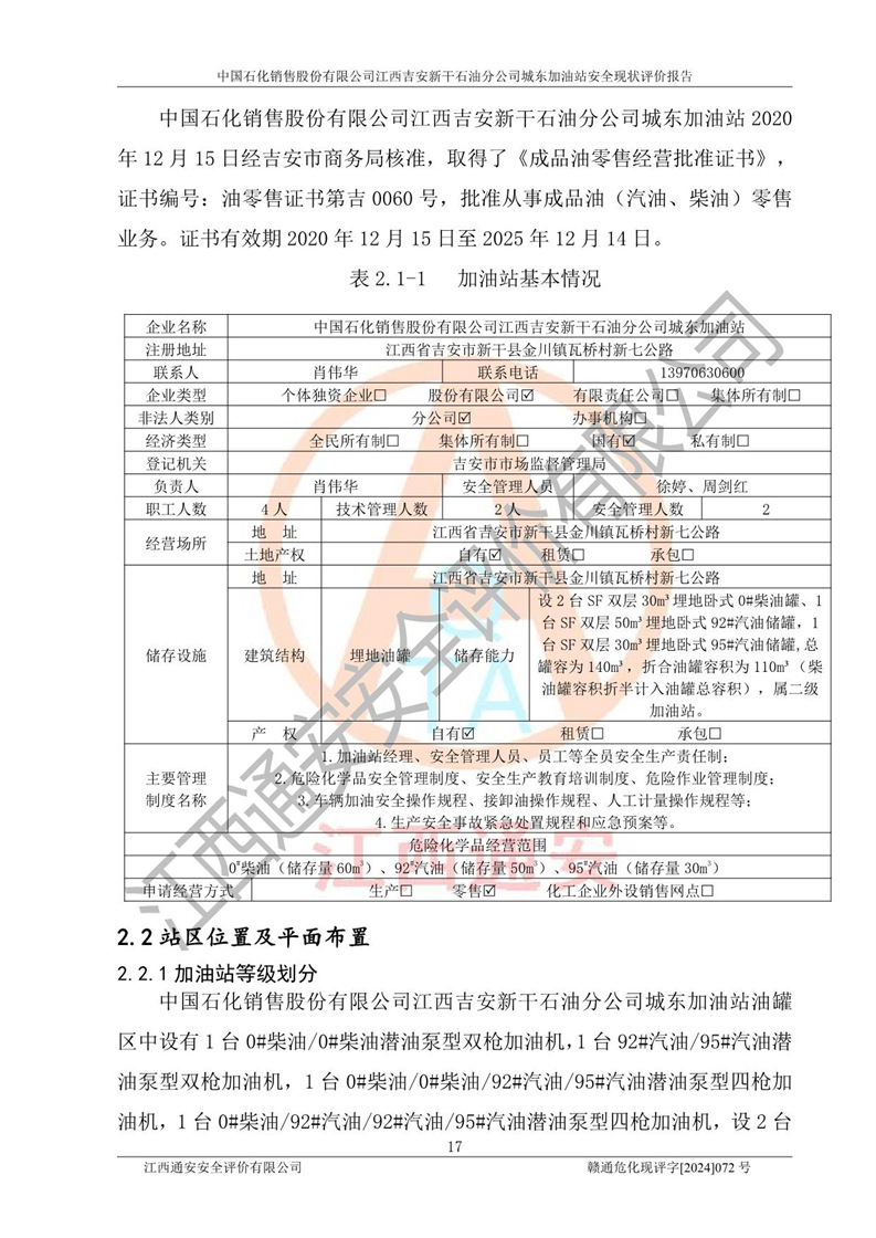 評(píng)價(jià)報(bào)告名稱 | 中國石化銷售股份有限公司江西吉安新干石油分公司城東加油站安全現(xiàn)狀評(píng)價(jià)報(bào)告 | |||