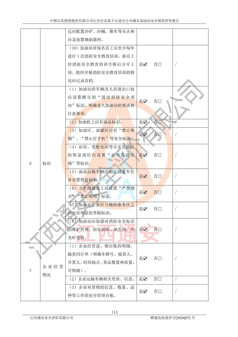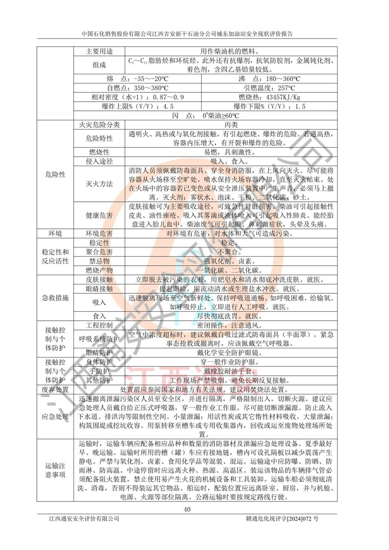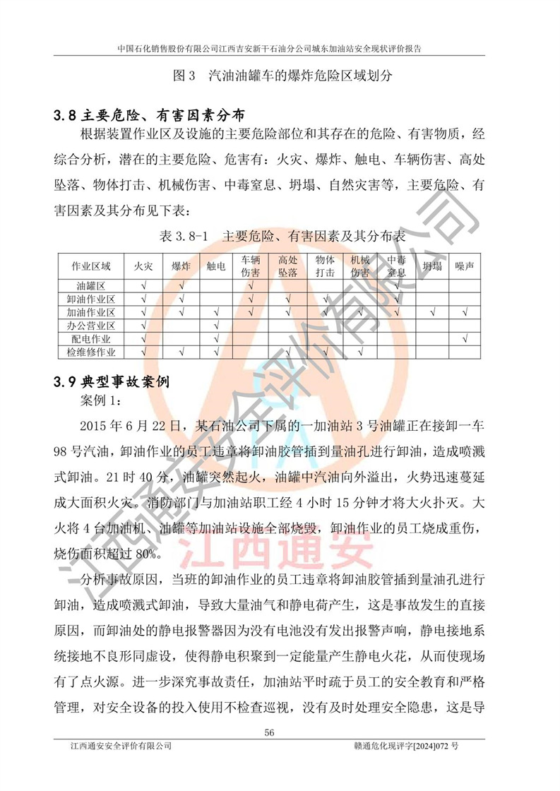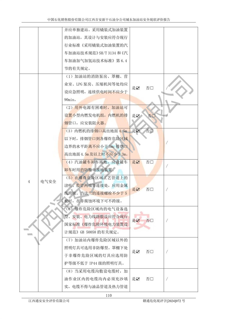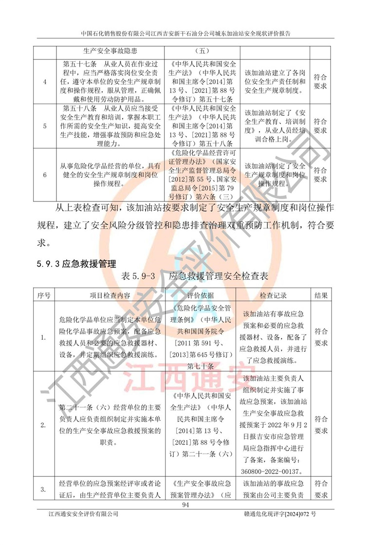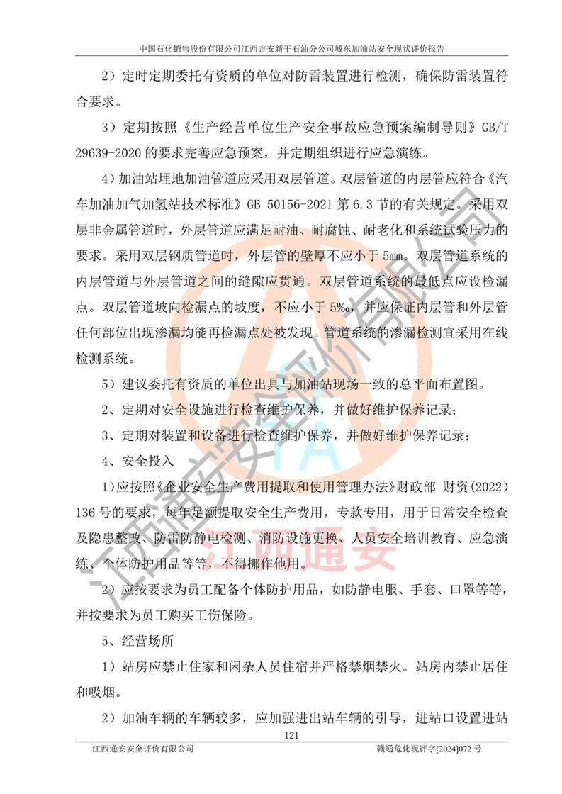 評(píng)價(jià)結(jié)論 | 中國石化銷售股份有限公司江西吉安新干石油分公司城東加油站符合《汽車加油加氣加氫站技術(shù)標(biāo)準(zhǔn)》GB50156-2021等標(biāo)準(zhǔn)規(guī)范的要求,安全風(fēng)險(xiǎn)可控,滿足危險(xiǎn)化學(xué)品經(jīng)營的安全條件。 | |||