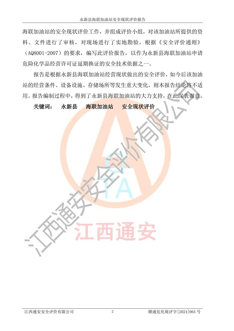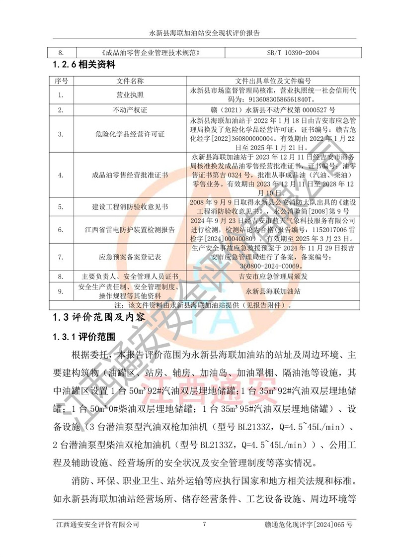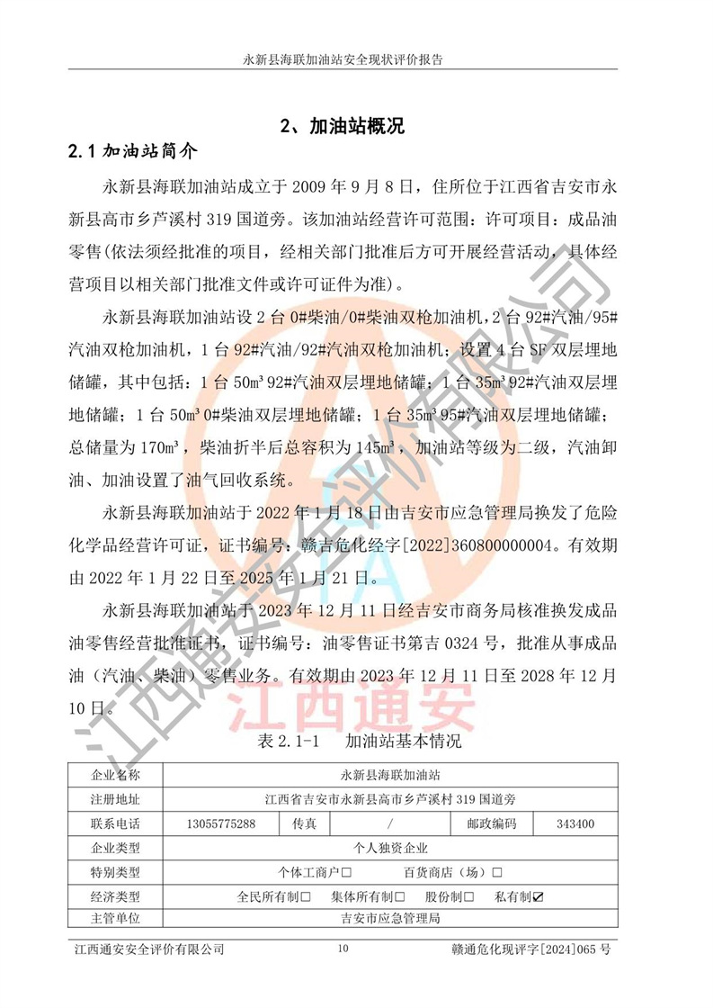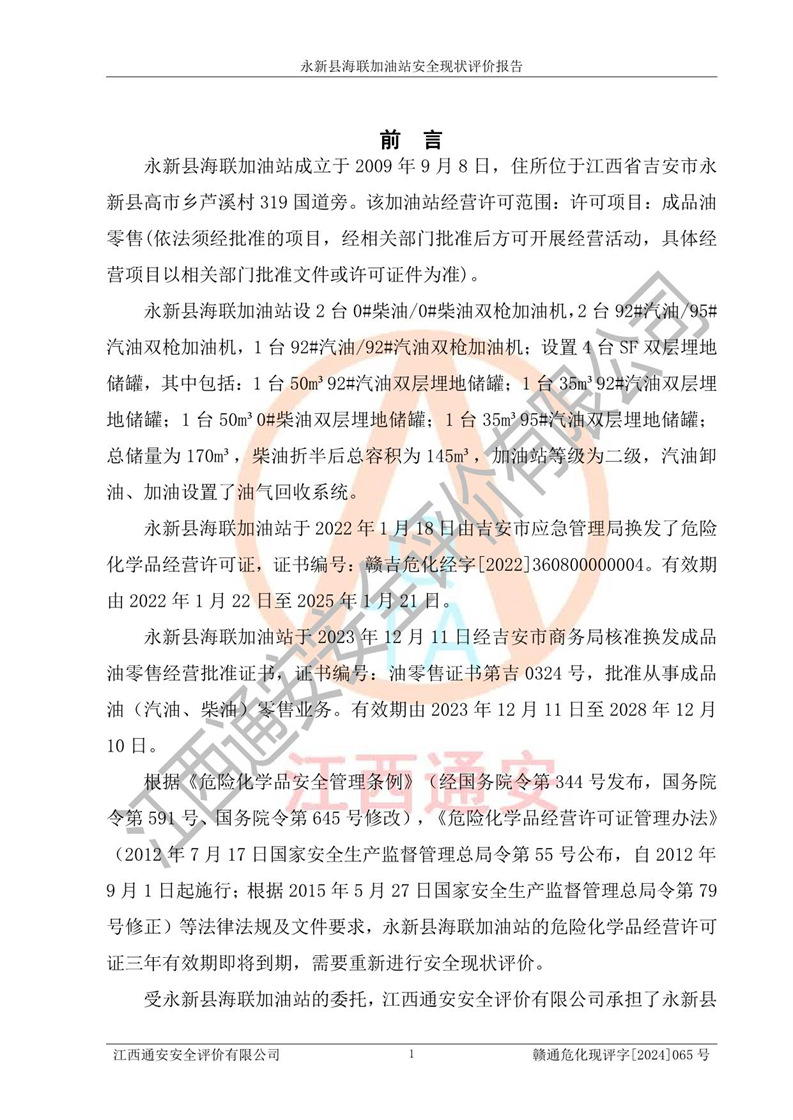 評(píng)價(jià)報(bào)告名稱 | 永新縣海聯(lián)加油站安全現(xiàn)狀評(píng)價(jià)報(bào)告 | |||