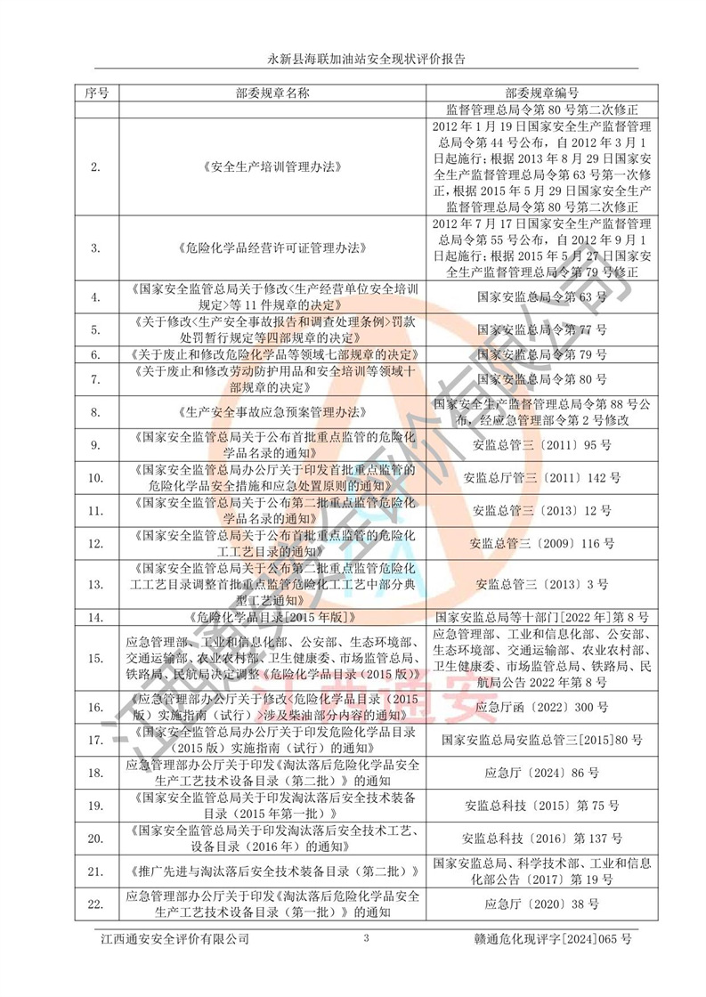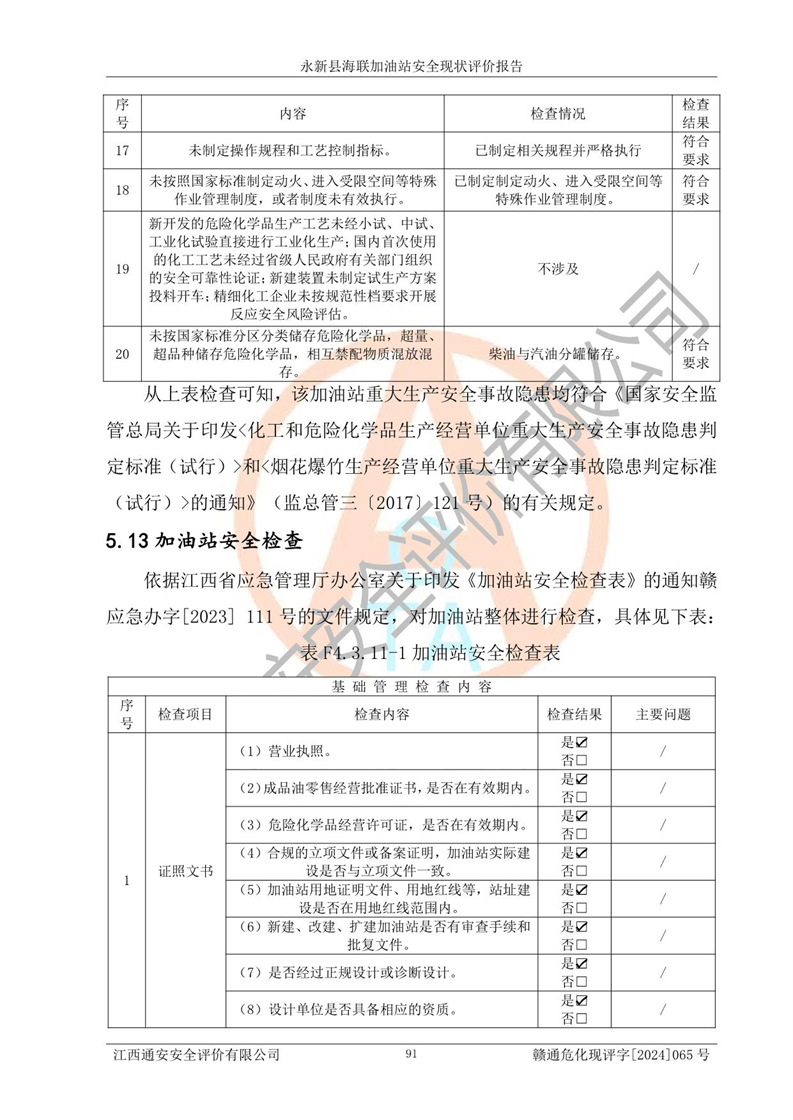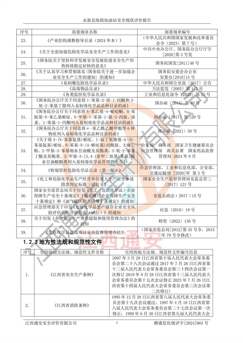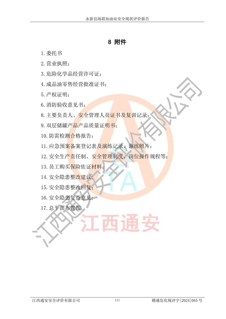 評(píng)價(jià)報(bào)告名稱 | 永新縣海聯(lián)加油站安全現(xiàn)狀評(píng)價(jià)報(bào)告 | |||