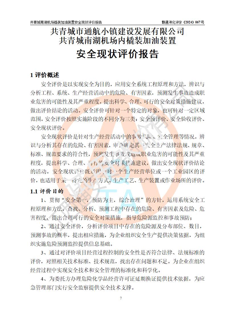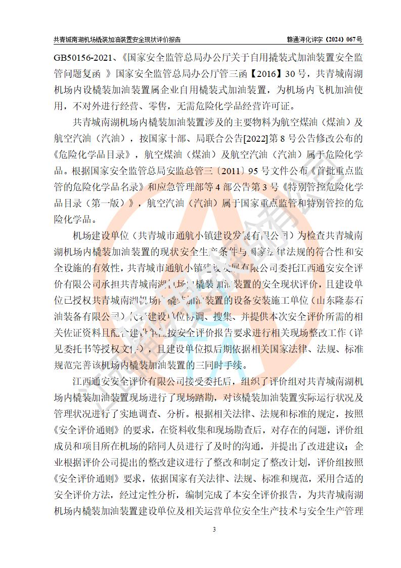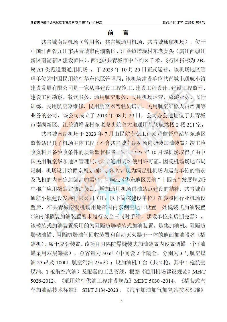評價報告名稱 | 共青城市通航小鎮(zhèn)建設(shè)發(fā)展有限公司共青城南湖機(jī)場內(nèi)橇裝加油裝置安全現(xiàn)狀評價報告 | |||