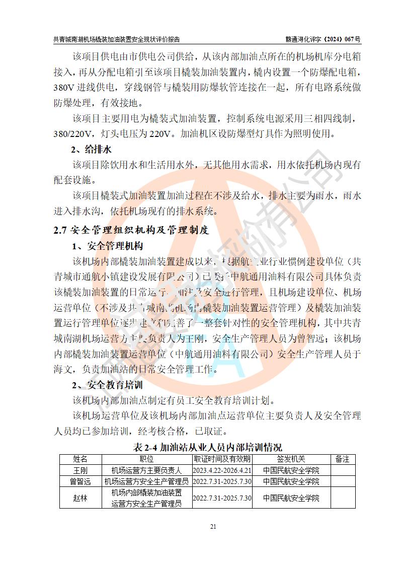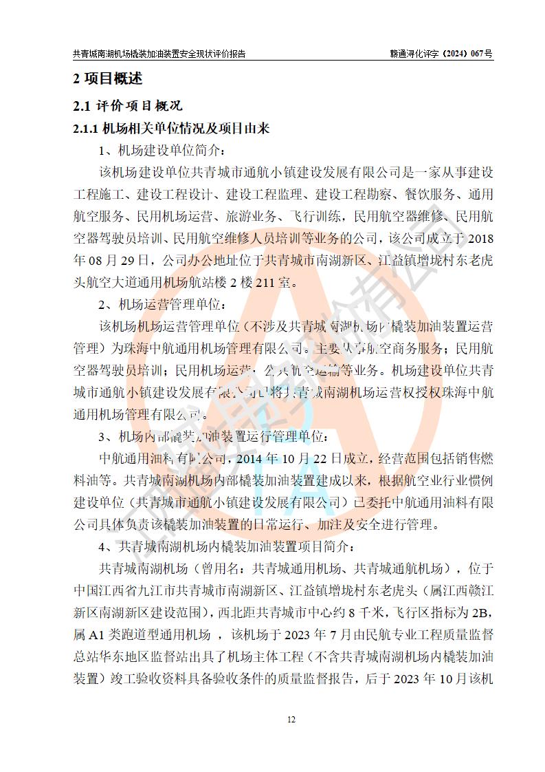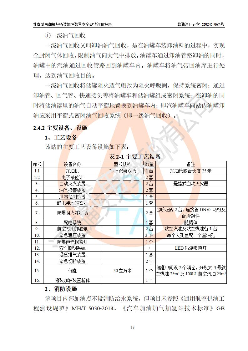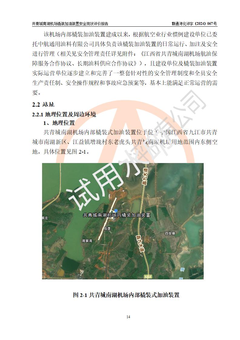 評價報告名稱 | 共青城市通航小鎮(zhèn)建設(shè)發(fā)展有限公司共青城南湖機(jī)場內(nèi)橇裝加油裝置安全現(xiàn)狀評價報告 | |||