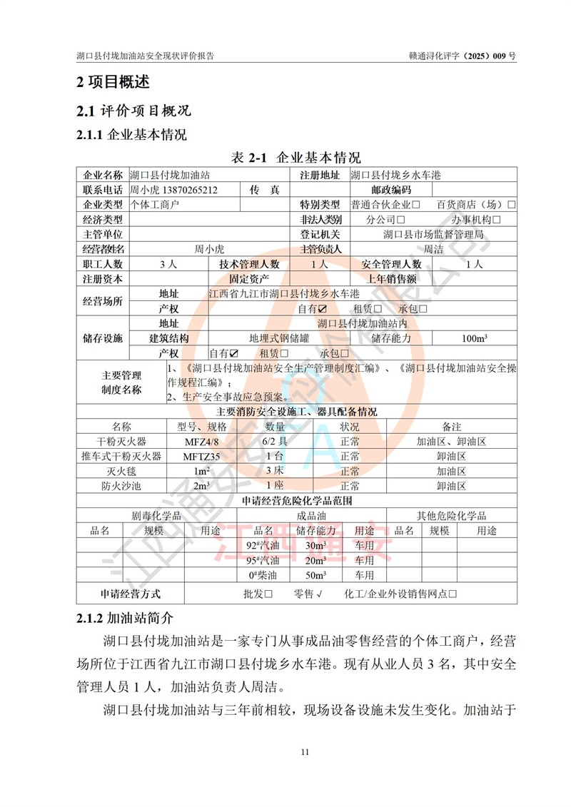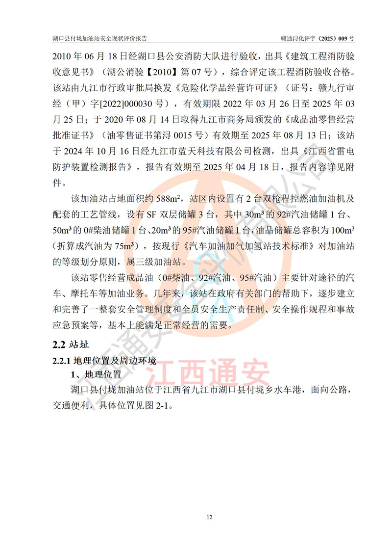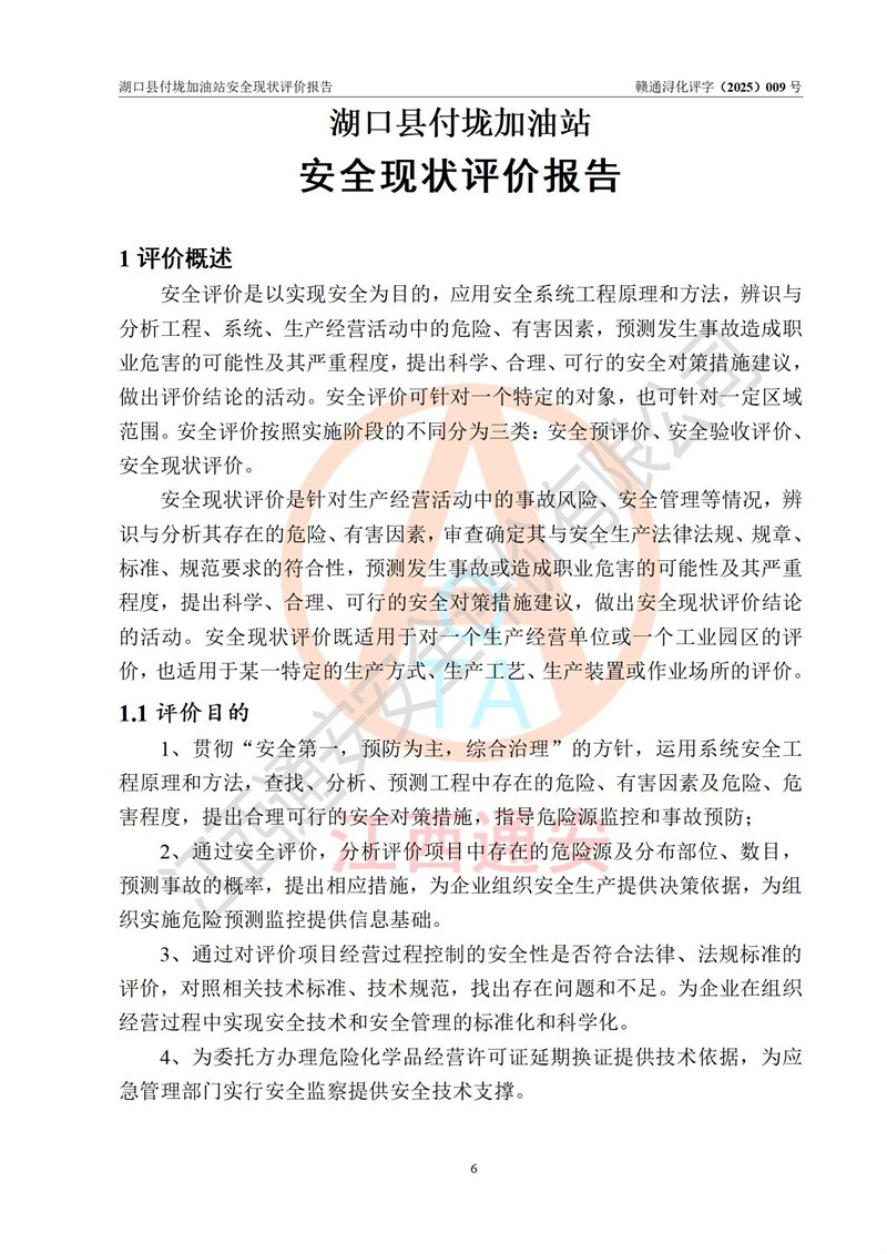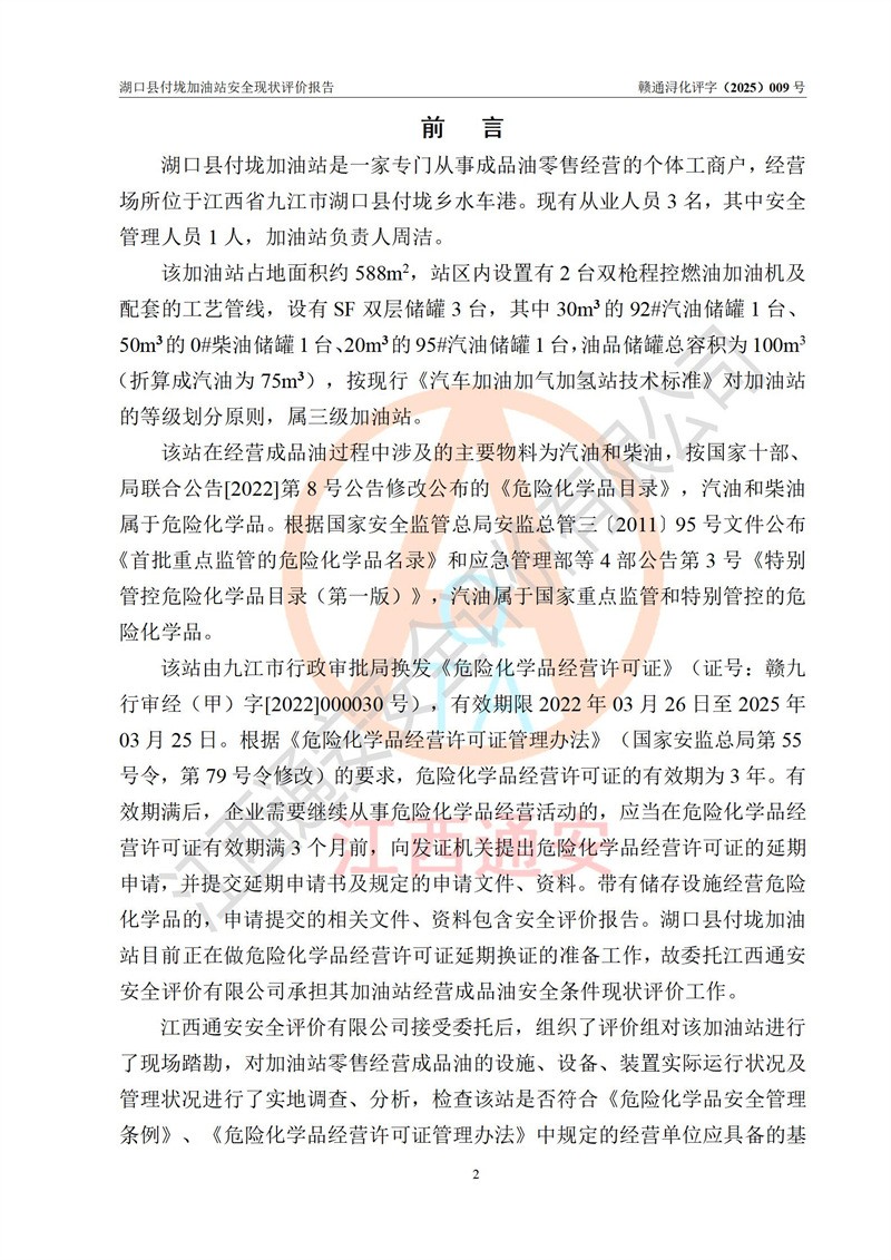 評價(jià)報(bào)告名稱 | 湖口縣付垅加油站安全現(xiàn)狀評價(jià)報(bào)告 | |||