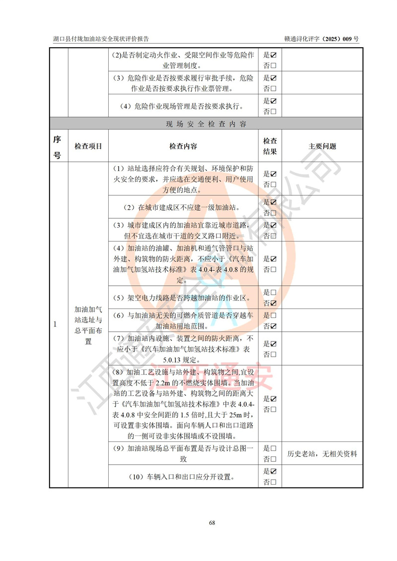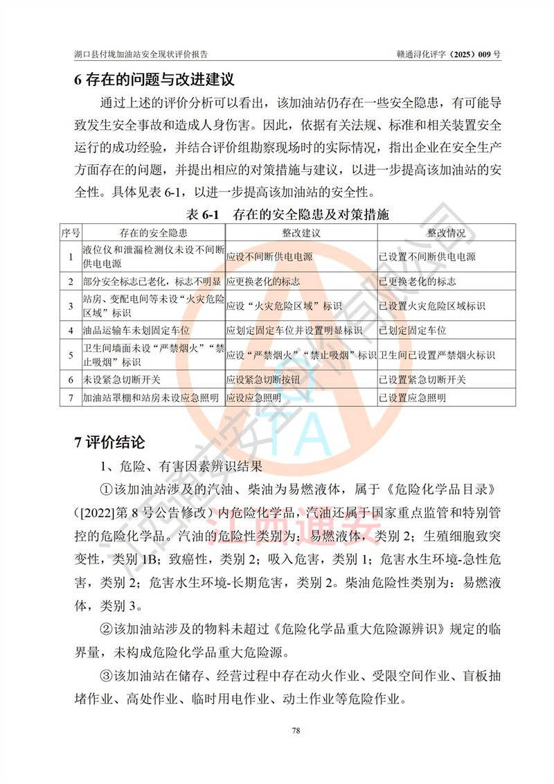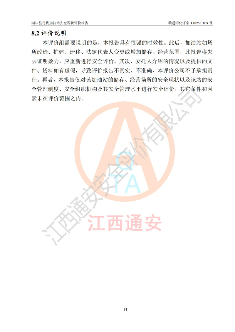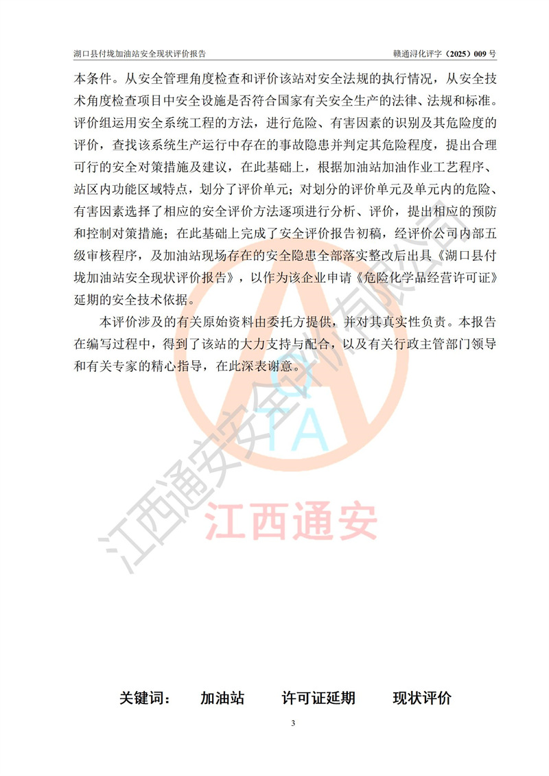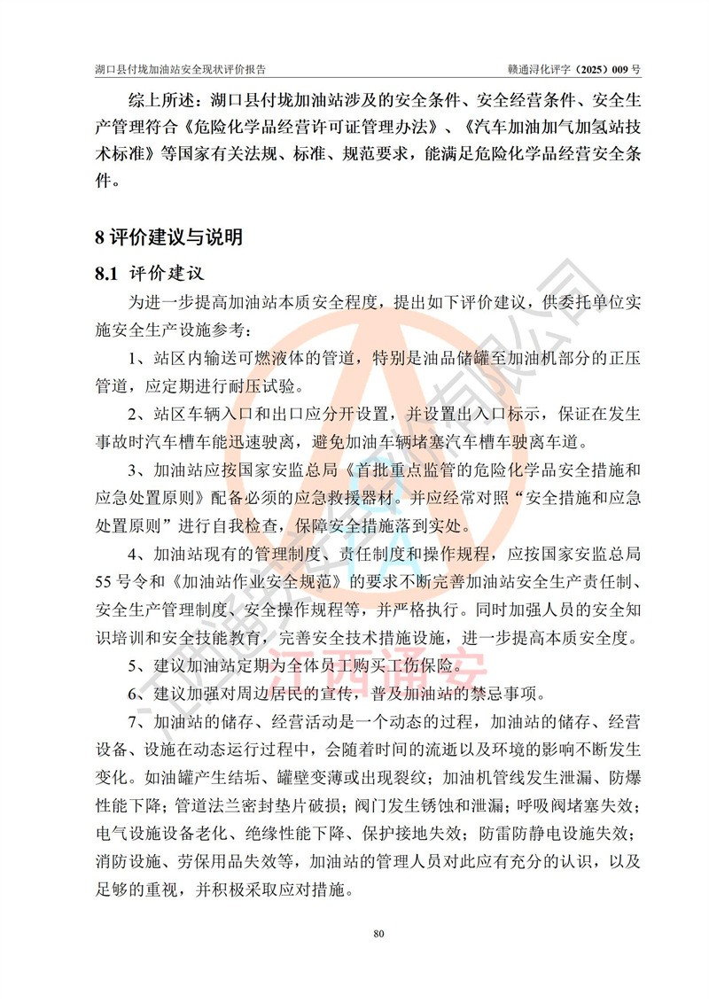 評價(jià)報(bào)告名稱 | 湖口縣付垅加油站安全現(xiàn)狀評價(jià)報(bào)告 | |||