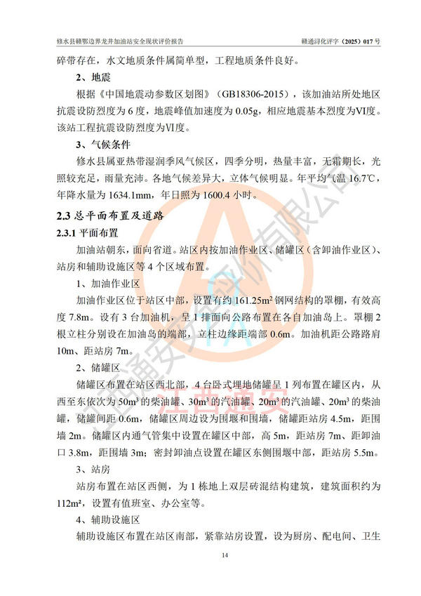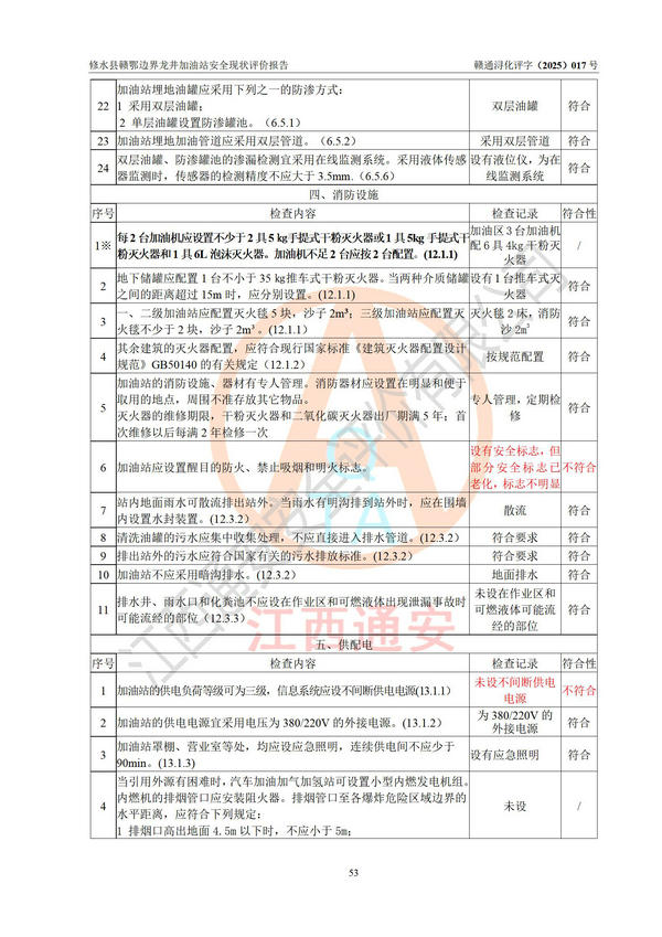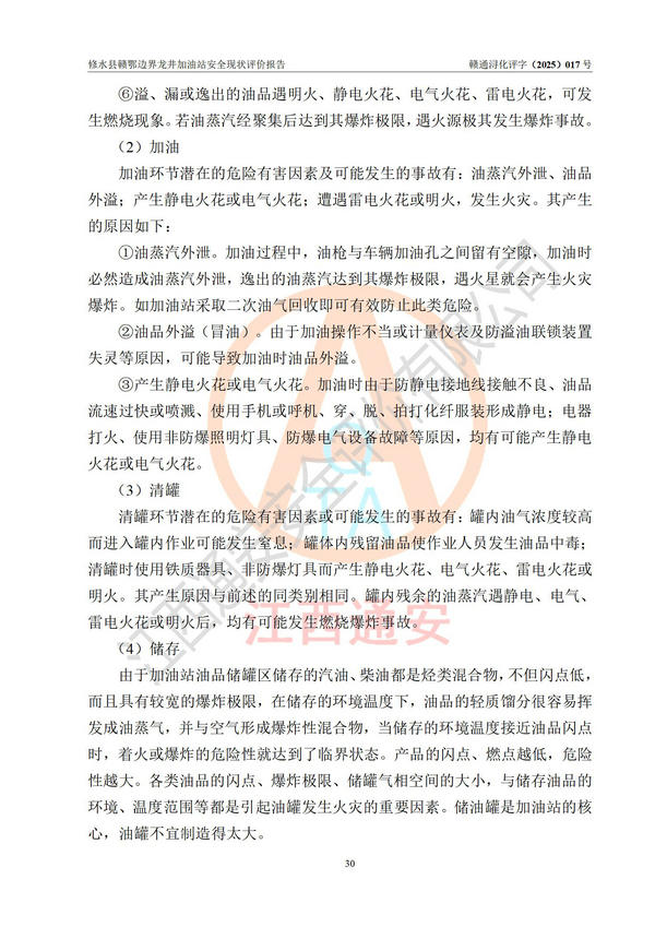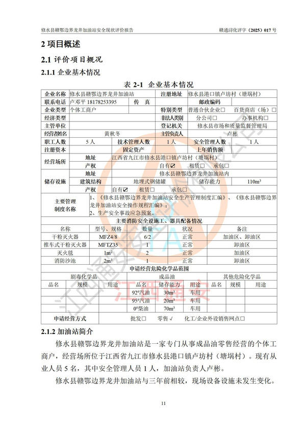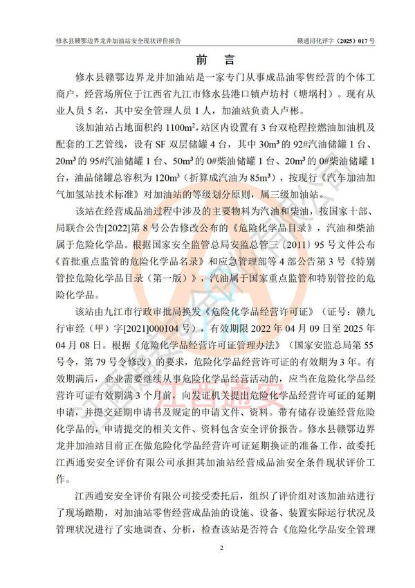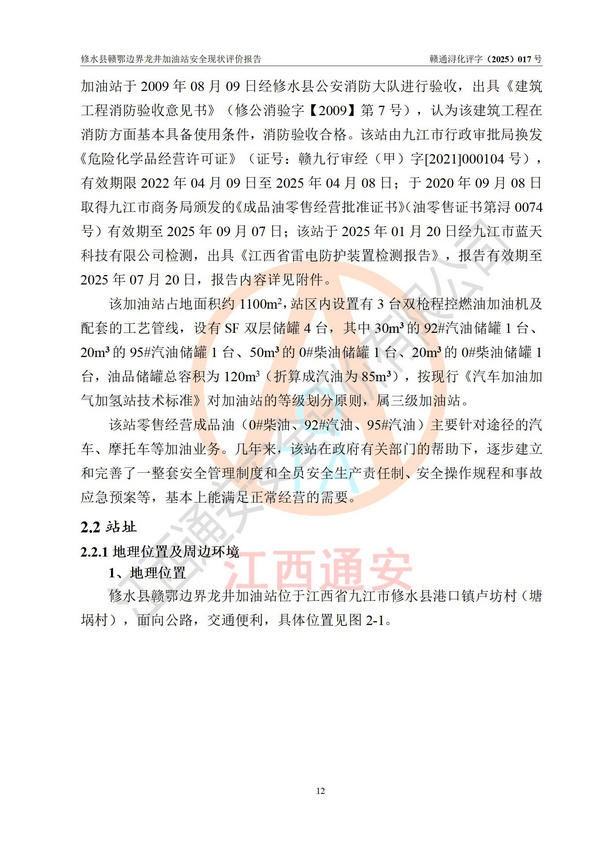 評價報告名稱 | 修水縣贛鄂邊界龍井加油站安全現(xiàn)狀評價報告 | |||