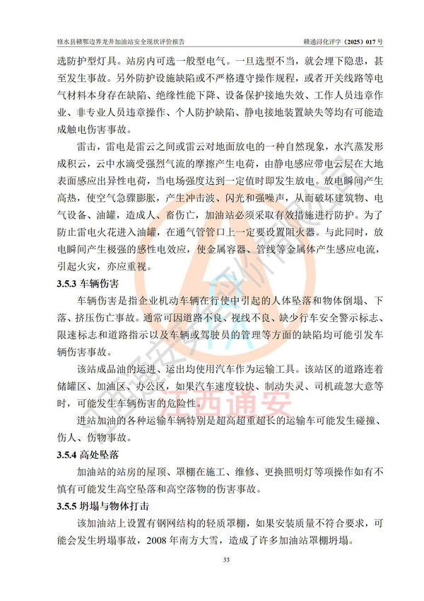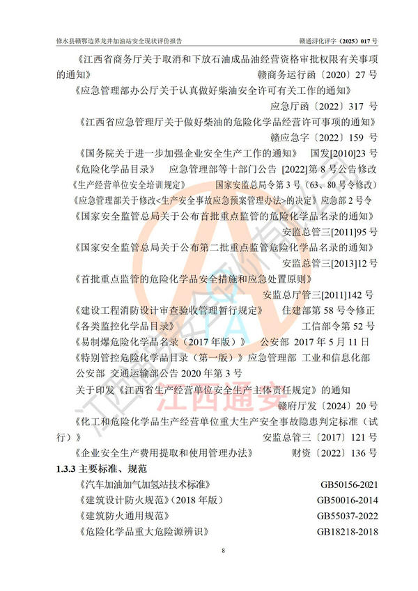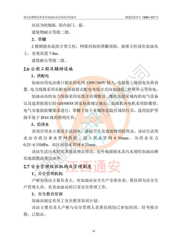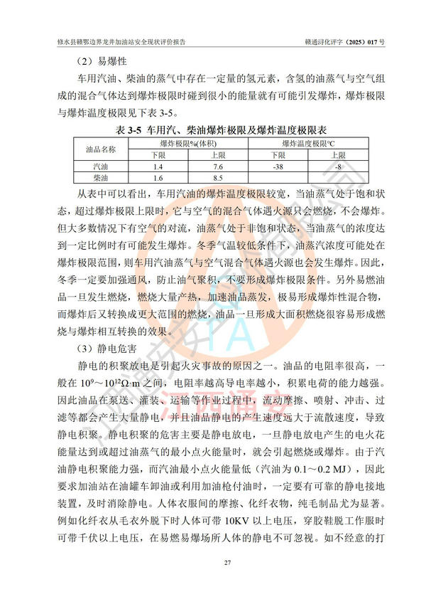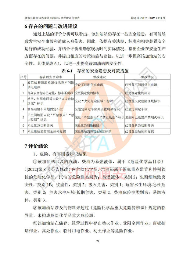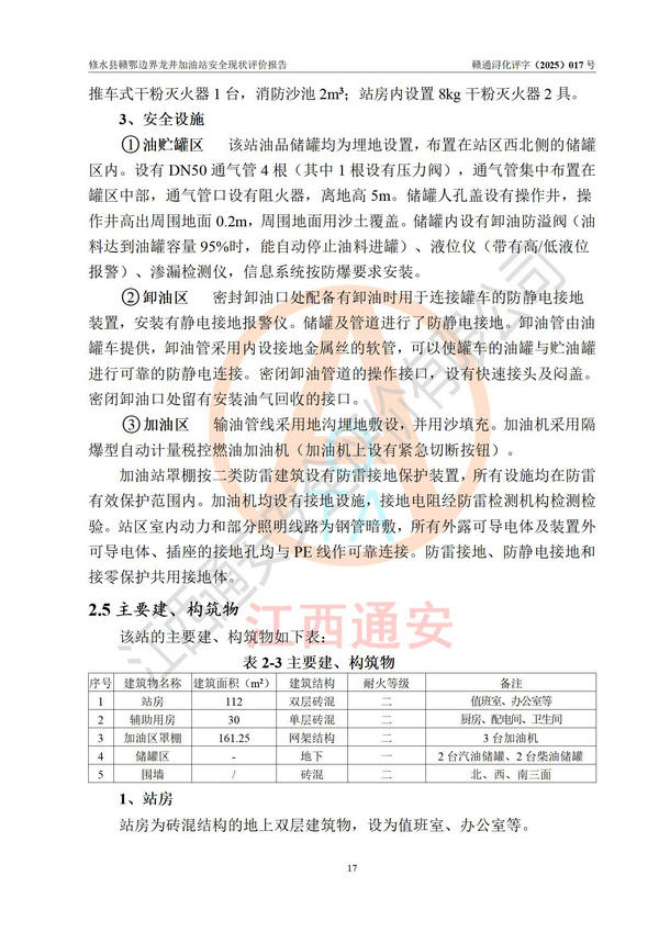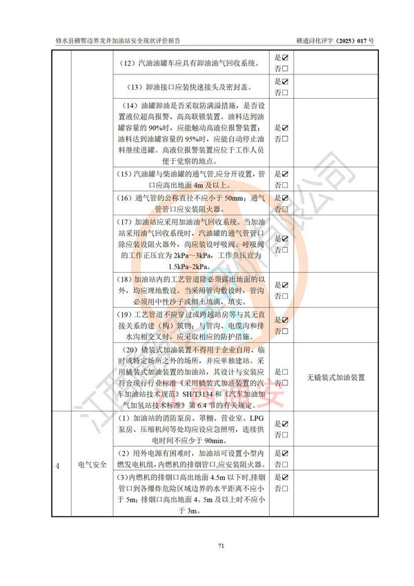 評價報告名稱 | 修水縣贛鄂邊界龍井加油站安全現(xiàn)狀評價報告 | |||