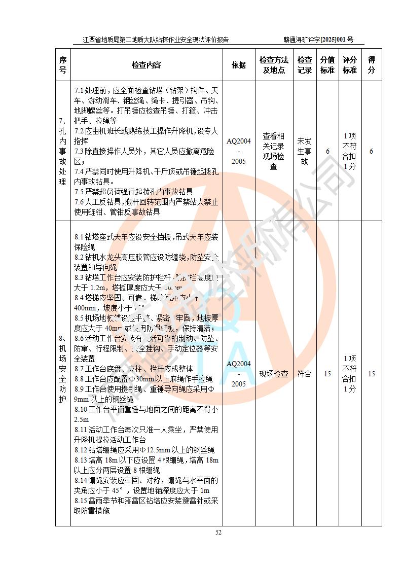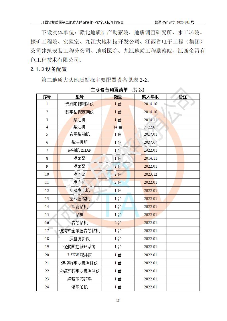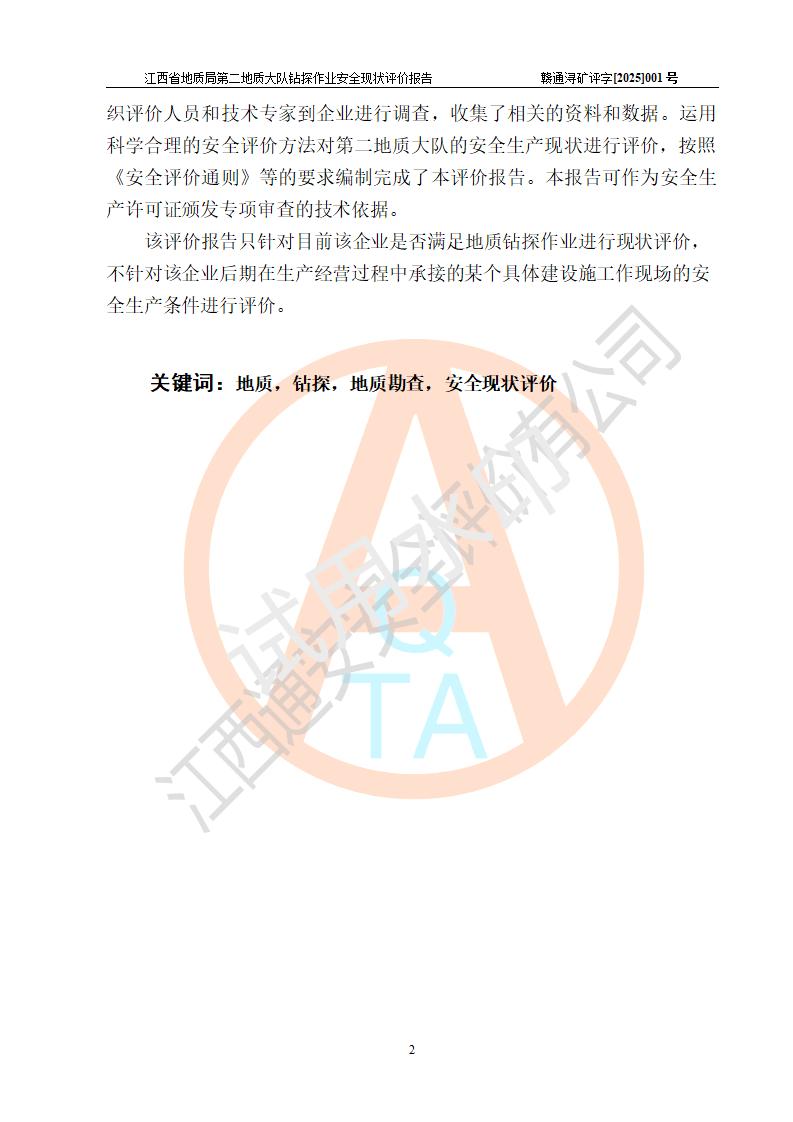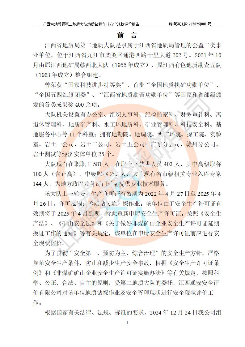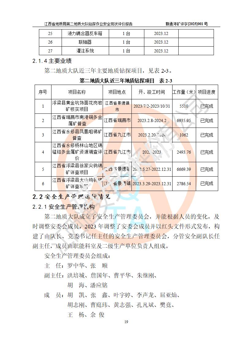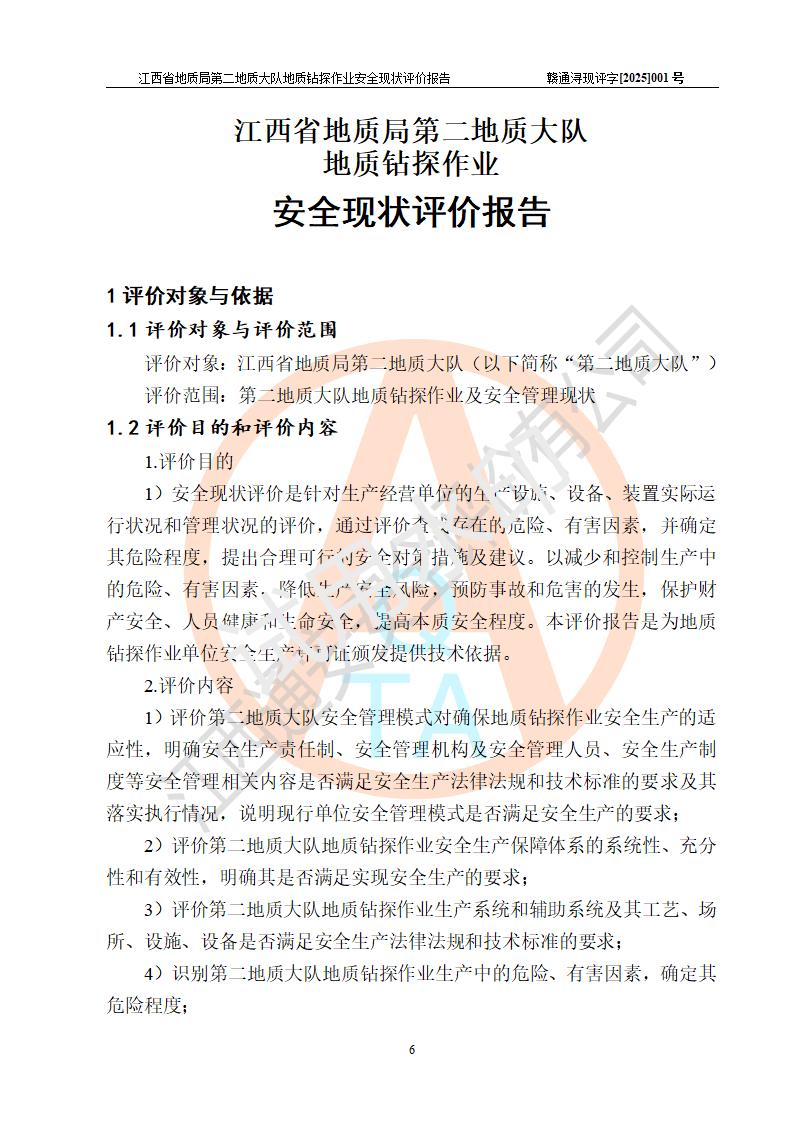 報告名稱 | 江西省地質(zhì)局第二地質(zhì)大隊地質(zhì)鉆探作業(yè)安全現(xiàn)狀評價報告 | |||||