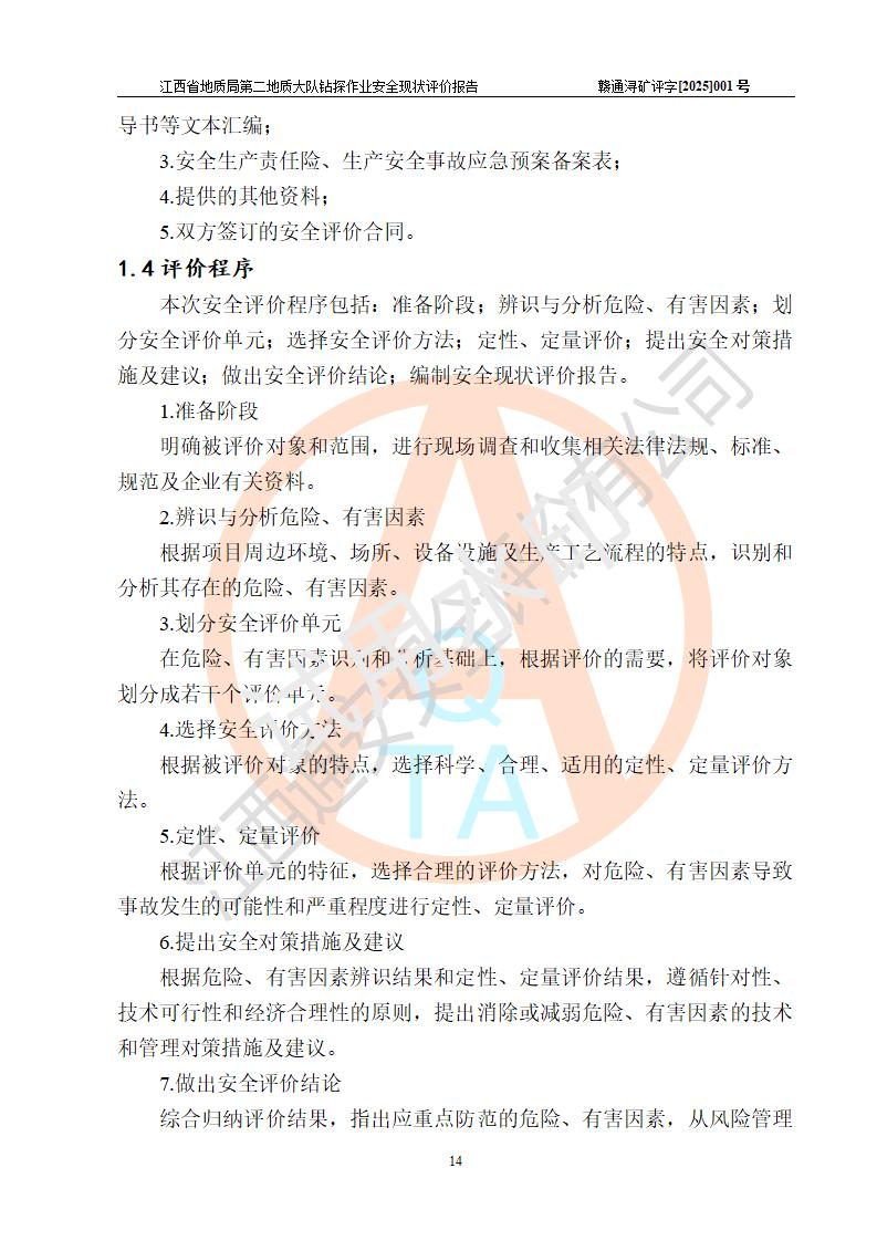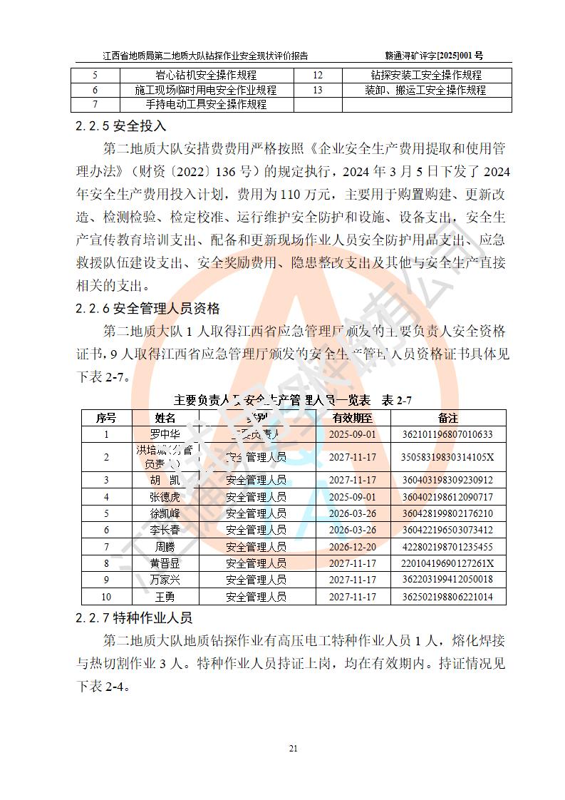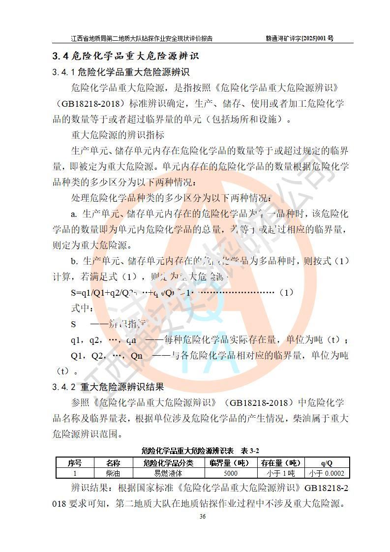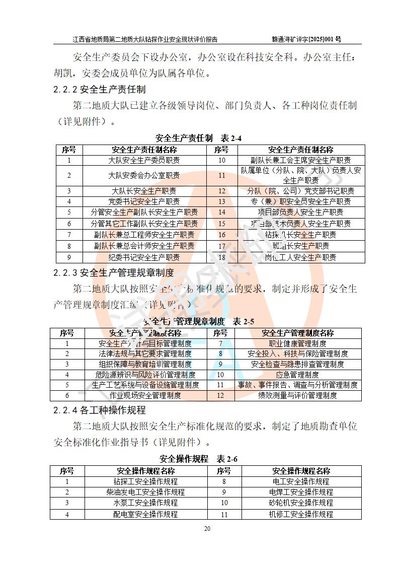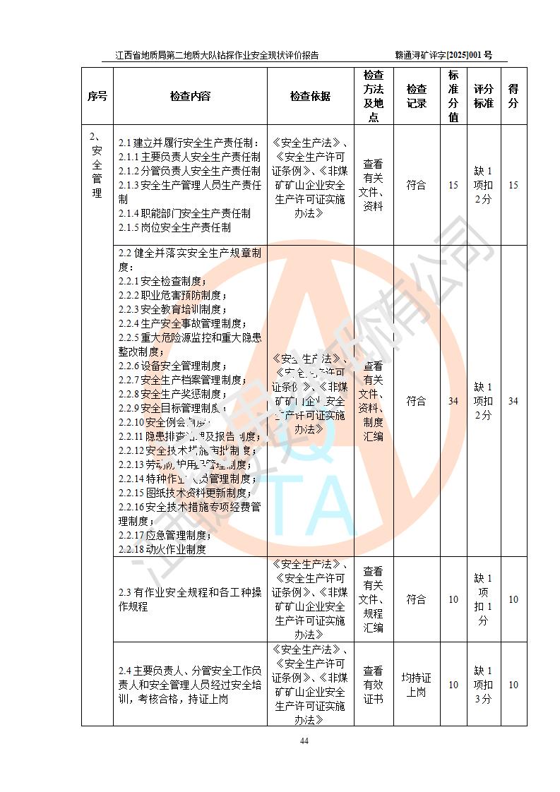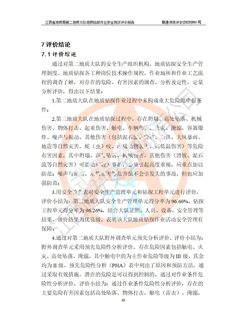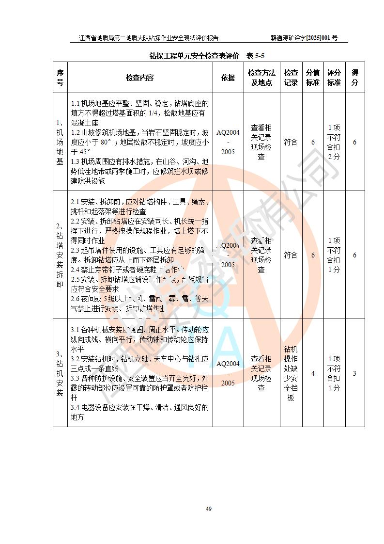報告名稱 | 江西省地質(zhì)局第二地質(zhì)大隊地質(zhì)鉆探作業(yè)安全現(xiàn)狀評價報告 | |||||