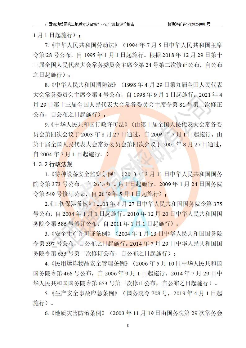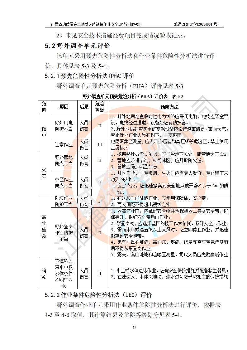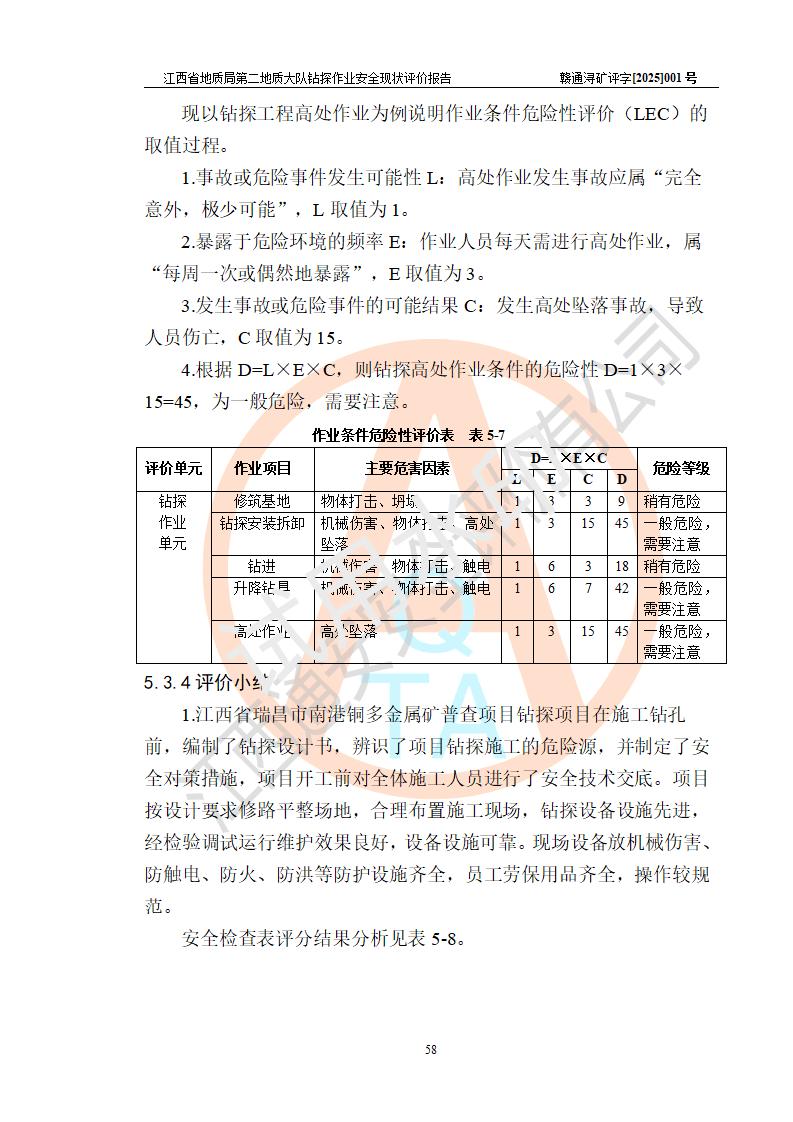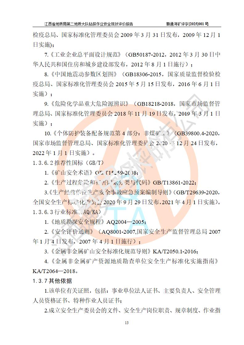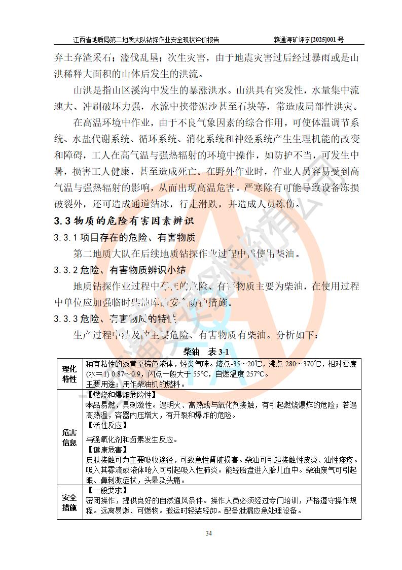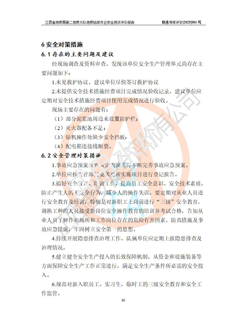 報告名稱 | 江西省地質(zhì)局第二地質(zhì)大隊地質(zhì)鉆探作業(yè)安全現(xiàn)狀評價報告 | |||||
