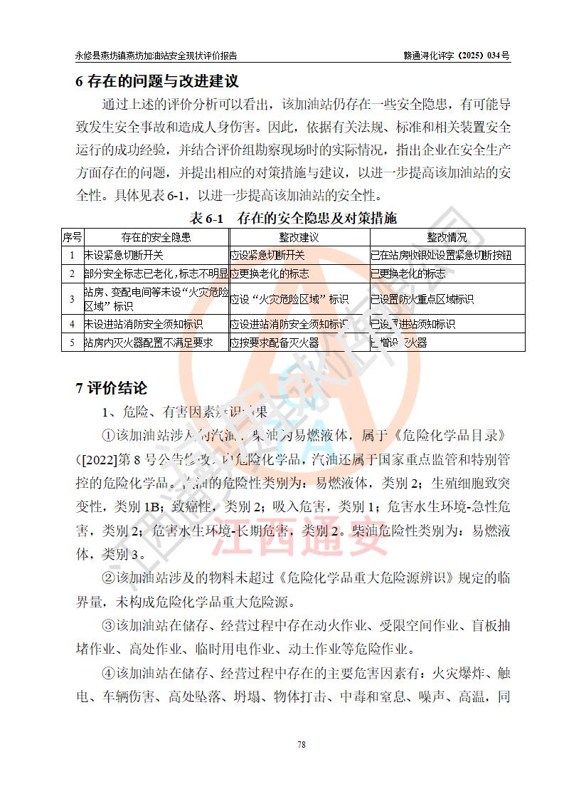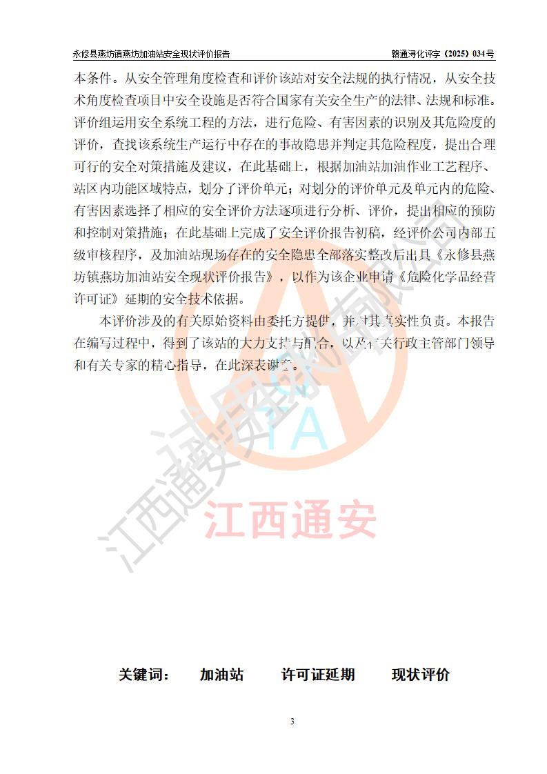 評(píng)價(jià)報(bào)告名稱 | 永修縣燕坊鎮(zhèn)燕坊加油站安全現(xiàn)狀評(píng)價(jià)報(bào)告 | |||