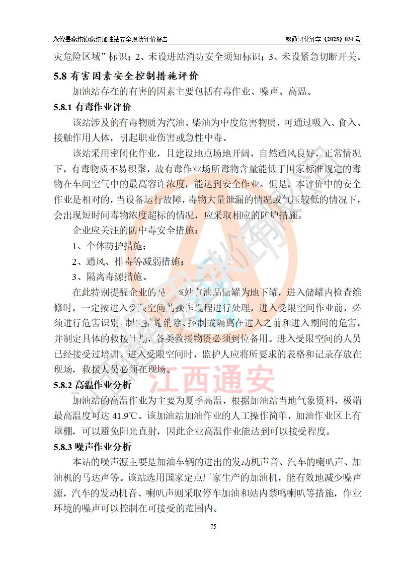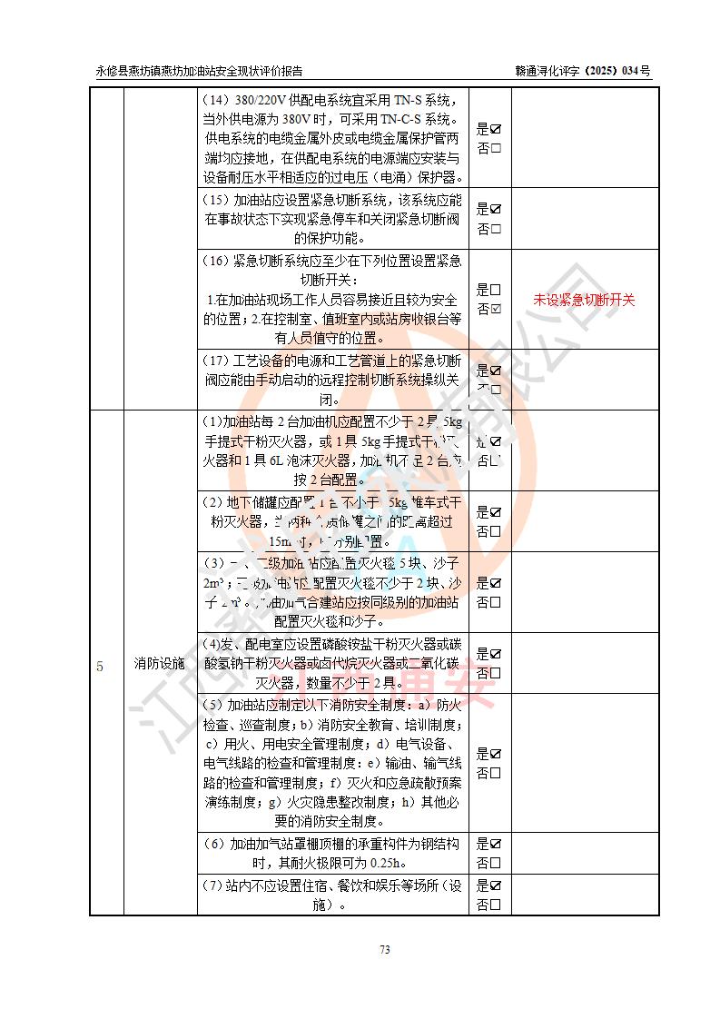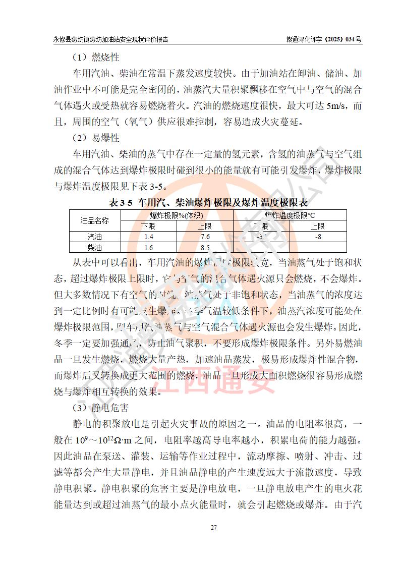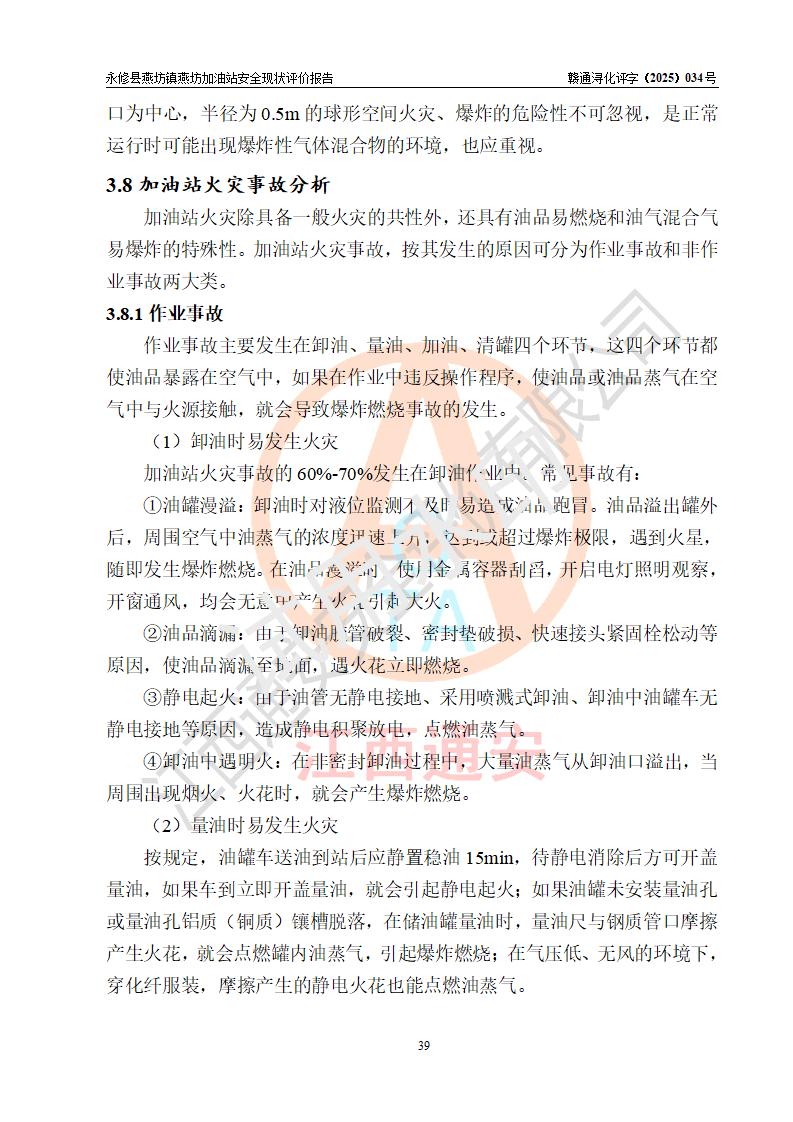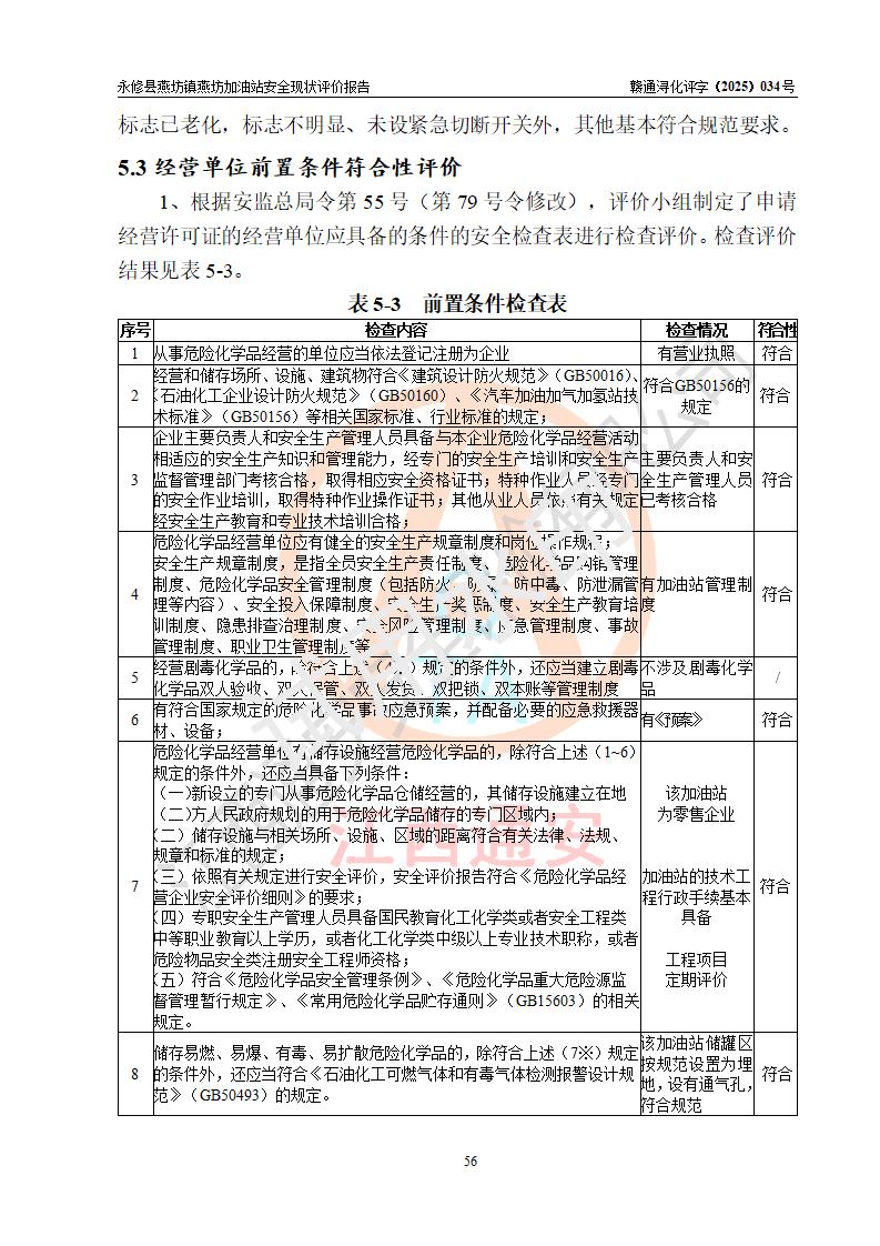 評(píng)價(jià)結(jié)論 | 永修縣燕坊鎮(zhèn)燕坊加油站涉及的安全條件、安全經(jīng)營(yíng)條件、安全生產(chǎn)管理符合《危險(xiǎn)化學(xué)品經(jīng)營(yíng)許可證管理辦法》、《汽車加油加氣加氫站技術(shù)標(biāo)準(zhǔn)》等**有關(guān)法規(guī)、標(biāo)準(zhǔn)、規(guī)范要求,能滿足危險(xiǎn)化學(xué)品經(jīng)營(yíng)安全條件。 | |||