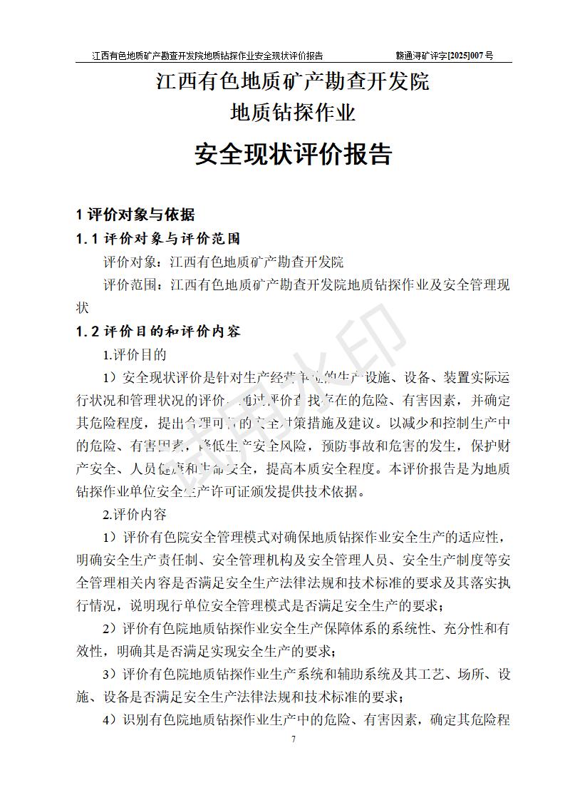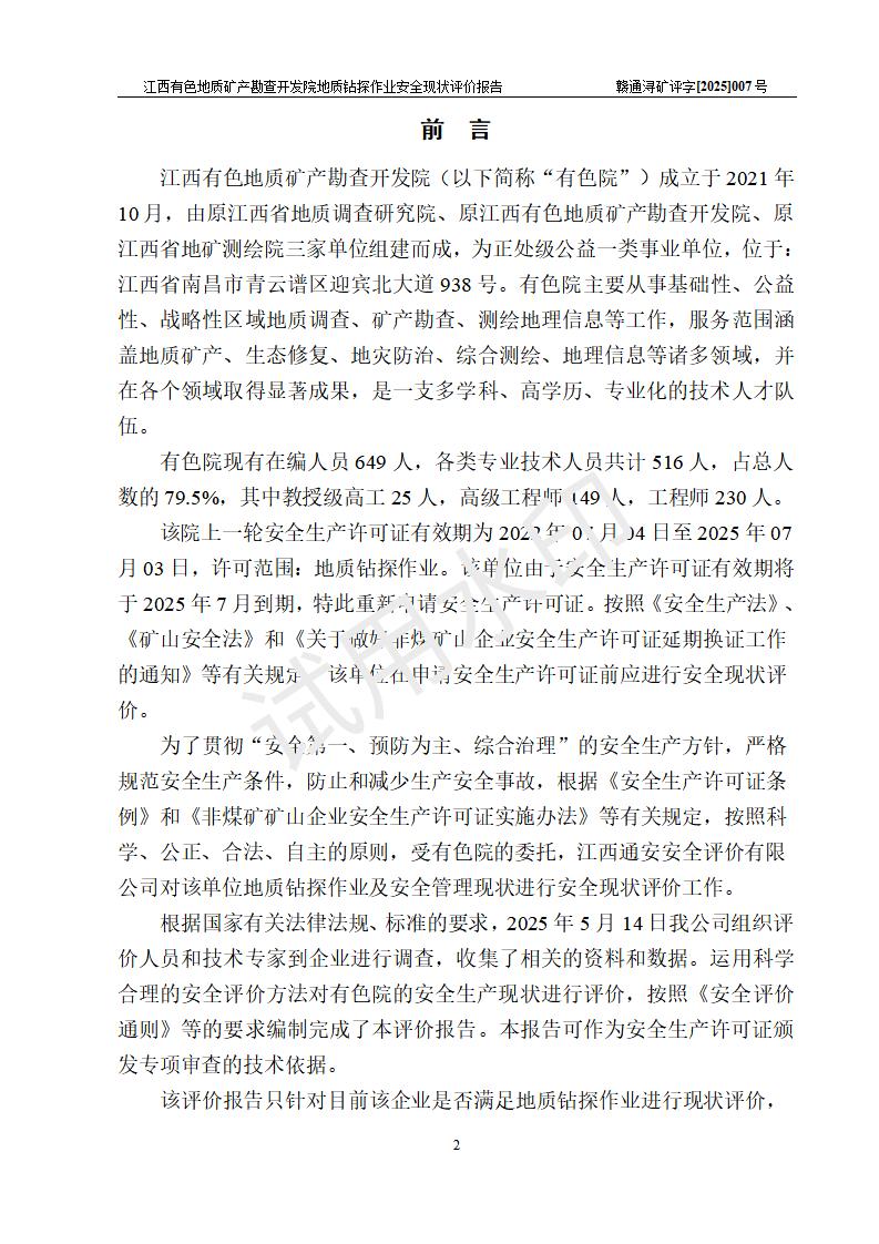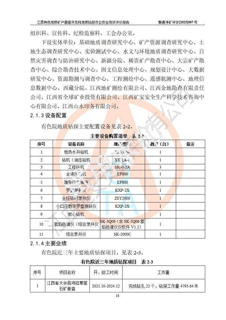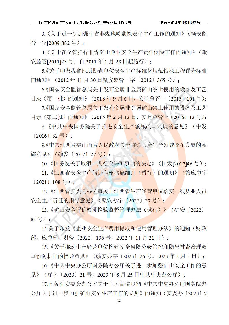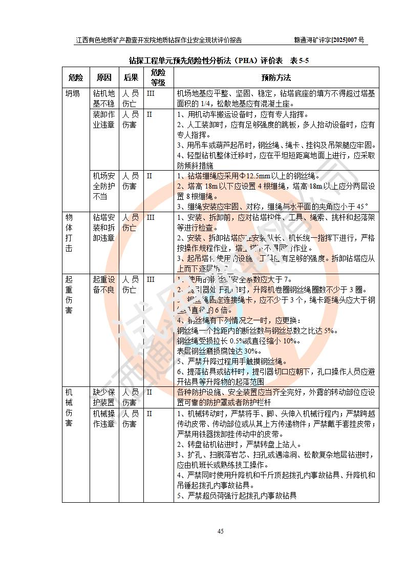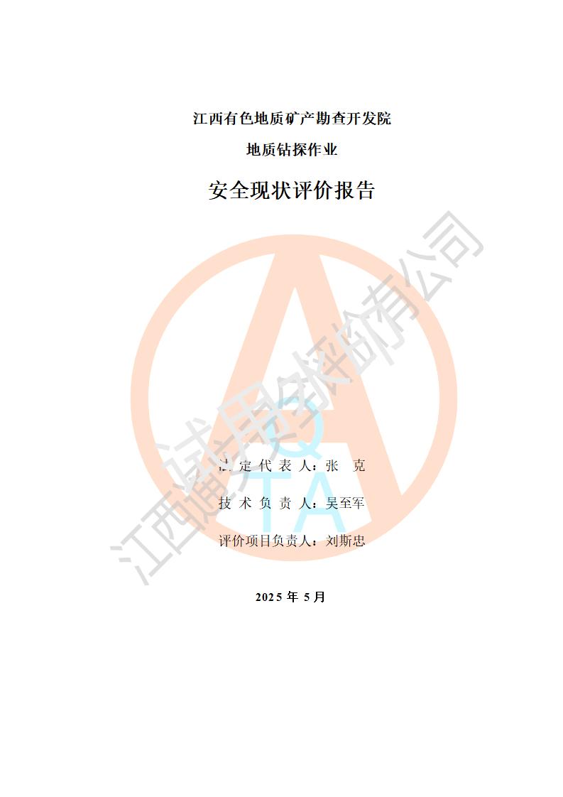 報告名稱 | 江西有色地質(zhì)礦產(chǎn)勘查開發(fā)院地質(zhì)鉆探作業(yè)安全現(xiàn)狀評價報告 | |||||