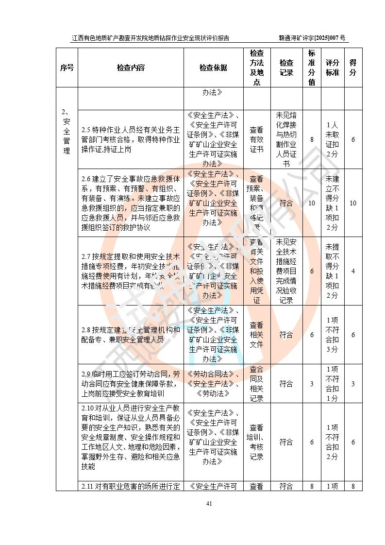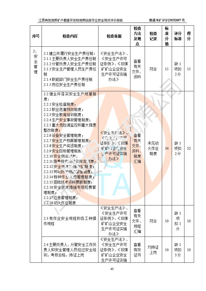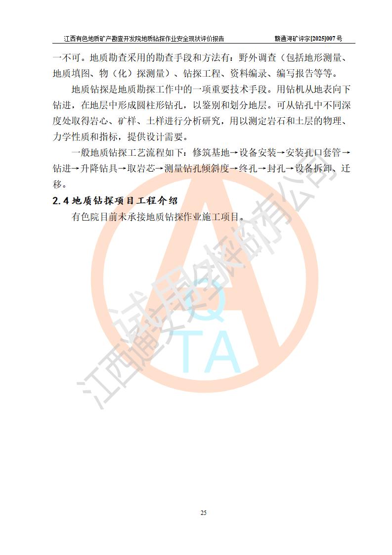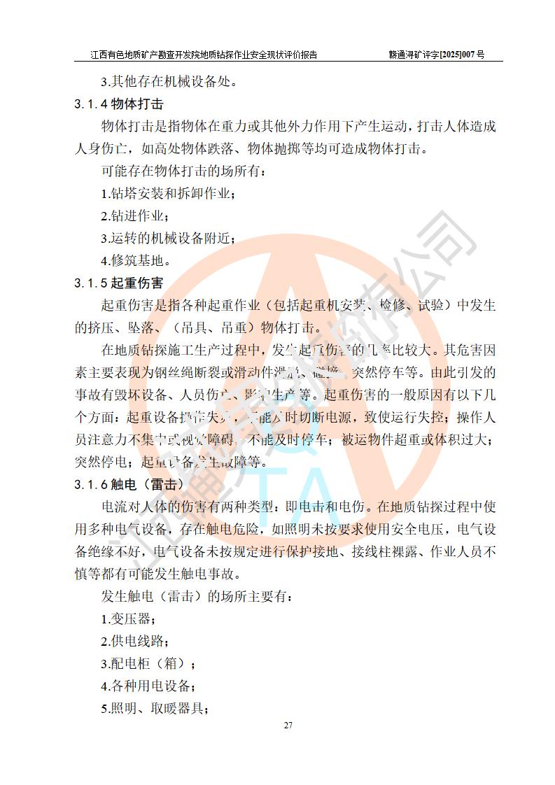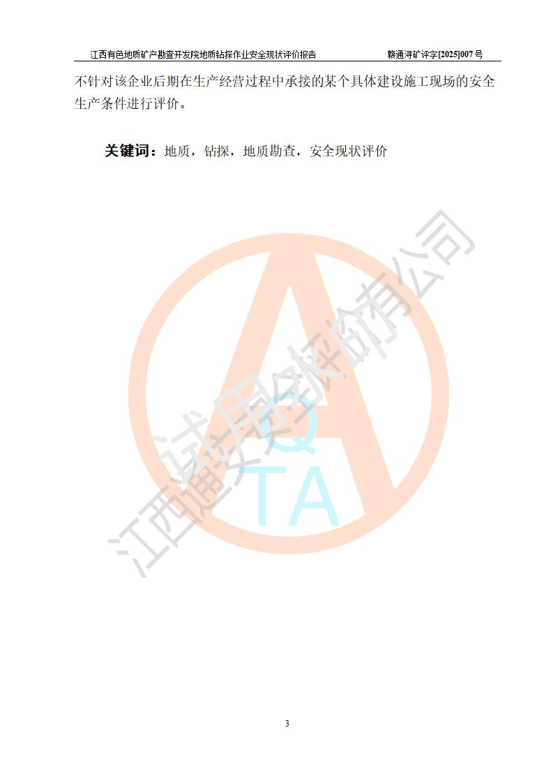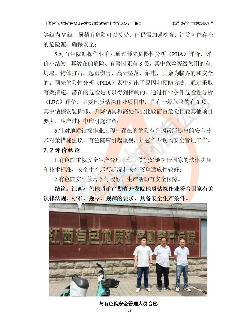報告名稱 | 江西有色地質(zhì)礦產(chǎn)勘查開發(fā)院地質(zhì)鉆探作業(yè)安全現(xiàn)狀評價報告 | |||||