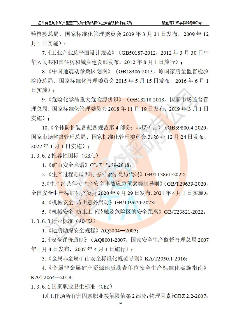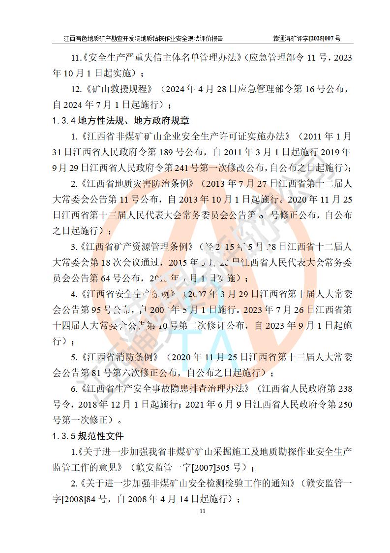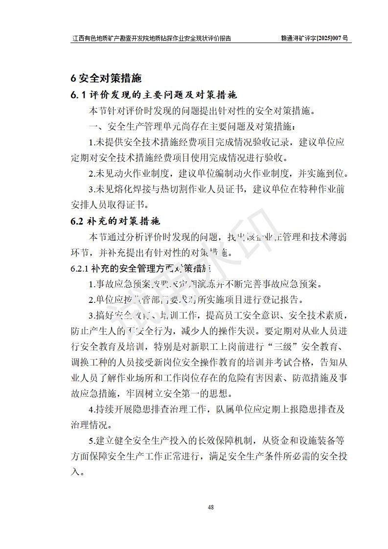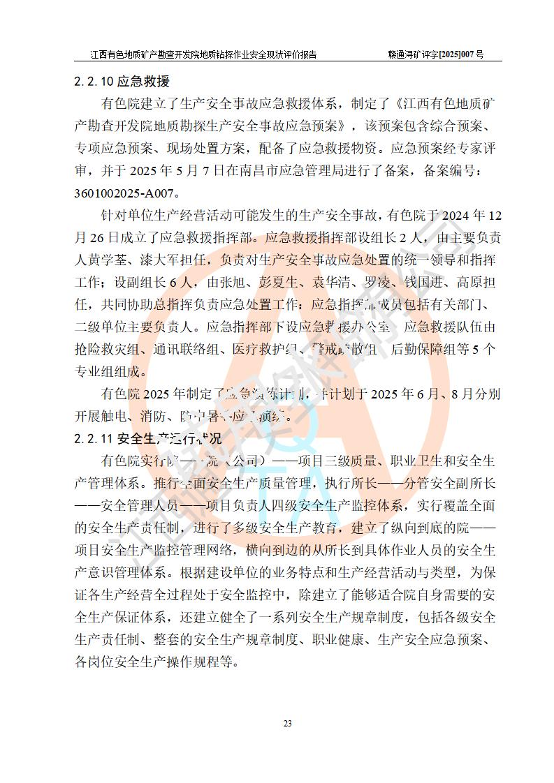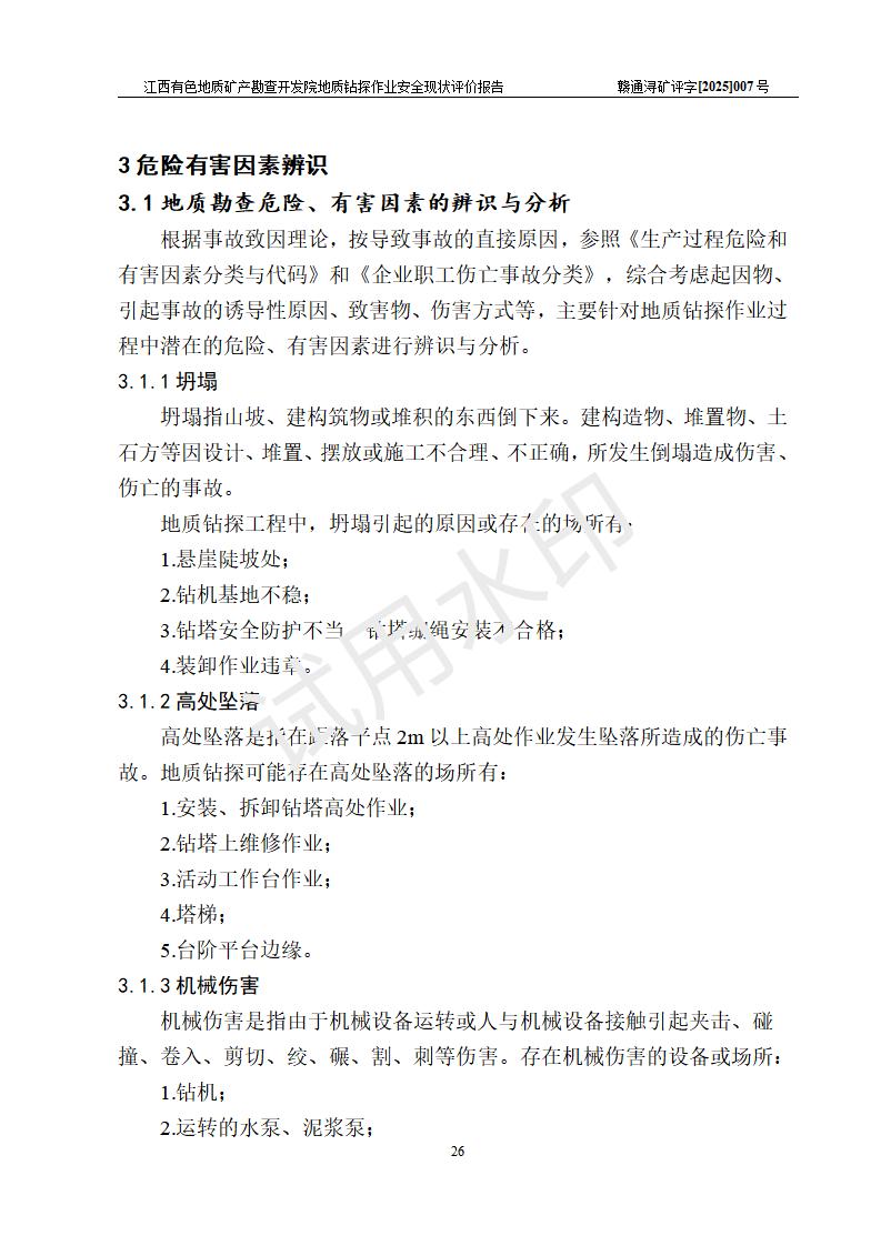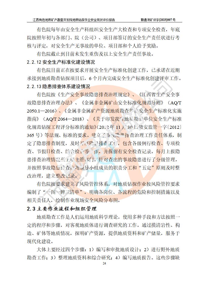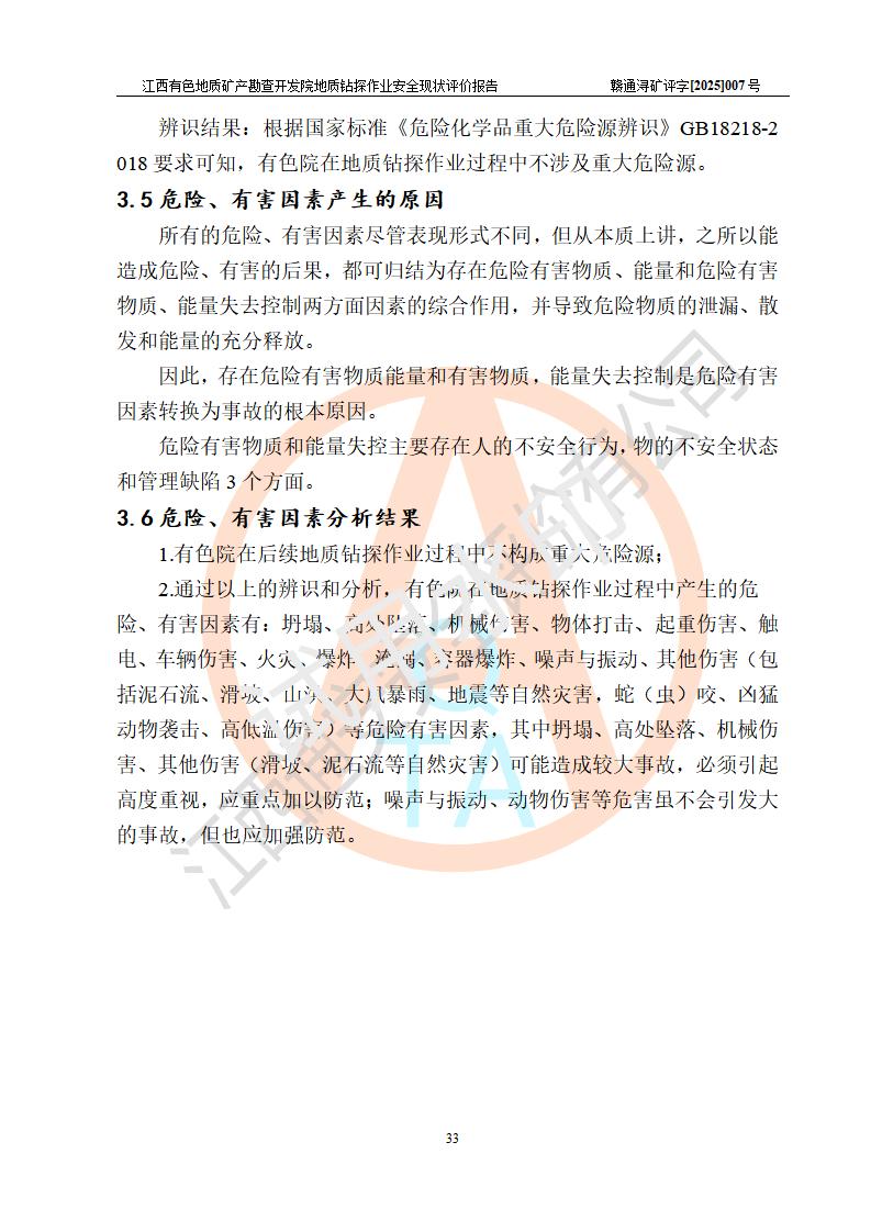 報告名稱 | 江西有色地質(zhì)礦產(chǎn)勘查開發(fā)院地質(zhì)鉆探作業(yè)安全現(xiàn)狀評價報告 | |||||