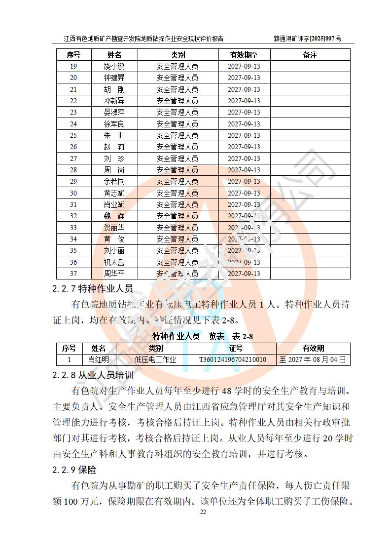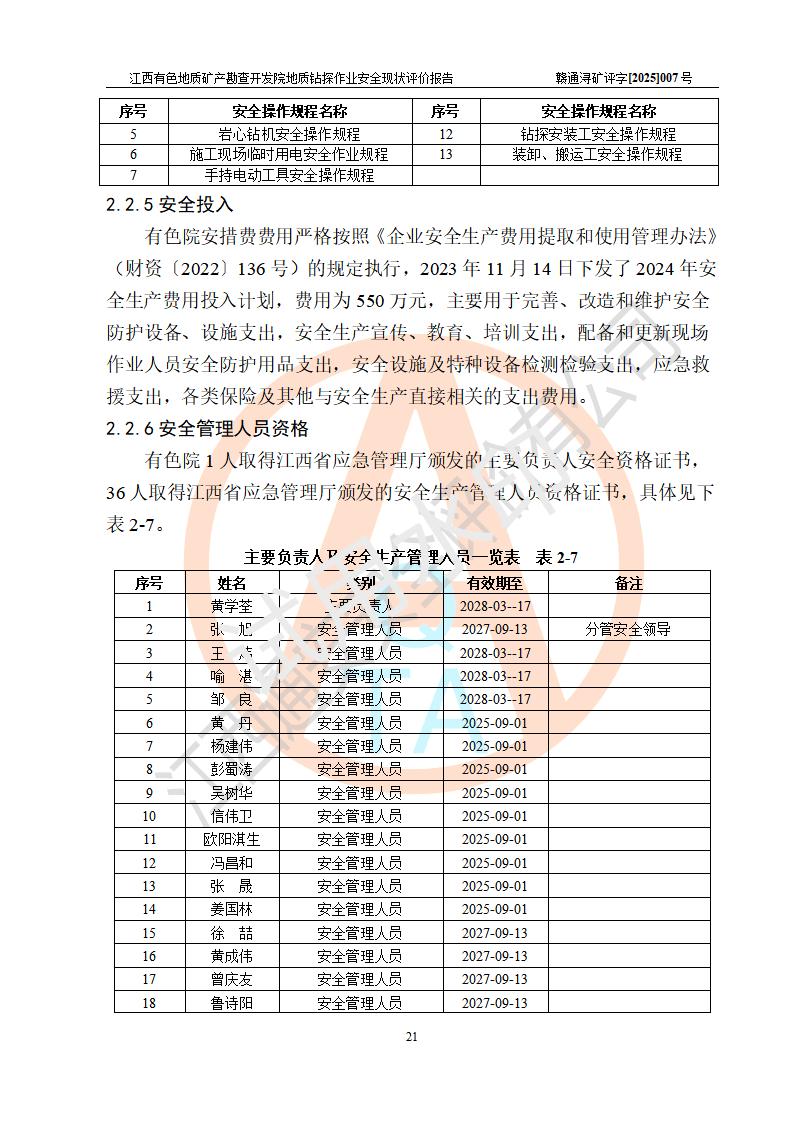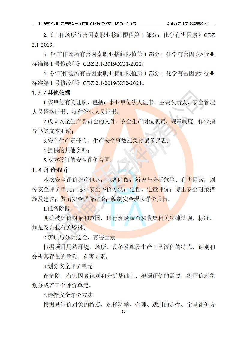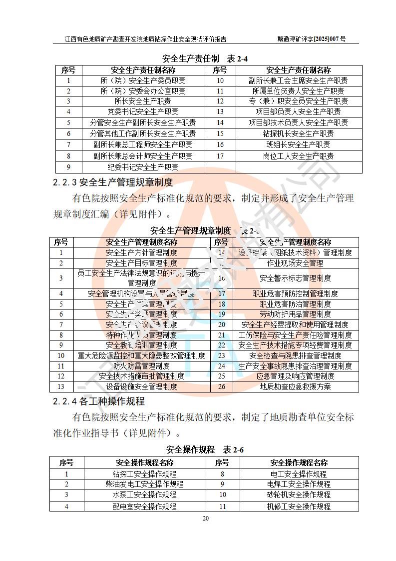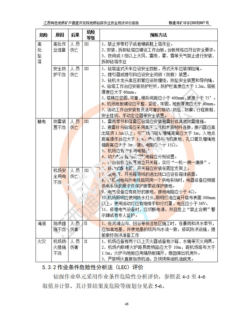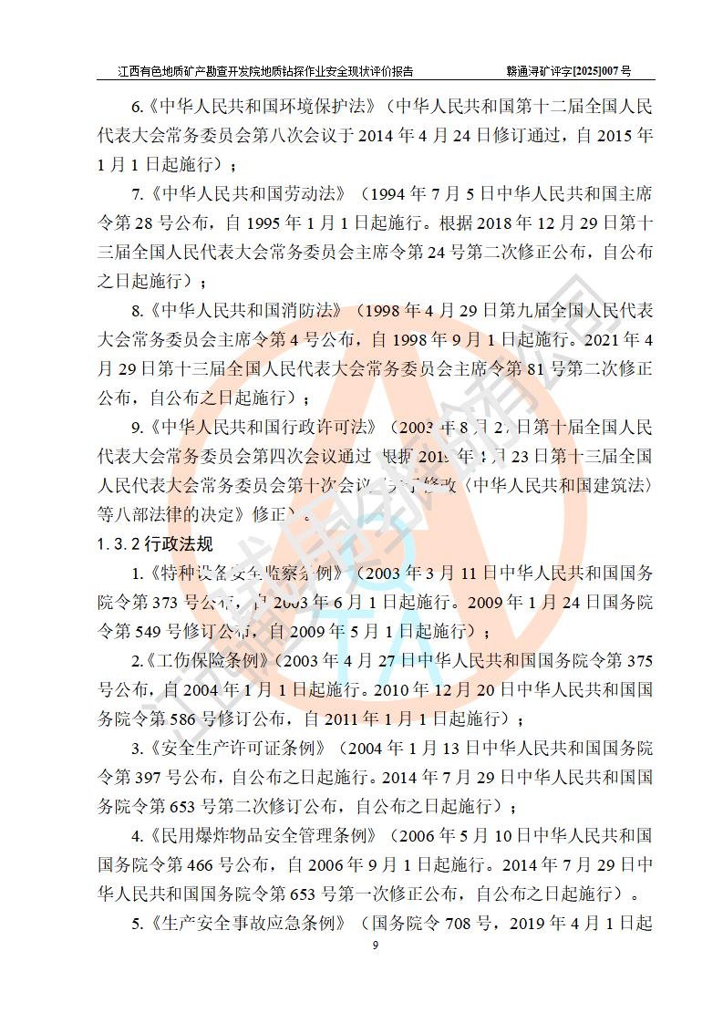 報告名稱 | 江西有色地質(zhì)礦產(chǎn)勘查開發(fā)院地質(zhì)鉆探作業(yè)安全現(xiàn)狀評價報告 | |||||