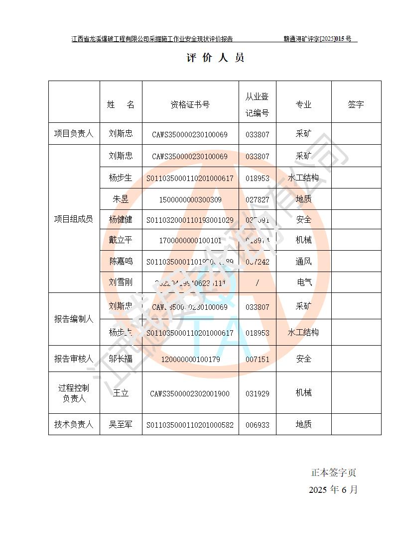 參與評價(jià)項(xiàng)目相關(guān)人員 | 姓名 | 資格證書號 | 從業(yè)登記號 | |