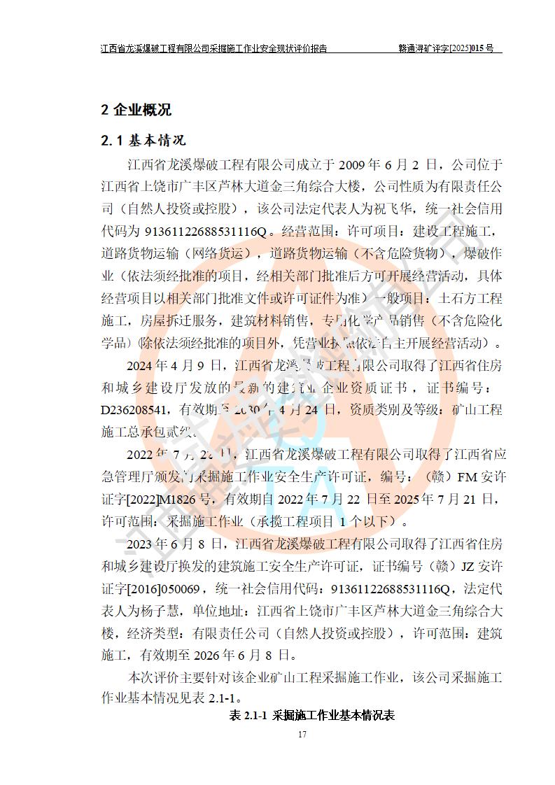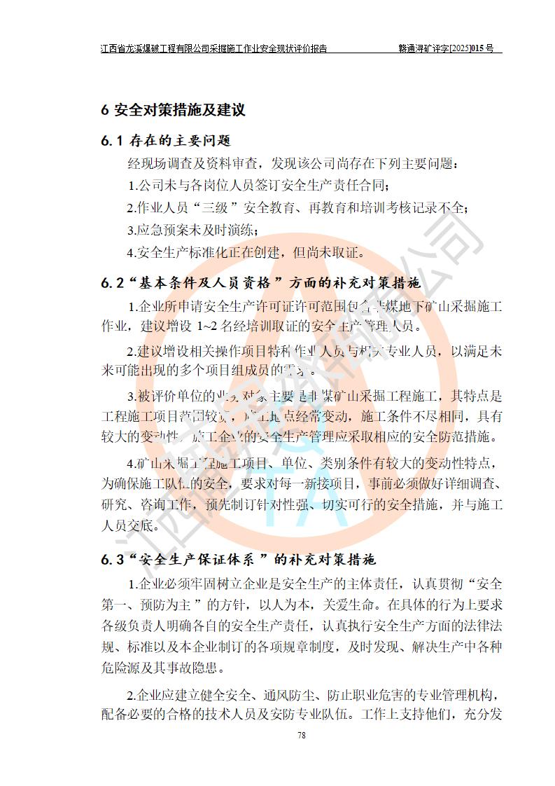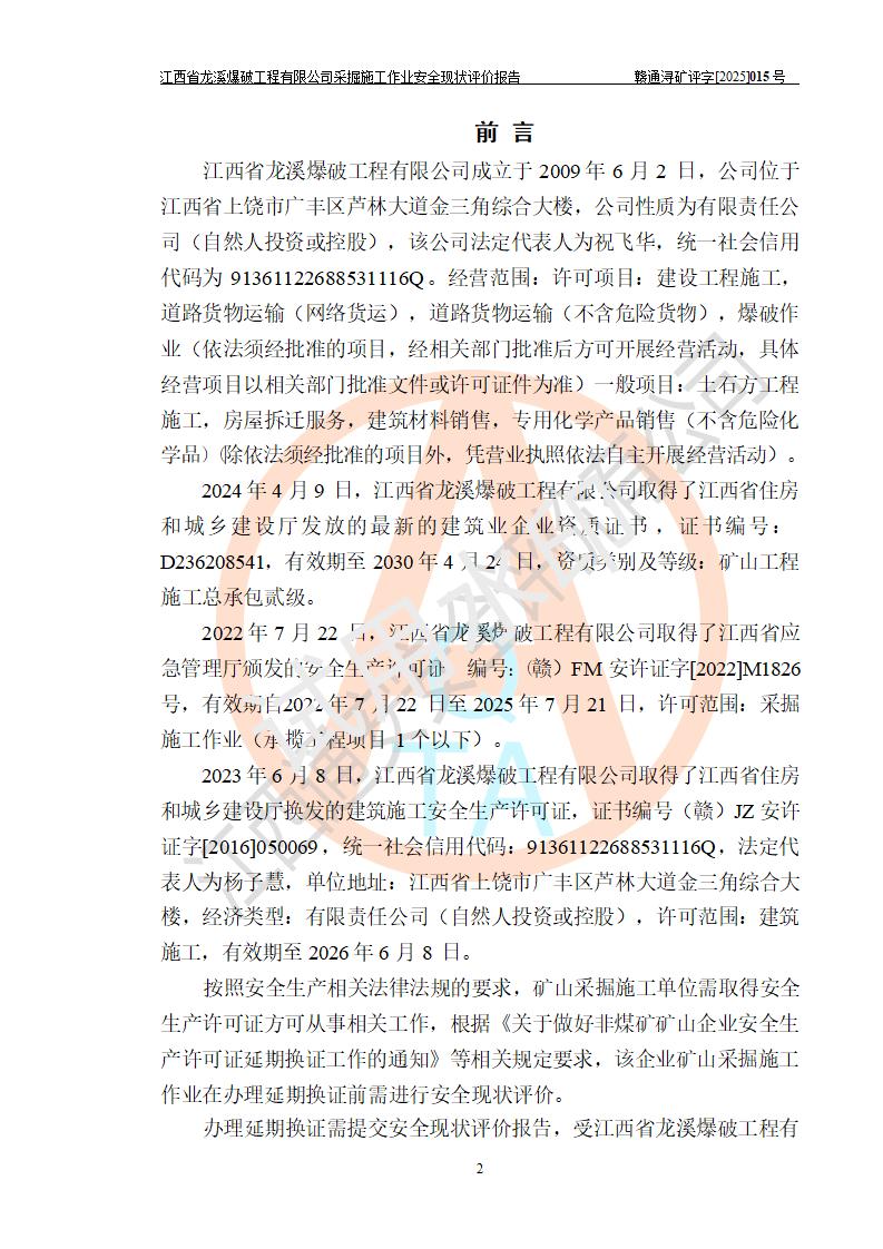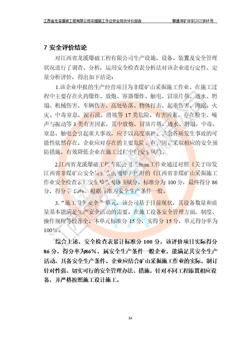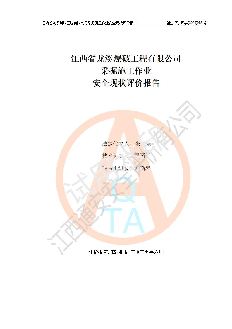 江西省龍溪爆破工程有限公司采掘施工作業(yè)安全現(xiàn)狀評價(jià)報(bào)告 | |||