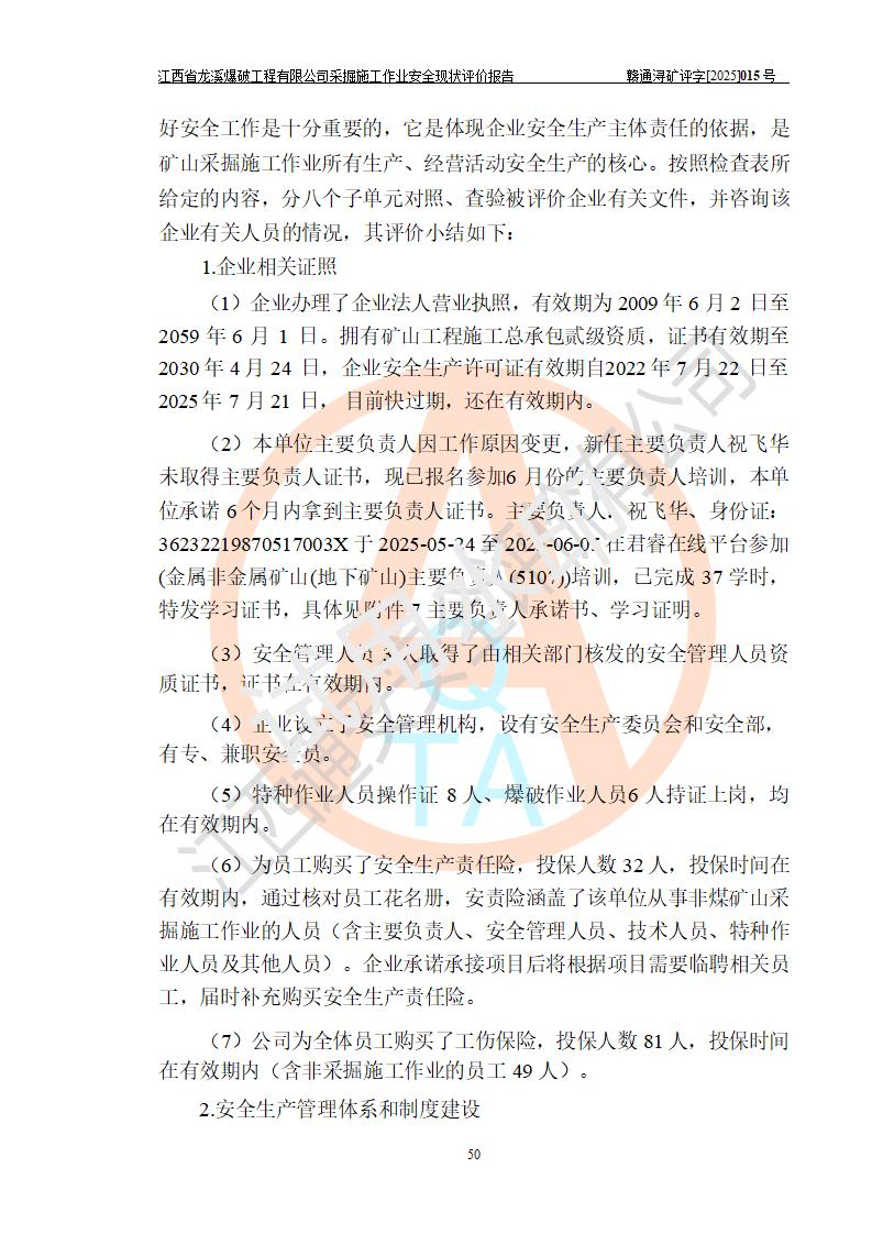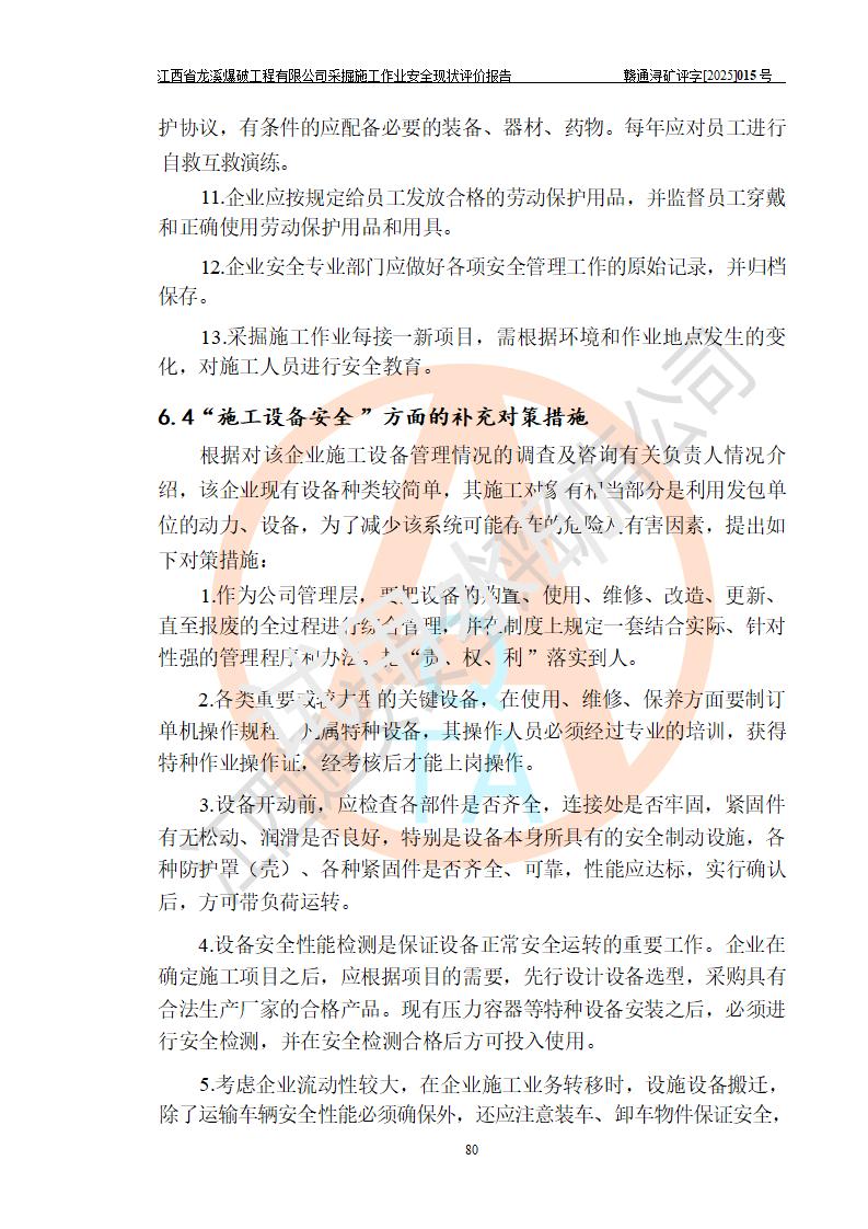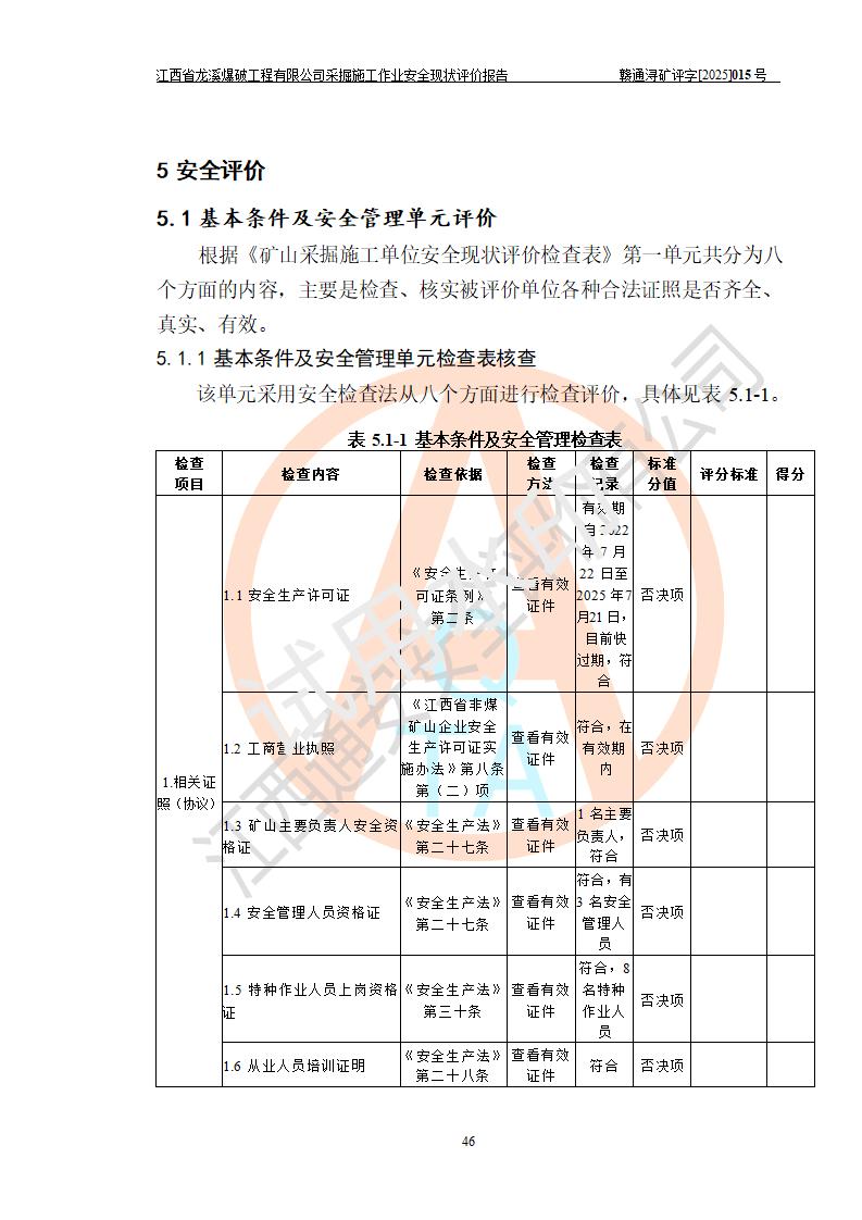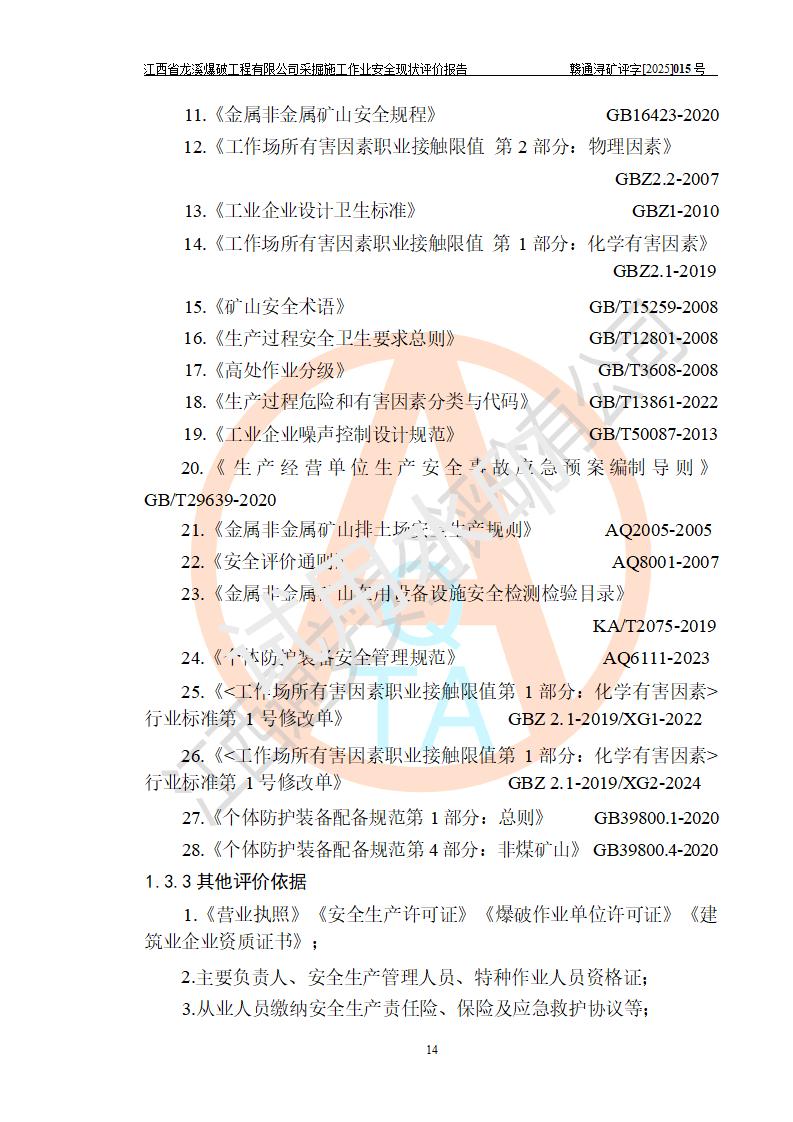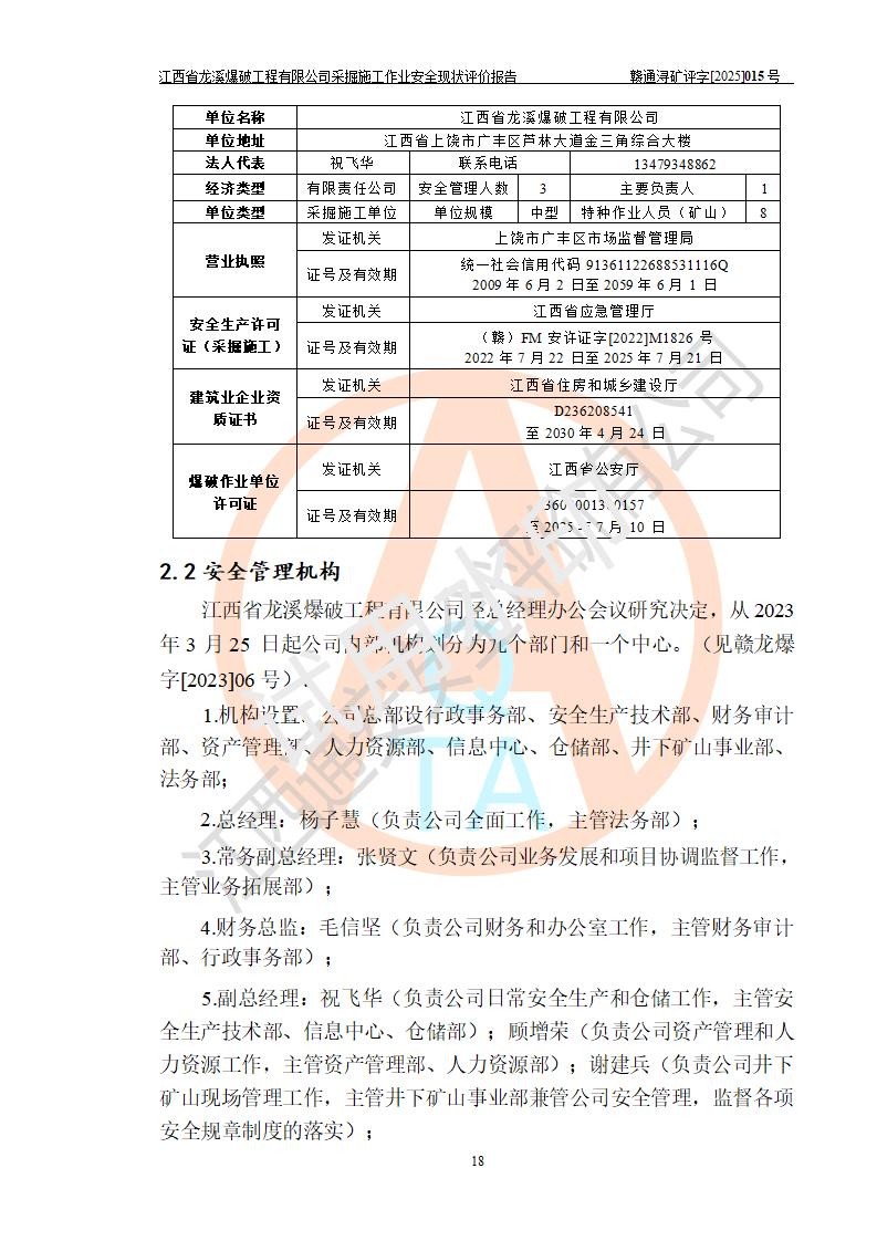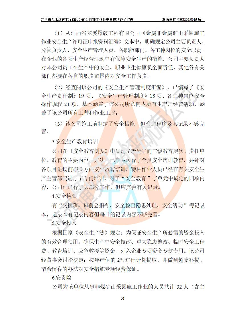 江西省龍溪爆破工程有限公司采掘施工作業(yè)安全現(xiàn)狀評價(jià)報(bào)告 | |||
