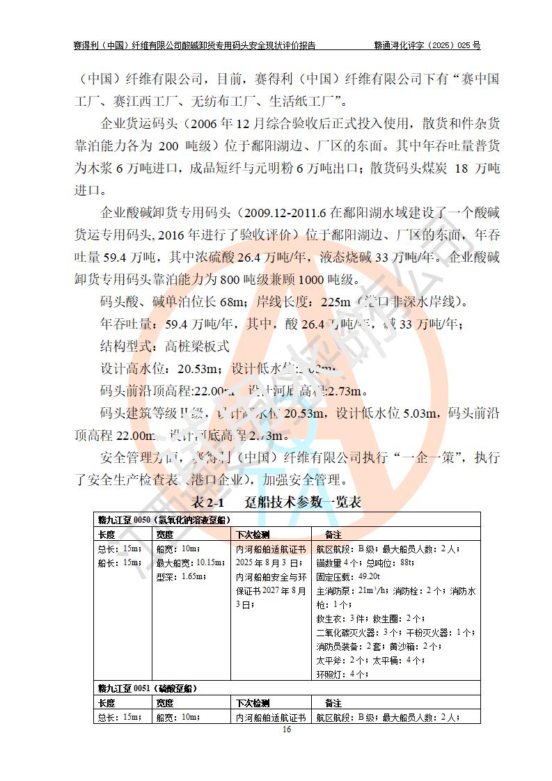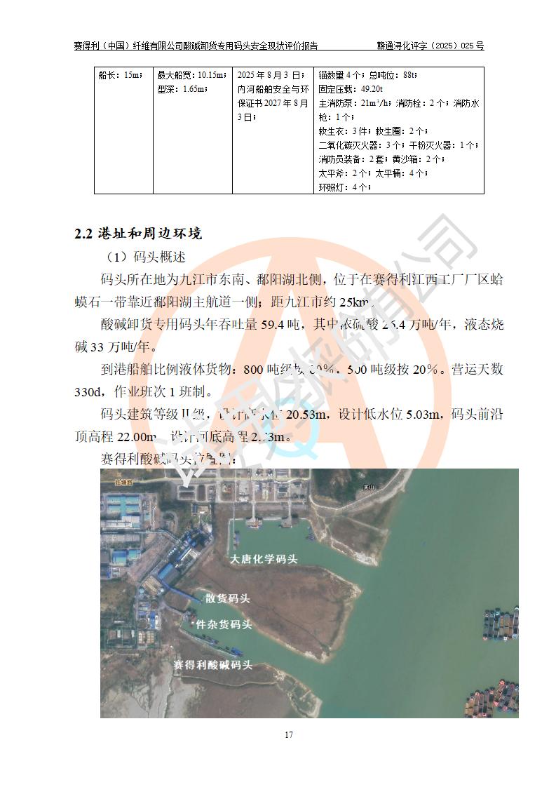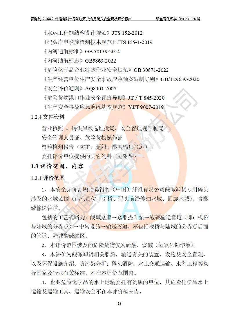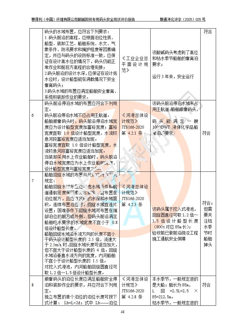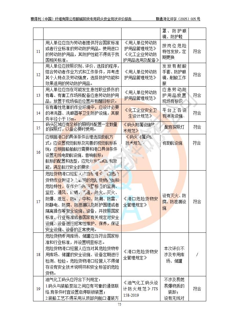 評價(jià)報(bào)告名稱 | 賽得利(中國)纖維有限公司酸堿卸貨**碼頭安全現(xiàn)狀評價(jià)報(bào)告 | |||||