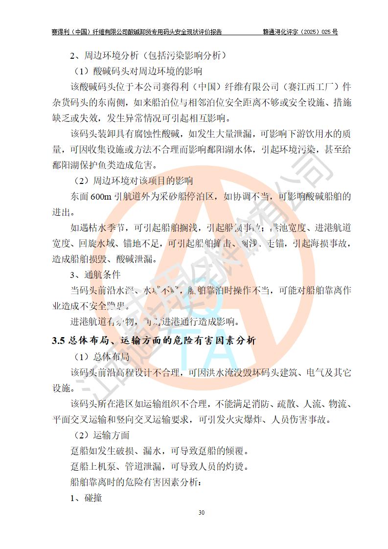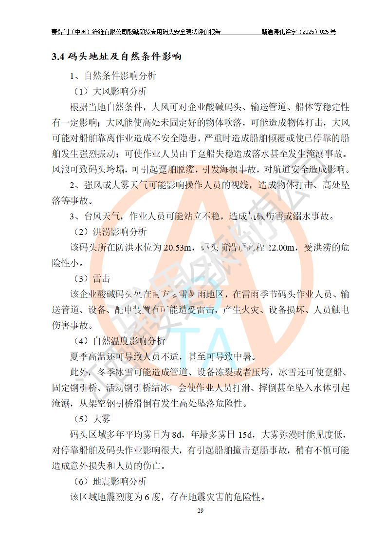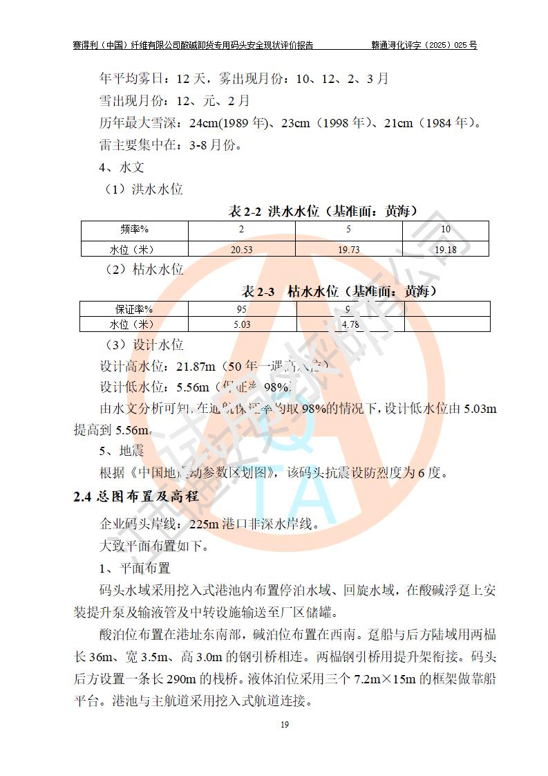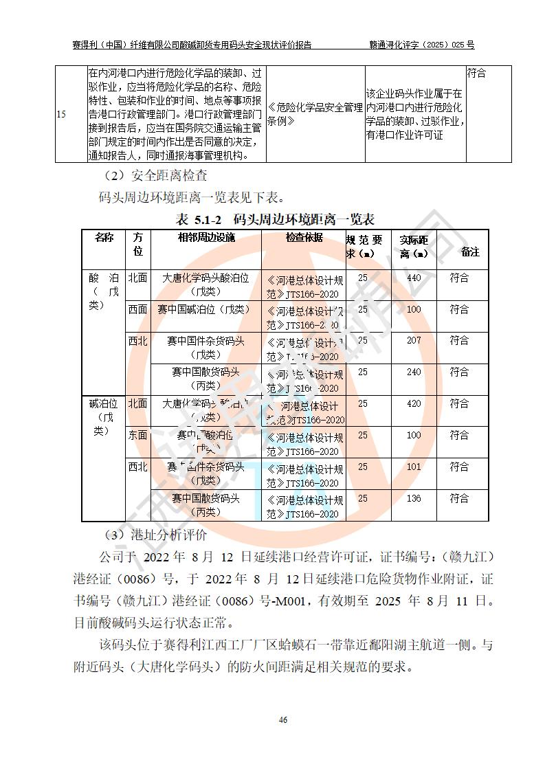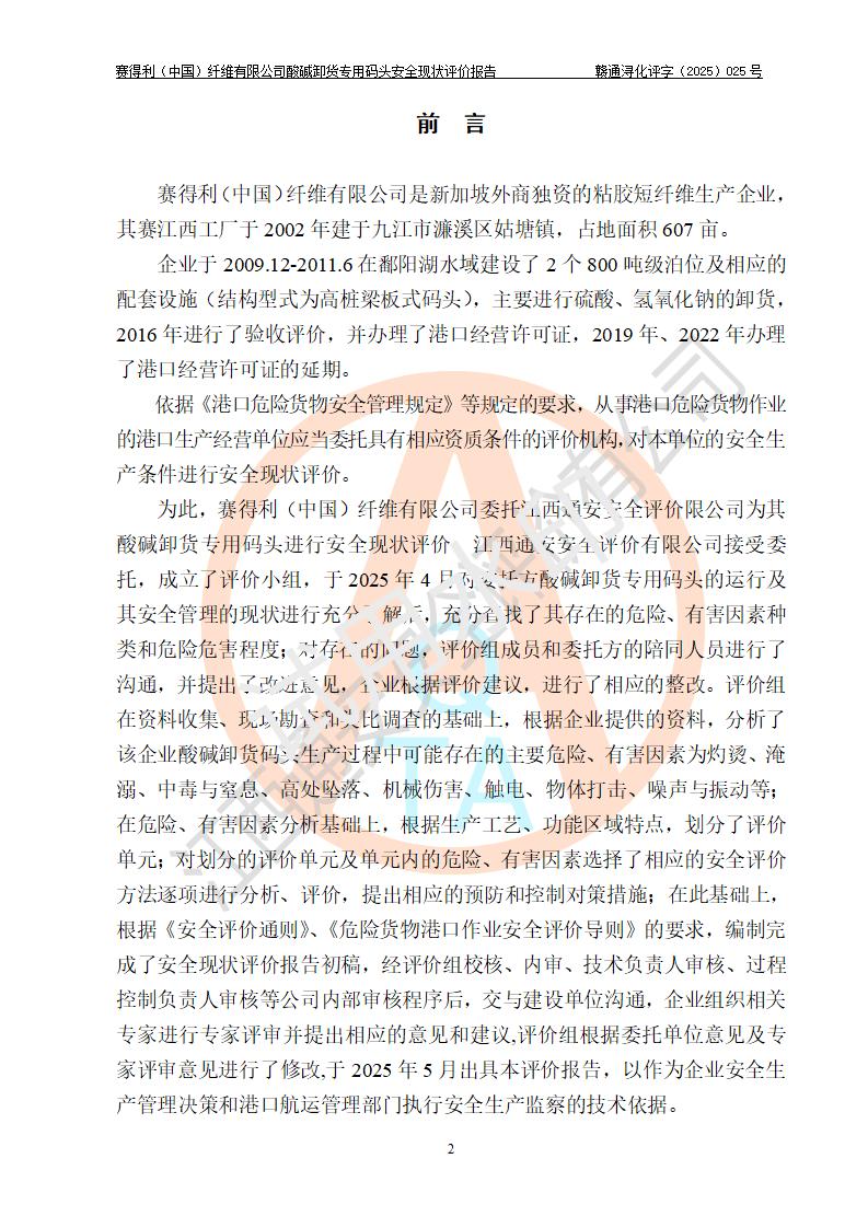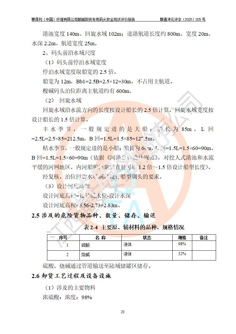 評價(jià)報(bào)告名稱 | 賽得利(中國)纖維有限公司酸堿卸貨**碼頭安全現(xiàn)狀評價(jià)報(bào)告 | |||||