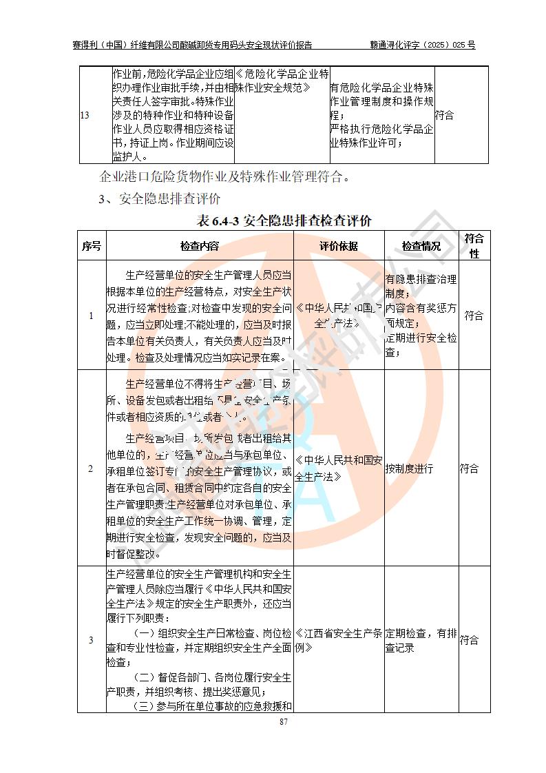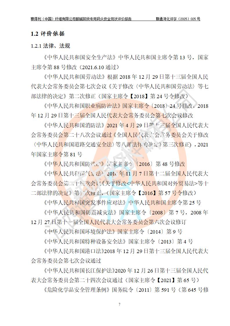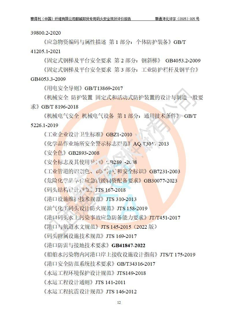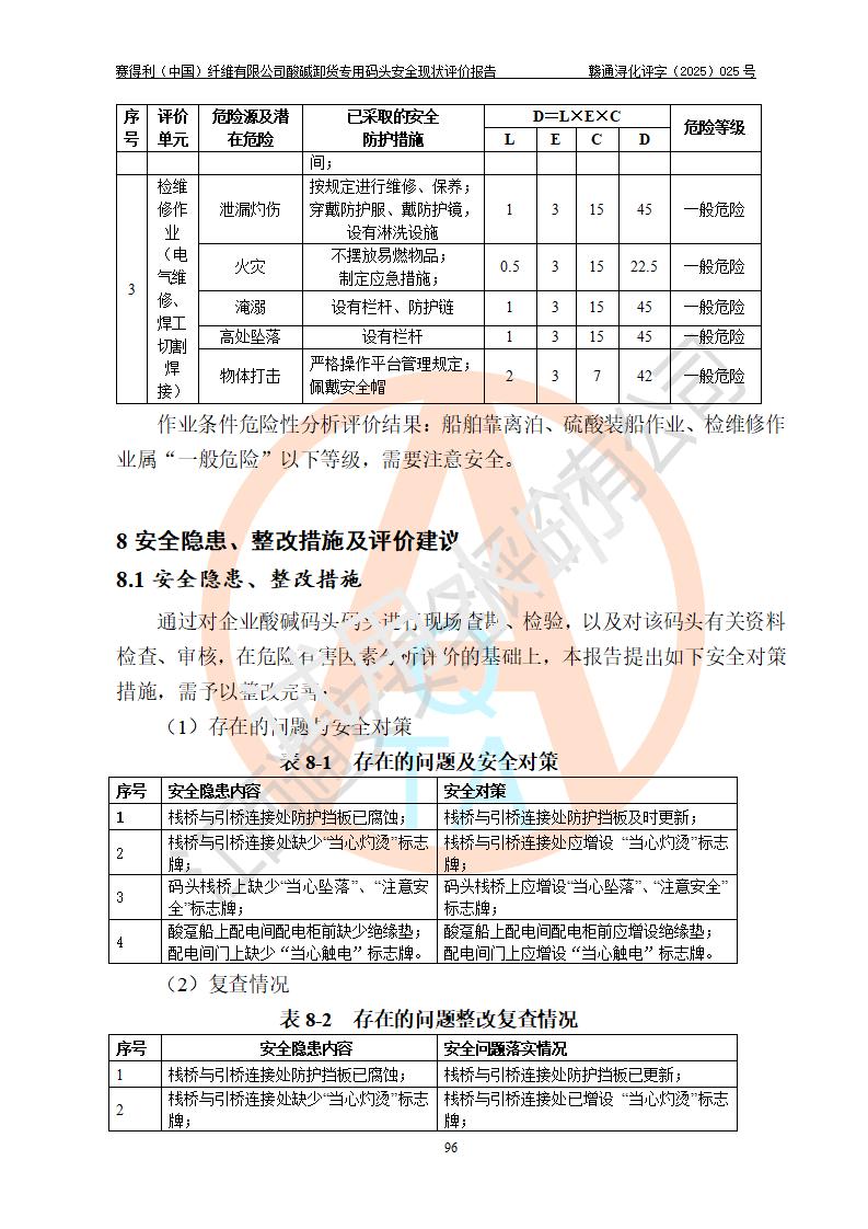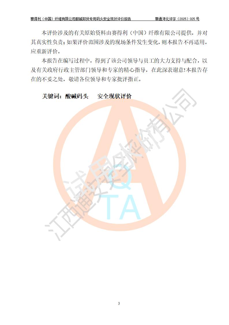 評價(jià)報(bào)告名稱 | 賽得利(中國)纖維有限公司酸堿卸貨**碼頭安全現(xiàn)狀評價(jià)報(bào)告 | |||||