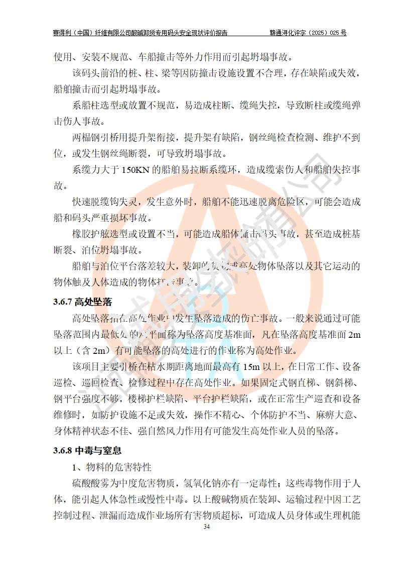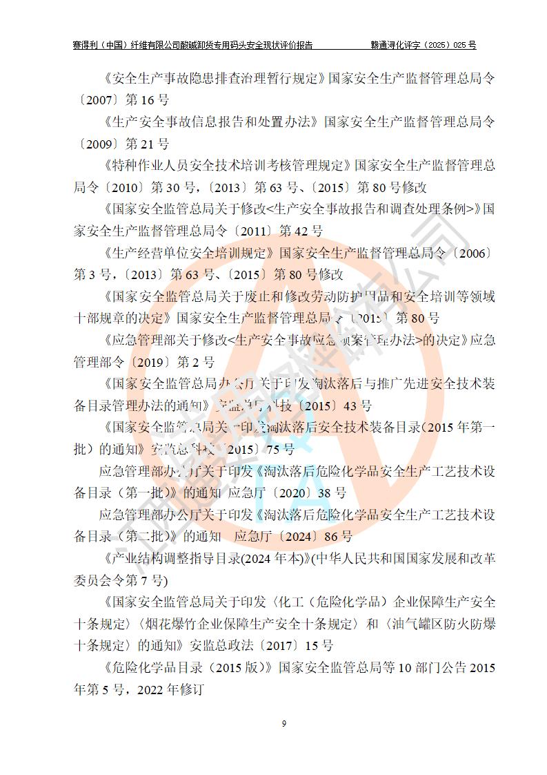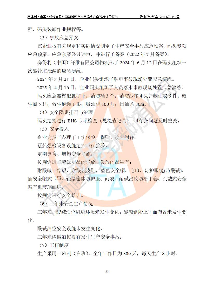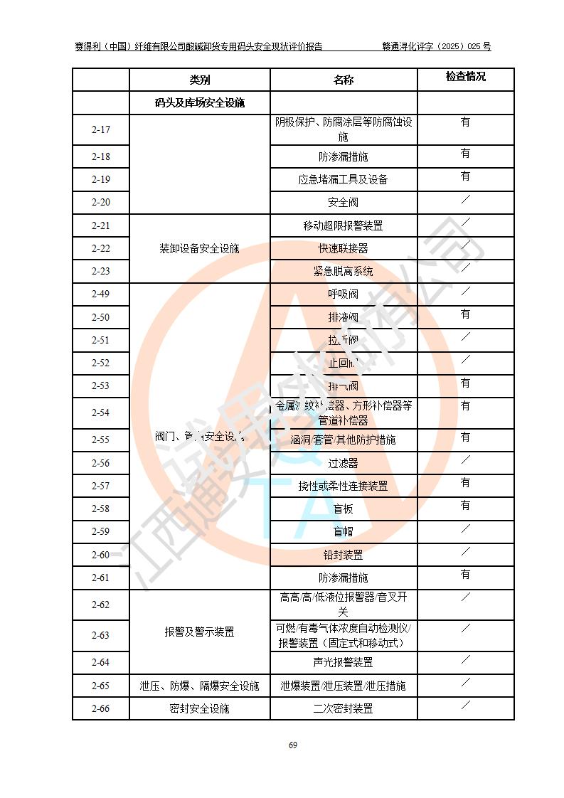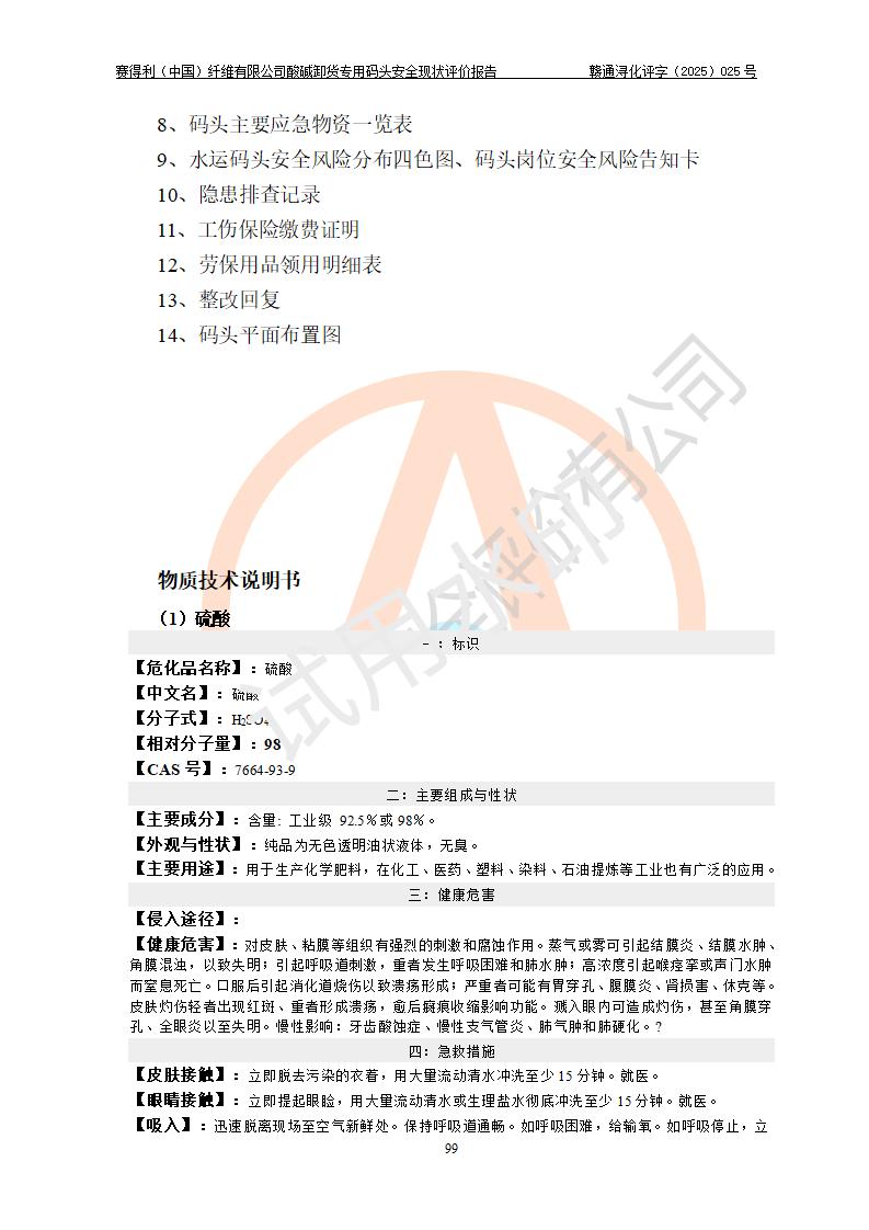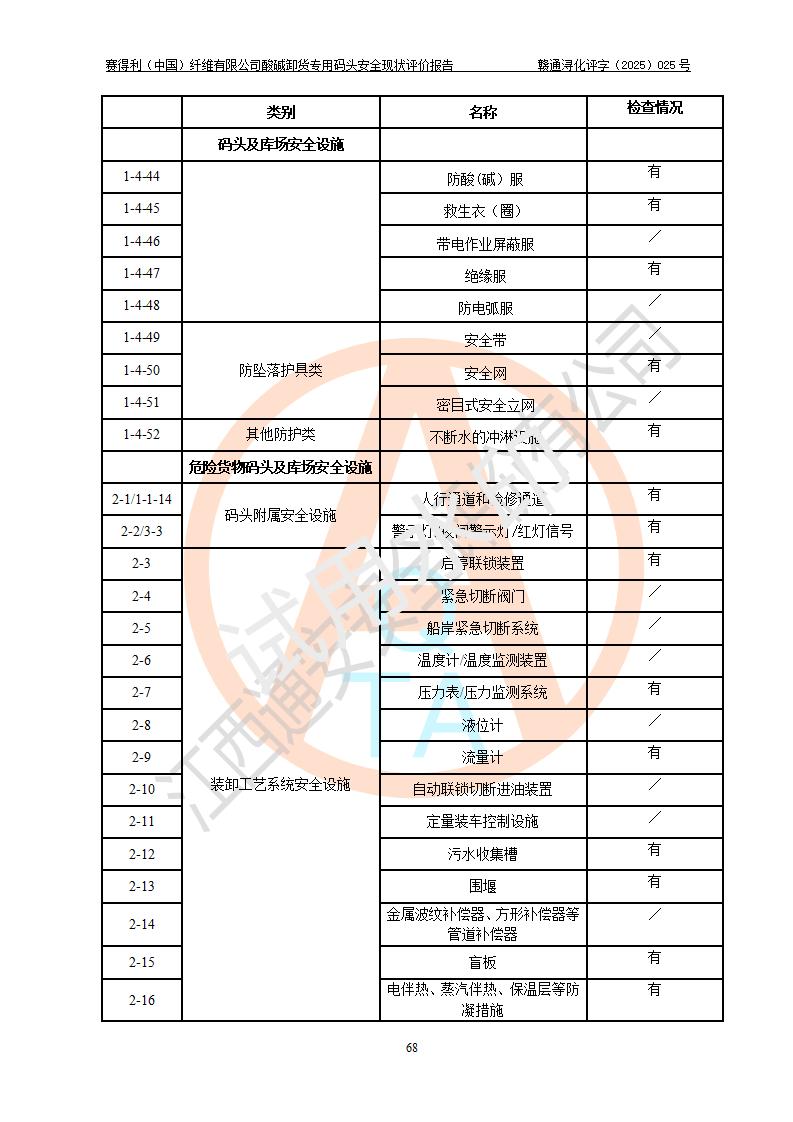 評價(jià)報(bào)告名稱 | 賽得利(中國)纖維有限公司酸堿卸貨**碼頭安全現(xiàn)狀評價(jià)報(bào)告 | |||||