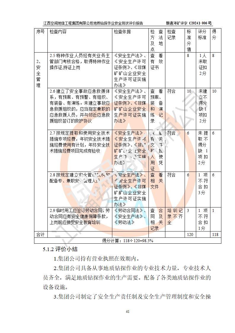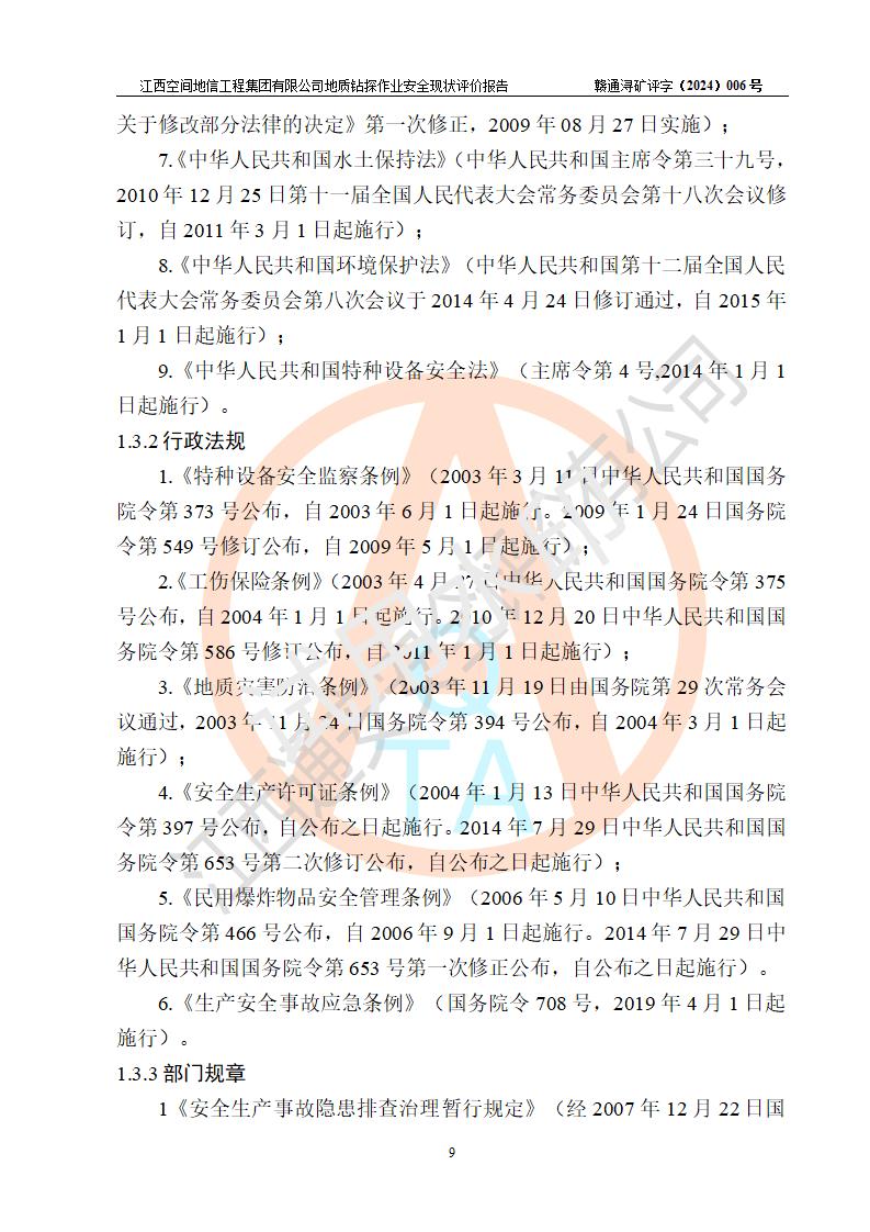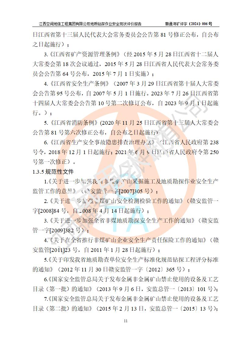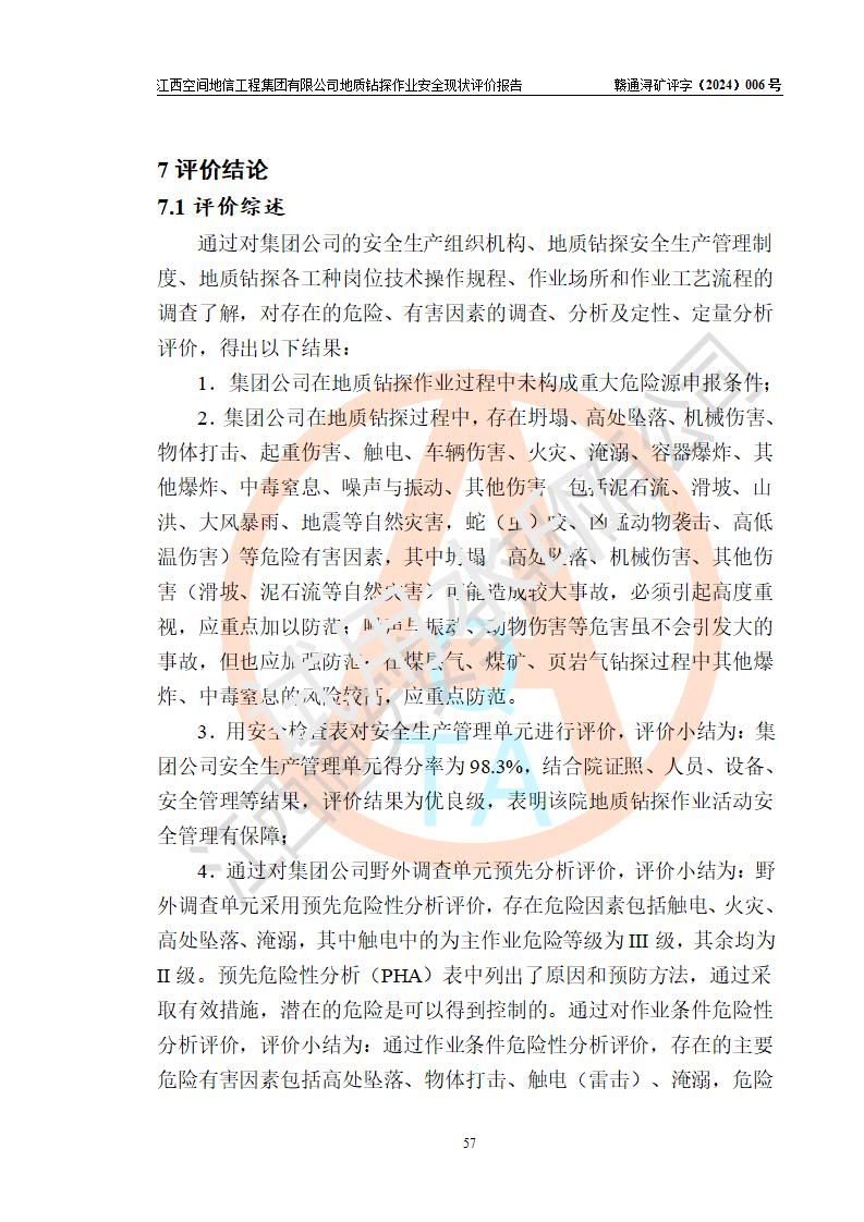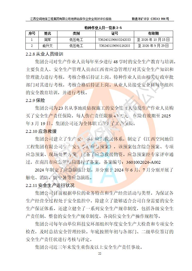 江西空間地信工程集團(tuán)有限公司成立于2019年10月,位于江西省南昌市青云譜區(qū)南蓮路76號(hào),為江西省地理信息工程大隊(duì)隊(duì)屬二級(jí)企業(yè),由“江西中煤路橋工程有限公司”、“江西省煤田地質(zhì)局普查綜合大隊(duì)”(企業(yè))、“江西工程物探新技術(shù)公司”、“江西華昌地質(zhì)測(cè)試有限公司”“江西中煤集團(tuán)第六建設(shè)有限公司”、“江西中煤集團(tuán)生態(tài)環(huán)境有限公司”重組而成。主要承擔(dān)全隊(duì)市場(chǎng)運(yùn)營(yíng)、業(yè)務(wù)開拓、政策研究、科技創(chuàng)新等職責(zé)。 集團(tuán)公司經(jīng)營(yíng)范圍:地質(zhì)災(zāi)害危險(xiǎn)性評(píng)估,地質(zhì)災(zāi)害治理工程勘查,地質(zhì)災(zāi)害治理工程設(shè)計(jì),地質(zhì)災(zāi)害治理工程施工,國(guó)土空間規(guī)劃編制,測(cè)繪服務(wù),互聯(lián)網(wǎng)信息服務(wù),礦產(chǎn)資源勘查(依法須經(jīng)批準(zhǔn)的項(xiàng)目,經(jīng)相關(guān)部門批準(zhǔn)后方可開展經(jīng)營(yíng)活動(dòng))一般項(xiàng)目:地質(zhì)災(zāi)害治理服務(wù),土地整治服務(wù),規(guī)劃設(shè)計(jì)管理,互聯(lián)網(wǎng)安全服務(wù),信息咨詢服務(wù)(不含許可類信息咨詢服務(wù)),軟件開發(fā),地理遙感信息服務(wù),礦產(chǎn)資源儲(chǔ)量估算和報(bào)告編制服務(wù)(須在中國(guó)礦業(yè)權(quán)評(píng)估師**完成登記備案后方可從事經(jīng)營(yíng)活動(dòng)),礦產(chǎn)資源儲(chǔ)量評(píng)估服務(wù)(須在中國(guó)礦業(yè)權(quán)評(píng)估師**完成登記備案后方可從事經(jīng)營(yíng)活動(dòng)),基礎(chǔ)地質(zhì)勘查,土壤污染治理與修復(fù)服務(wù),對(duì)外承包工程(除許可業(yè)務(wù)外,可自主依法經(jīng)營(yíng)法律法規(guī)非禁止或限制的項(xiàng)目)。 江西空間地信工程集團(tuán)有限公司為江西省地理信息工程大隊(duì)隊(duì)屬二級(jí)企業(yè),集團(tuán)公司內(nèi)設(shè)7個(gè)直屬部門:綜合辦、科研中心、資產(chǎn)辦、人力資源辦、資質(zhì)辦、招標(biāo)辦、黨群辦;3個(gè)分公司:上饒分公司、宜春分公司、全南項(xiàng)目部;下設(shè)9個(gè)實(shí)體:基礎(chǔ)測(cè)繪院、測(cè)繪工程院、自然資源調(diào)查院、規(guī)劃設(shè)計(jì)院、勘測(cè)設(shè)計(jì)院、地信中心、航測(cè)遙感院、國(guó)土綜合整治院、地環(huán)探測(cè)院。集團(tuán)公司產(chǎn)業(yè)發(fā)展分測(cè)繪工程、航測(cè)遙感、地理信息工程、國(guó)土空間規(guī)劃、國(guó)土綜合整治、地環(huán)探測(cè)工程六大板塊。 集團(tuán)公司現(xiàn)有干部職工900人,在編職工601人,合同聘用職工299人,其中副高以上職稱106人,工程師職稱209人,助理工程師162人,研究生76人,本科生773人。 集團(tuán)公司擁有測(cè)繪**,地災(zāi)評(píng)估、勘查、設(shè)計(jì)、施工**,土地規(guī)劃**;土地規(guī)劃、土地整治、城鄉(xiāng)規(guī)劃乙級(jí)、水利水電工程、市政二級(jí)等資質(zhì)證書。公司于2022年4月獲得質(zhì)量、環(huán)境、職業(yè)健康、信息安全、信息技術(shù)服務(wù)、五星售后等6項(xiàng)ISO體系認(rèn)證證書,2022年5月獲得AAA企業(yè)信用等級(jí)證書,獲得行業(yè)誠(chéng)信經(jīng)營(yíng)示范單位、AAA級(jí)誠(chéng)信供應(yīng)商、重合同守信用、質(zhì)量服務(wù)誠(chéng)信單位等稱號(hào)。 集團(tuán)公司為地勘單位安全生產(chǎn)許可證新設(shè)許可,申請(qǐng)?jiān)S可范圍:地質(zhì)鉆探作業(yè)。按照《安全生產(chǎn)法》、《礦山安全法》和《江西省非煤礦礦山企業(yè)安全生產(chǎn)許可證實(shí)施辦法》等有關(guān)規(guī)定,該單位在申請(qǐng)安全生產(chǎn)許可證前應(yīng)進(jìn)行安全現(xiàn)狀評(píng)價(jià)。 |