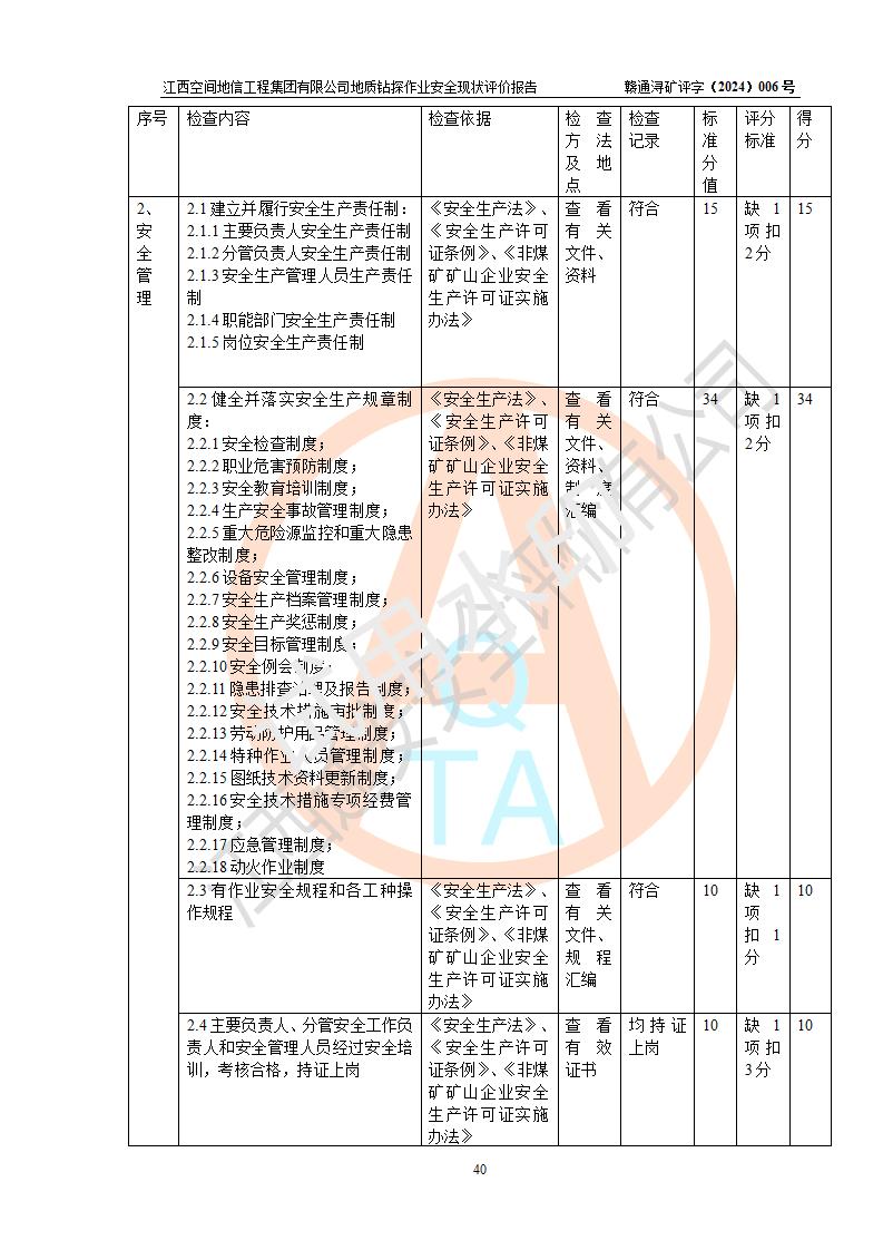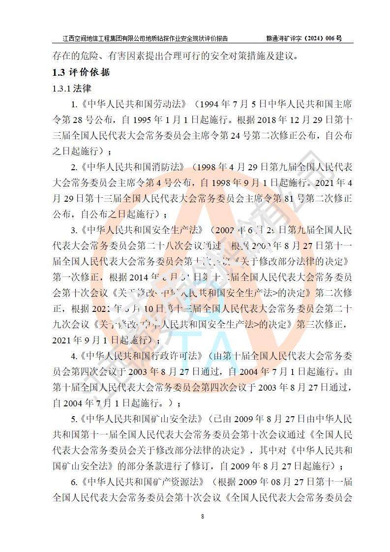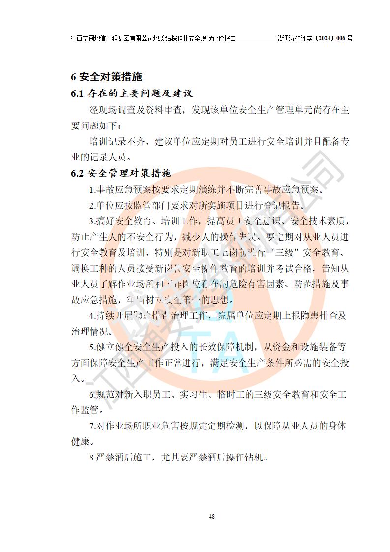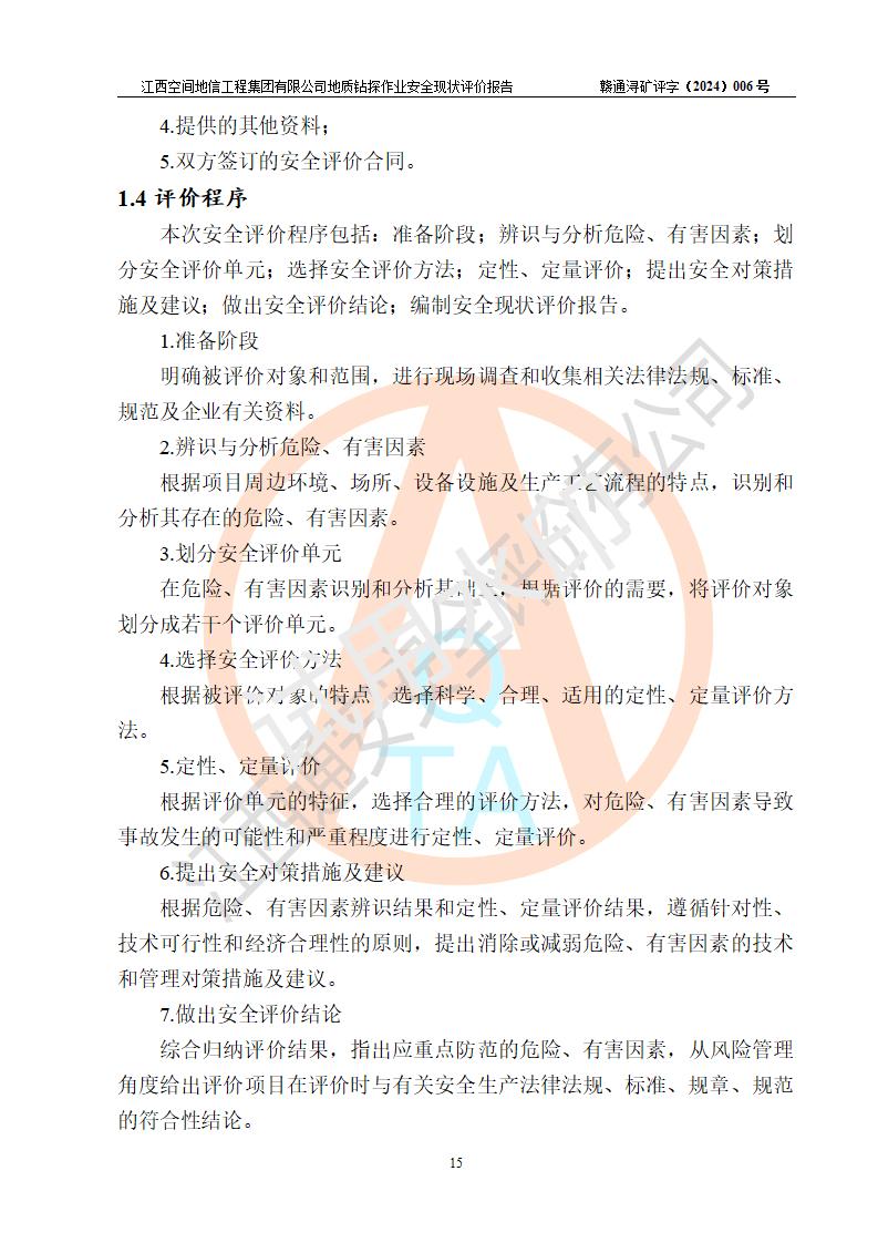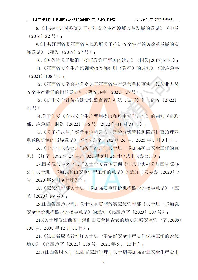 江西空間地信工程集團(tuán)有限公司成立于2019年10月,位于江西省南昌市青云譜區(qū)南蓮路76號(hào),為江西省地理信息工程大隊(duì)隊(duì)屬二級(jí)企業(yè),由“江西中煤路橋工程有限公司”、“江西省煤田地質(zhì)局普查綜合大隊(duì)”(企業(yè))、“江西工程物探新技術(shù)公司”、“江西華昌地質(zhì)測(cè)試有限公司”“江西中煤集團(tuán)第六建設(shè)有限公司”、“江西中煤集團(tuán)生態(tài)環(huán)境有限公司”重組而成。主要承擔(dān)全隊(duì)市場(chǎng)運(yùn)營(yíng)、業(yè)務(wù)開拓、政策研究、科技創(chuàng)新等職責(zé)。 集團(tuán)公司經(jīng)營(yíng)范圍:地質(zhì)災(zāi)害危險(xiǎn)性評(píng)估,地質(zhì)災(zāi)害治理工程勘查,地質(zhì)災(zāi)害治理工程設(shè)計(jì),地質(zhì)災(zāi)害治理工程施工,國(guó)土空間規(guī)劃編制,測(cè)繪服務(wù),互聯(lián)網(wǎng)信息服務(wù),礦產(chǎn)資源勘查(依法須經(jīng)批準(zhǔn)的項(xiàng)目,經(jīng)相關(guān)部門批準(zhǔn)后方可開展經(jīng)營(yíng)活動(dòng))一般項(xiàng)目:地質(zhì)災(zāi)害治理服務(wù),土地整治服務(wù),規(guī)劃設(shè)計(jì)管理,互聯(lián)網(wǎng)安全服務(wù),信息咨詢服務(wù)(不含許可類信息咨詢服務(wù)),軟件開發(fā),地理遙感信息服務(wù),礦產(chǎn)資源儲(chǔ)量估算和報(bào)告編制服務(wù)(須在中國(guó)礦業(yè)權(quán)評(píng)估師**完成登記備案后方可從事經(jīng)營(yíng)活動(dòng)),礦產(chǎn)資源儲(chǔ)量評(píng)估服務(wù)(須在中國(guó)礦業(yè)權(quán)評(píng)估師**完成登記備案后方可從事經(jīng)營(yíng)活動(dòng)),基礎(chǔ)地質(zhì)勘查,土壤污染治理與修復(fù)服務(wù),對(duì)外承包工程(除許可業(yè)務(wù)外,可自主依法經(jīng)營(yíng)法律法規(guī)非禁止或限制的項(xiàng)目)。 江西空間地信工程集團(tuán)有限公司為江西省地理信息工程大隊(duì)隊(duì)屬二級(jí)企業(yè),集團(tuán)公司內(nèi)設(shè)7個(gè)直屬部門:綜合辦、科研中心、資產(chǎn)辦、人力資源辦、資質(zhì)辦、招標(biāo)辦、黨群辦;3個(gè)分公司:上饒分公司、宜春分公司、全南項(xiàng)目部;下設(shè)9個(gè)實(shí)體:基礎(chǔ)測(cè)繪院、測(cè)繪工程院、自然資源調(diào)查院、規(guī)劃設(shè)計(jì)院、勘測(cè)設(shè)計(jì)院、地信中心、航測(cè)遙感院、國(guó)土綜合整治院、地環(huán)探測(cè)院。集團(tuán)公司產(chǎn)業(yè)發(fā)展分測(cè)繪工程、航測(cè)遙感、地理信息工程、國(guó)土空間規(guī)劃、國(guó)土綜合整治、地環(huán)探測(cè)工程六大板塊。 集團(tuán)公司現(xiàn)有干部職工900人,在編職工601人,合同聘用職工299人,其中副高以上職稱106人,工程師職稱209人,助理工程師162人,研究生76人,本科生773人。 集團(tuán)公司擁有測(cè)繪**,地災(zāi)評(píng)估、勘查、設(shè)計(jì)、施工**,土地規(guī)劃**;土地規(guī)劃、土地整治、城鄉(xiāng)規(guī)劃乙級(jí)、水利水電工程、市政二級(jí)等資質(zhì)證書。公司于2022年4月獲得質(zhì)量、環(huán)境、職業(yè)健康、信息安全、信息技術(shù)服務(wù)、五星售后等6項(xiàng)ISO體系認(rèn)證證書,2022年5月獲得AAA企業(yè)信用等級(jí)證書,獲得行業(yè)誠(chéng)信經(jīng)營(yíng)示范單位、AAA級(jí)誠(chéng)信供應(yīng)商、重合同守信用、質(zhì)量服務(wù)誠(chéng)信單位等稱號(hào)。 集團(tuán)公司為地勘單位安全生產(chǎn)許可證新設(shè)許可,申請(qǐng)?jiān)S可范圍:地質(zhì)鉆探作業(yè)。按照《安全生產(chǎn)法》、《礦山安全法》和《江西省非煤礦礦山企業(yè)安全生產(chǎn)許可證實(shí)施辦法》等有關(guān)規(guī)定,該單位在申請(qǐng)安全生產(chǎn)許可證前應(yīng)進(jìn)行安全現(xiàn)狀評(píng)價(jià)。 |