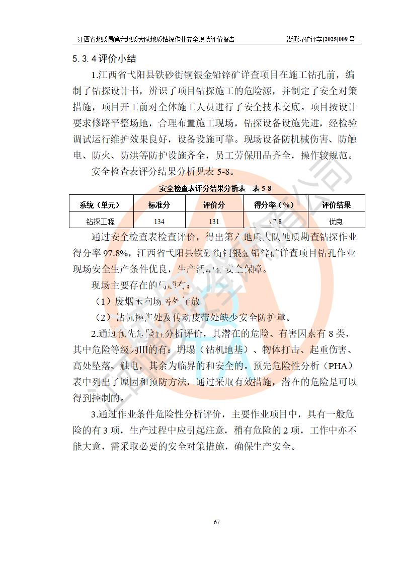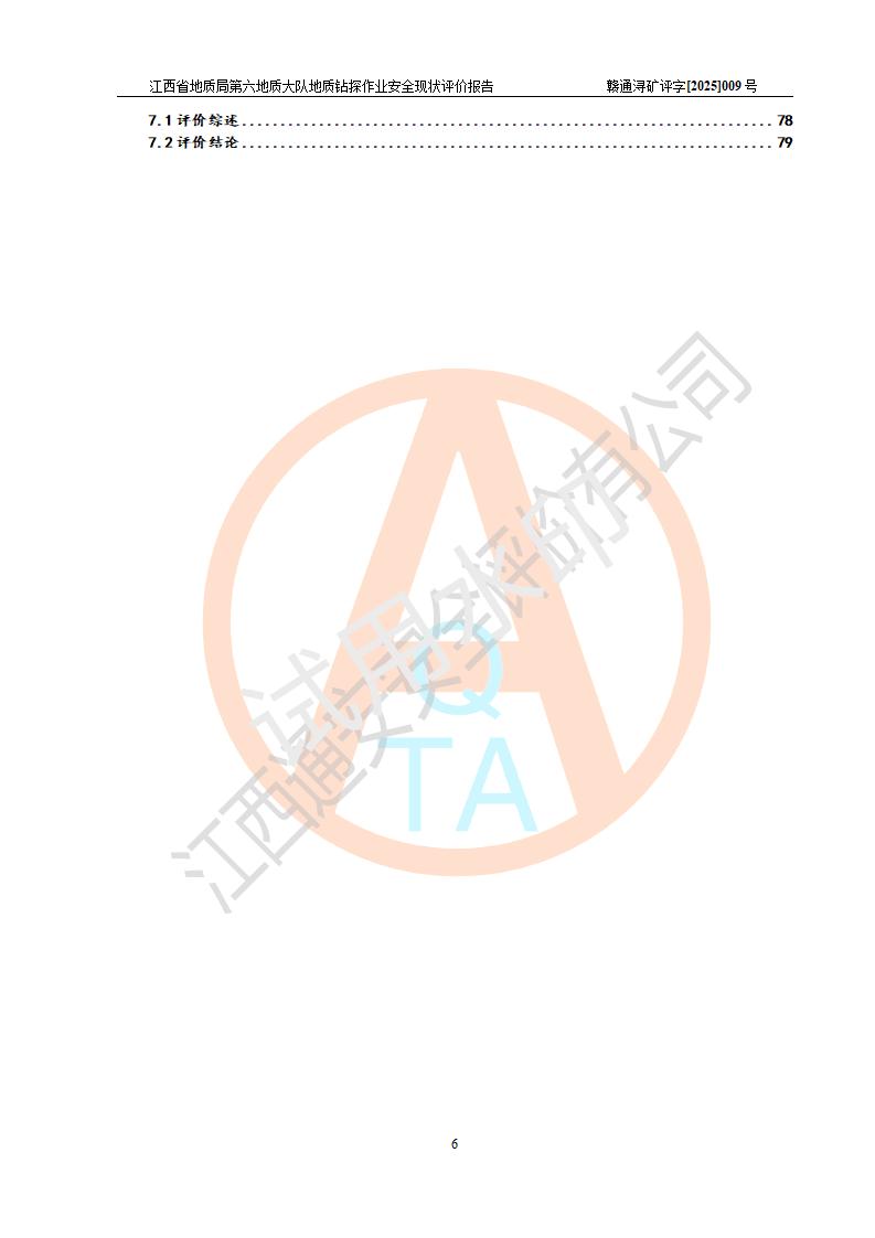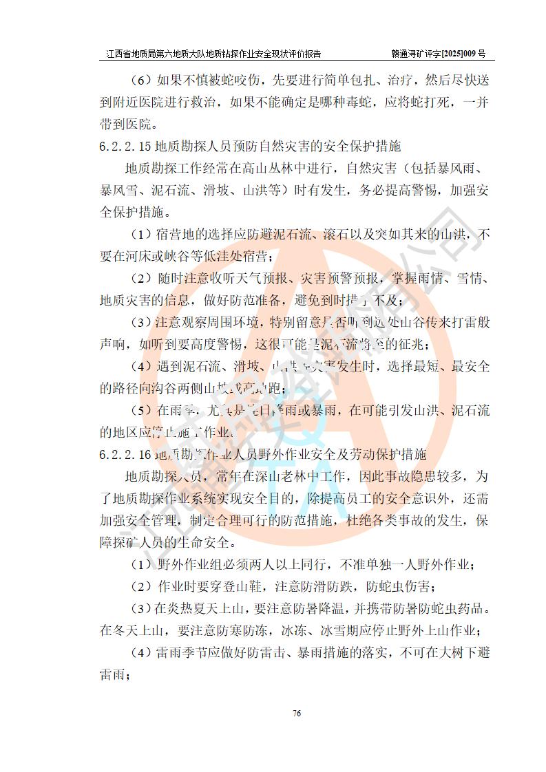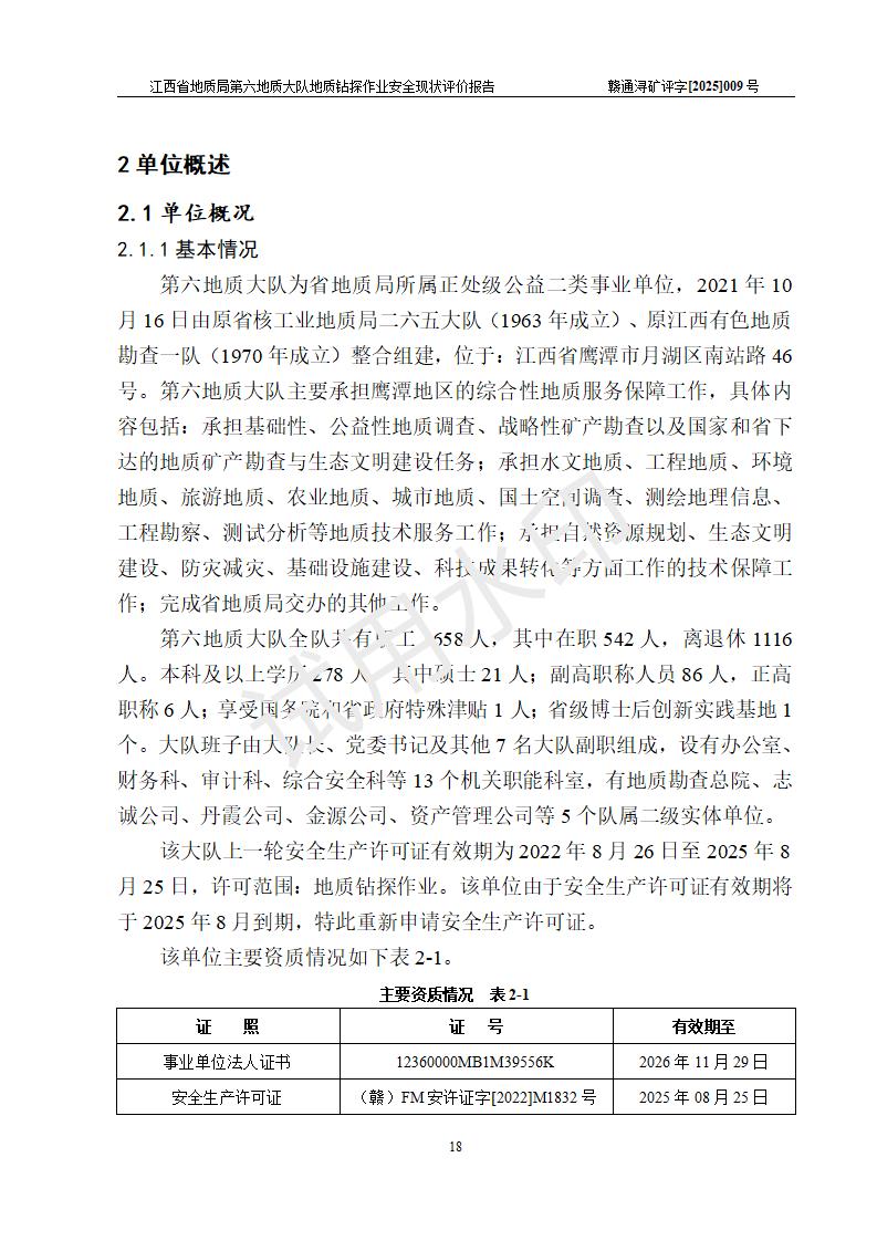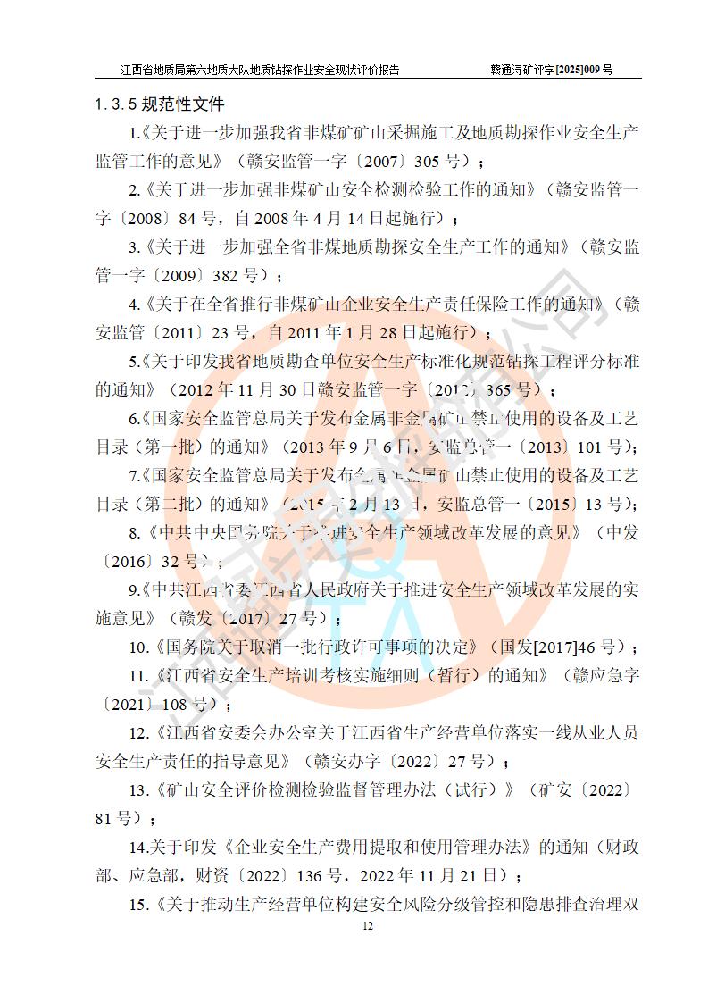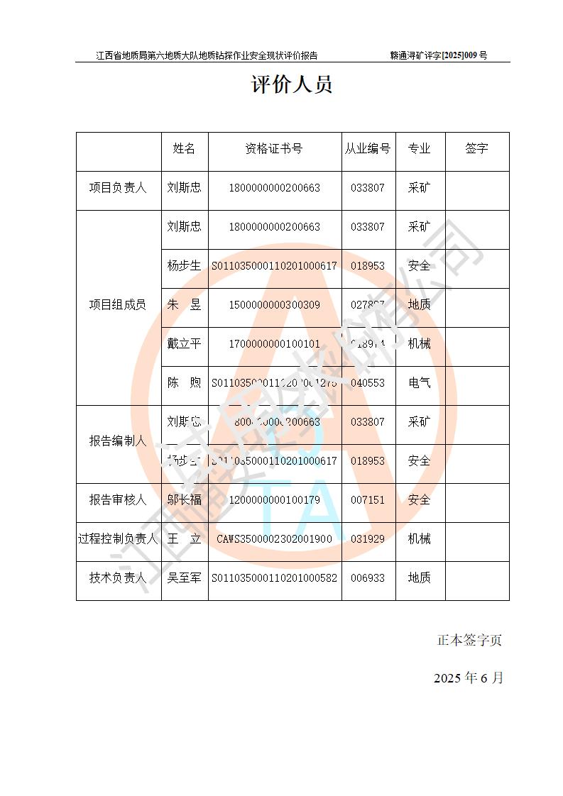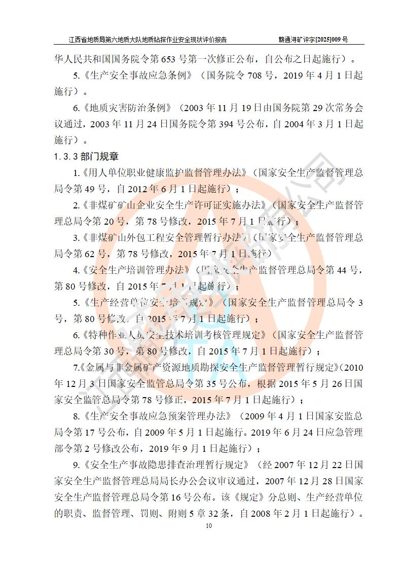 報告名稱 | 江西省地質局第六地質大隊地質鉆探作業(yè)安全現(xiàn)狀評價報告 | |||||