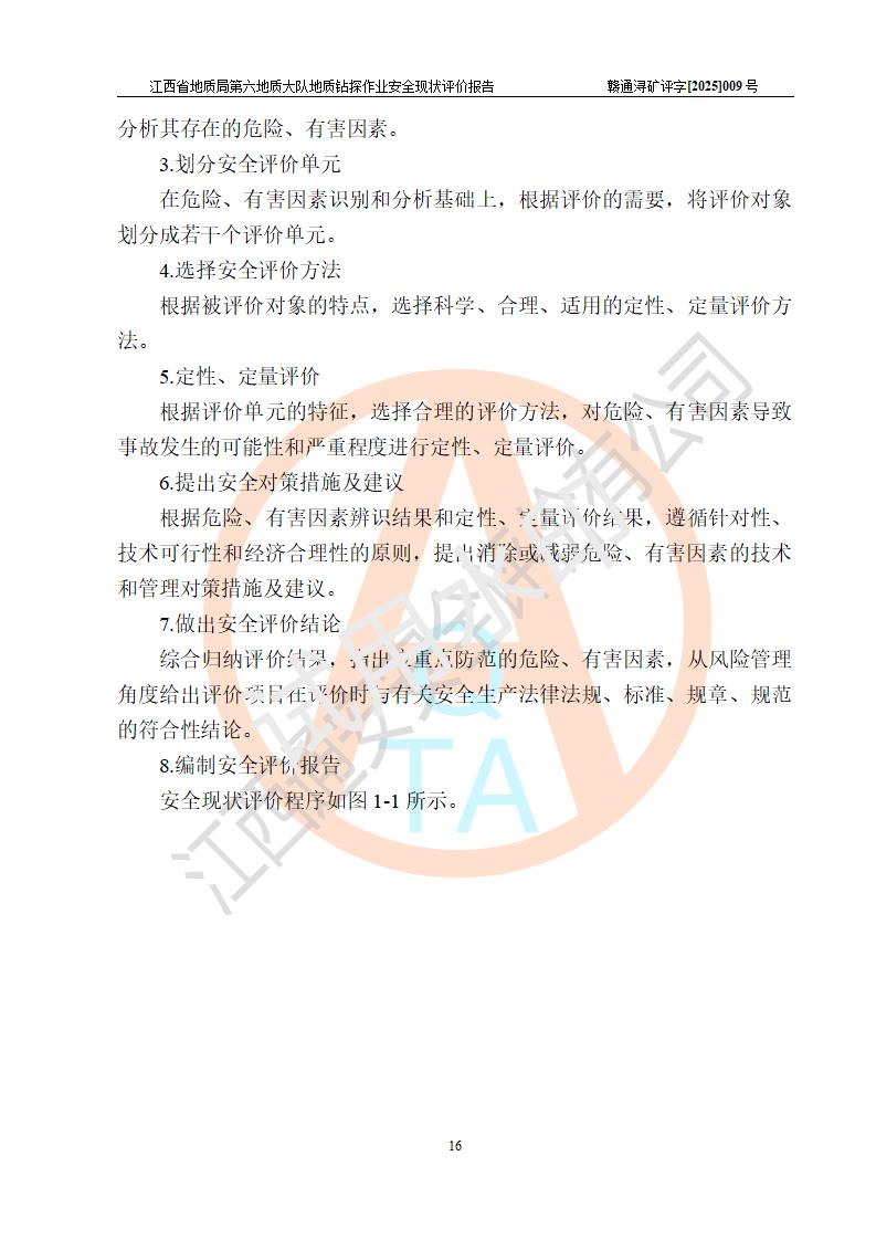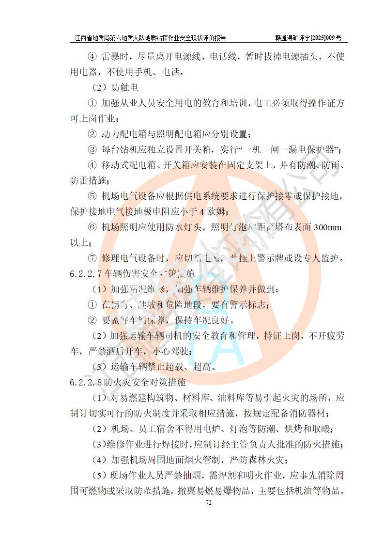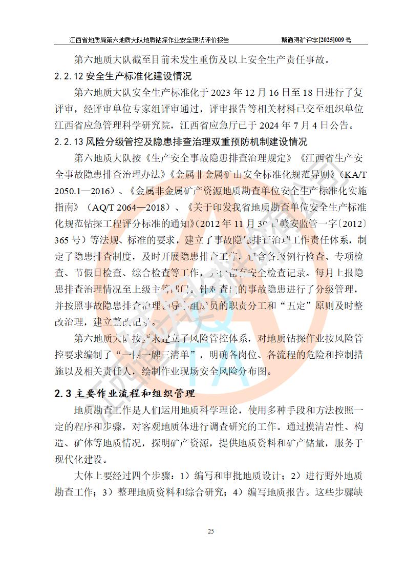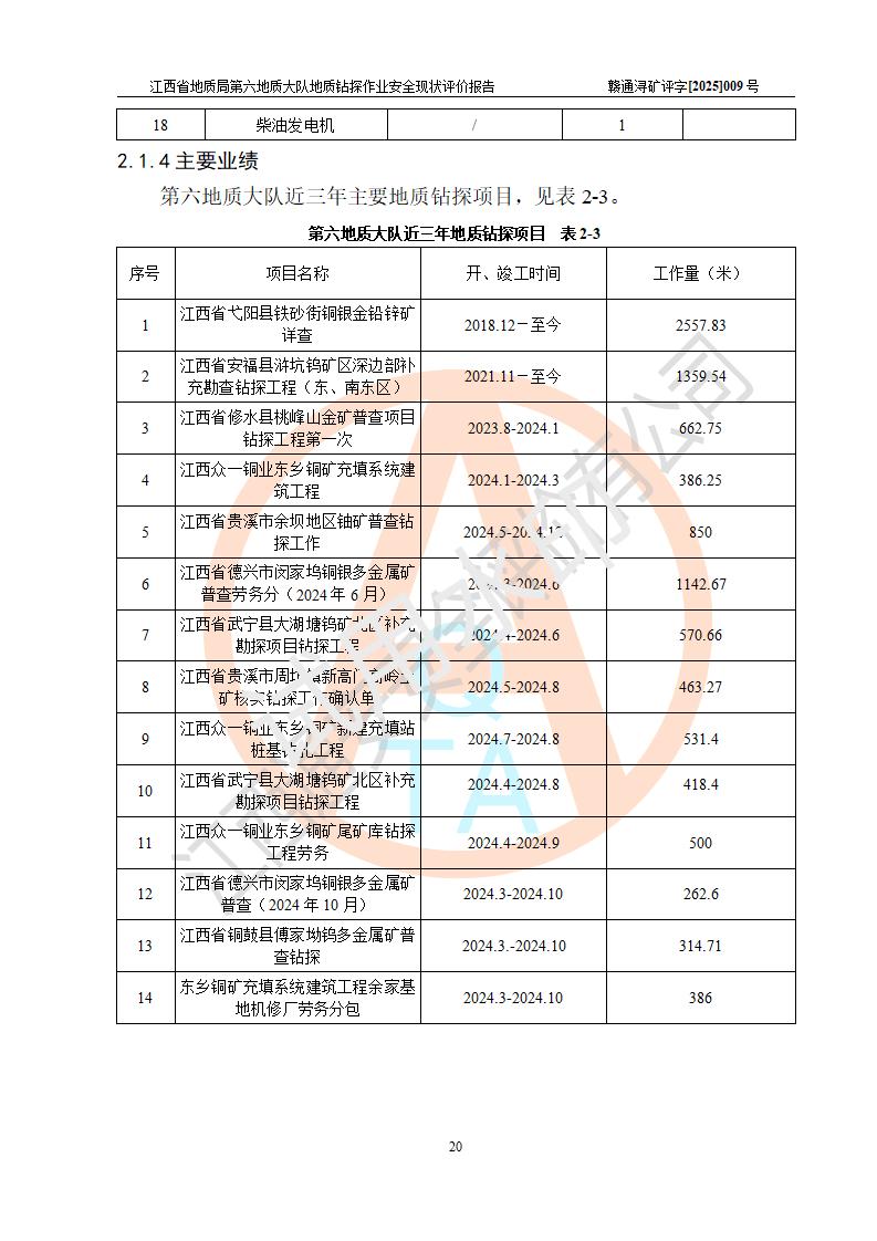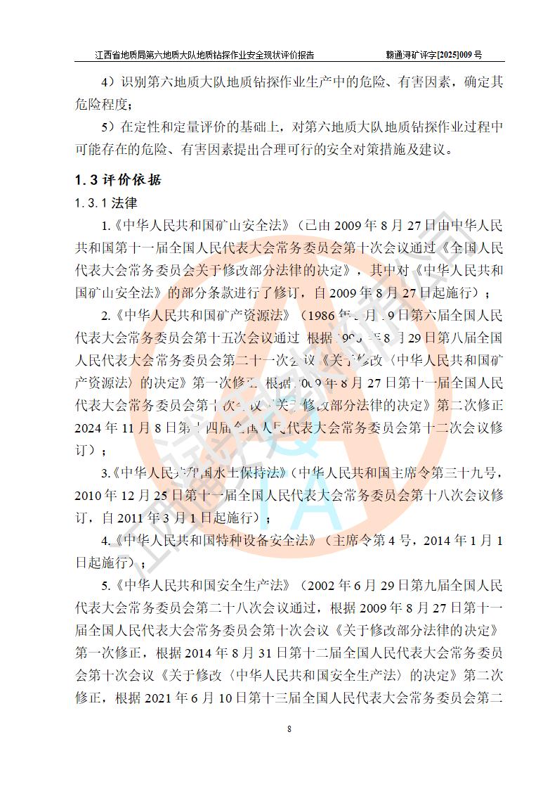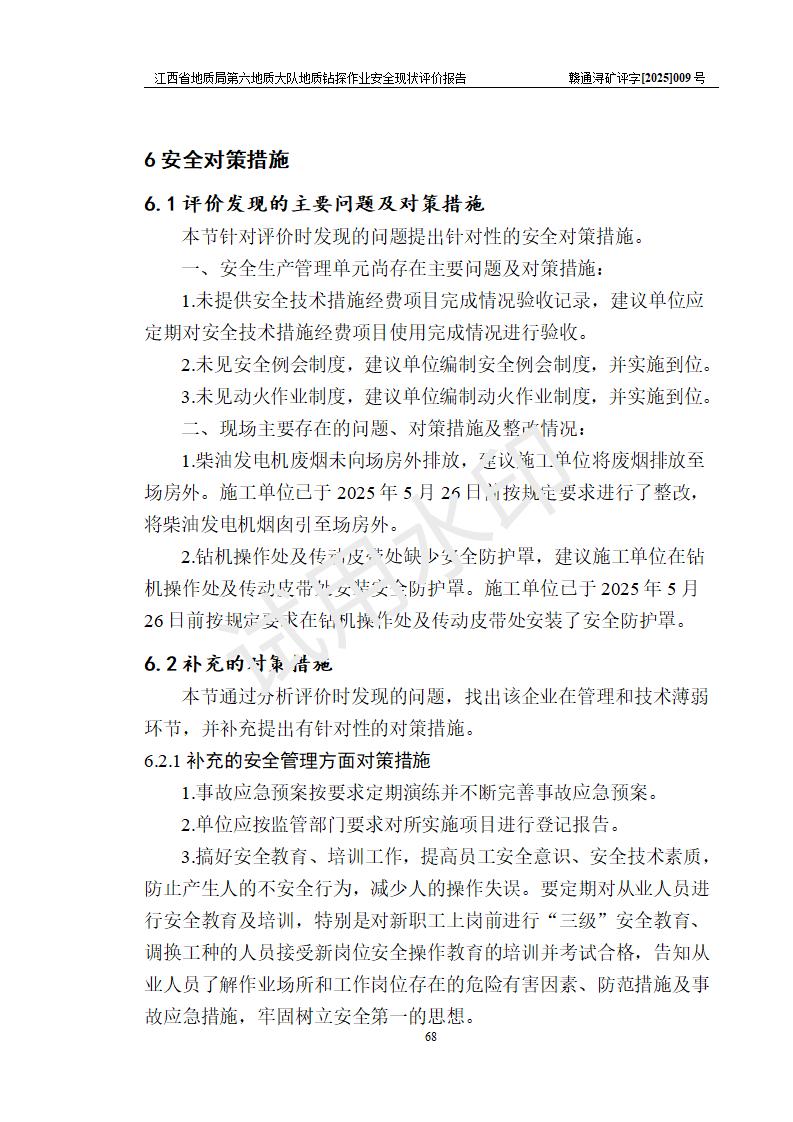 報告名稱 | 江西省地質局第六地質大隊地質鉆探作業(yè)安全現(xiàn)狀評價報告 | |||||